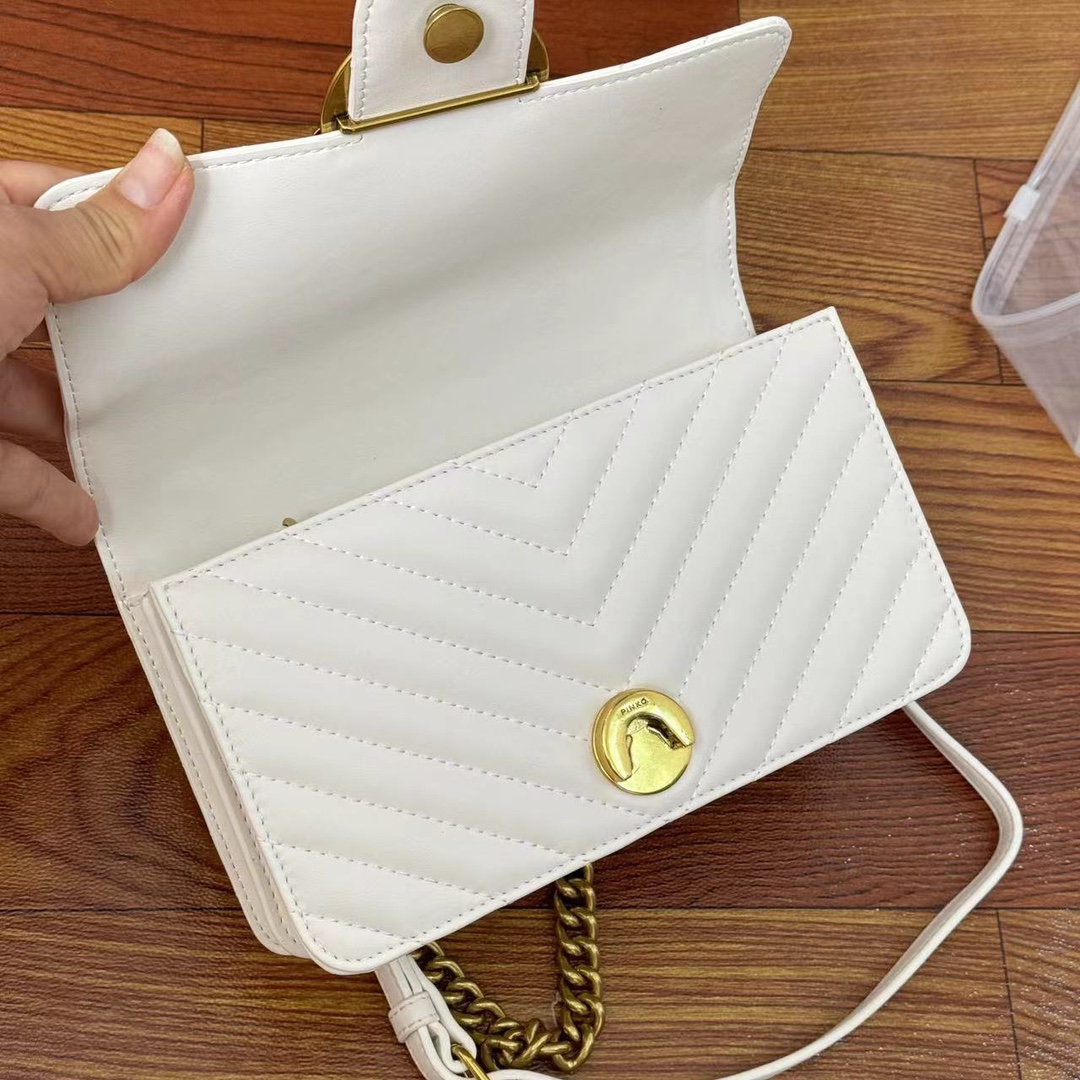 这款包包是AAAAA 1:1 质量 (非常棒). 使用了和原版一模一样的材料. 商标部分也保持了和PINKO一样. 图片拍摄是实物包包拍摄, 您所收到的实物保证和我们图片一模一样.