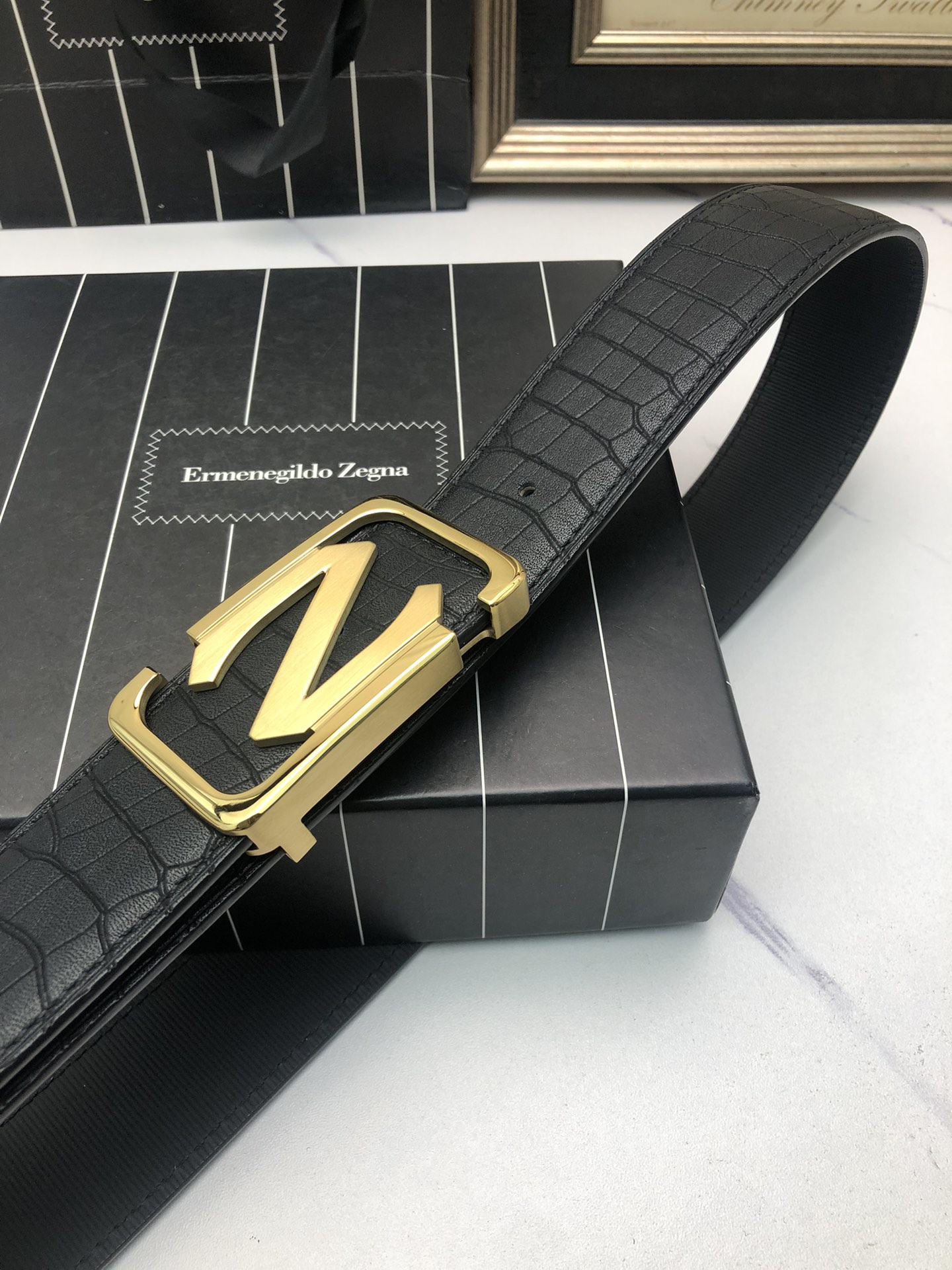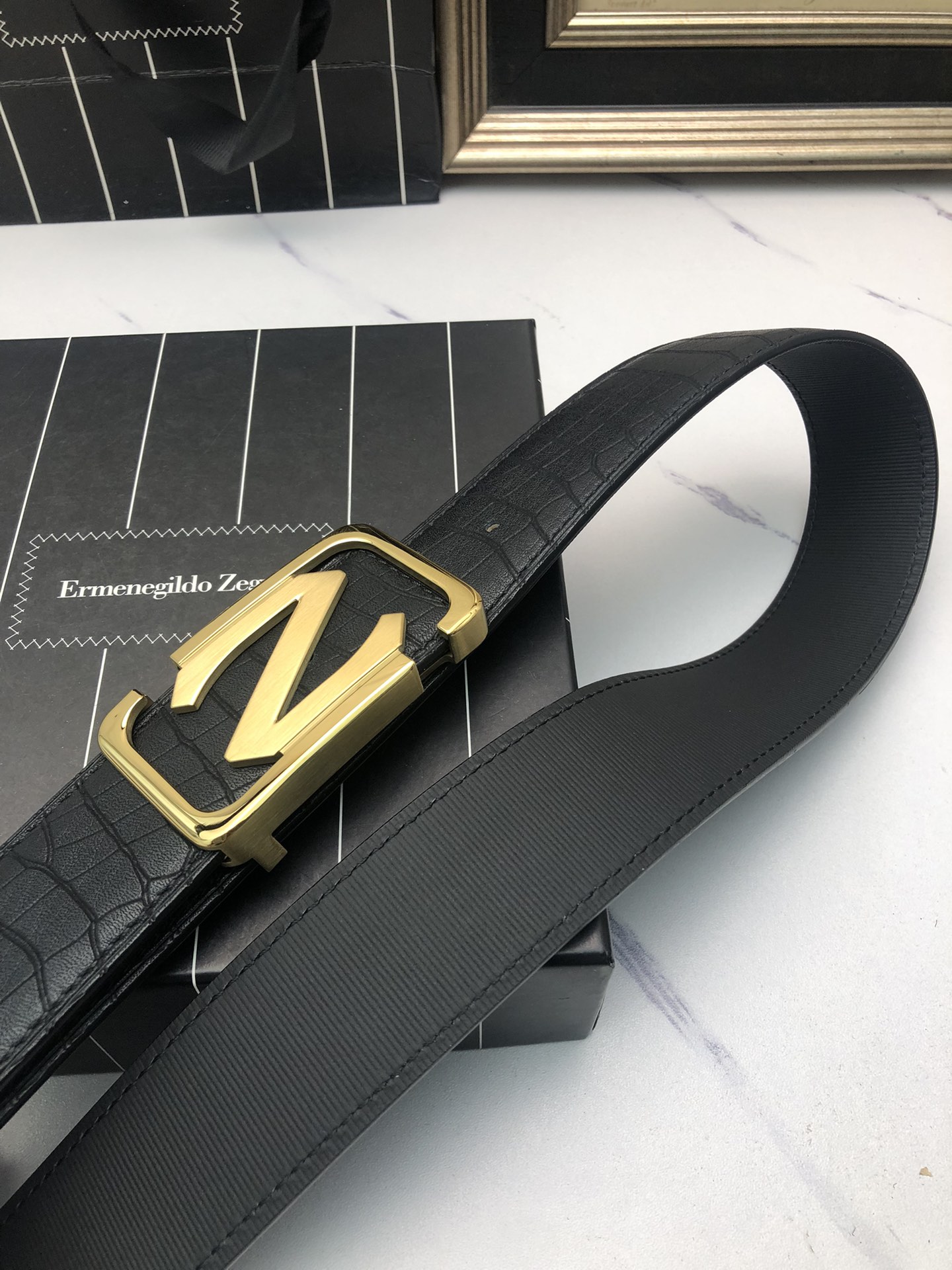 这款皮带是AAAAA 1:1 质量 (非常棒). 使用了和原版一模一样的材料. 商标部分也保持了和杰尼亚/Zegna一样. 图片拍摄是实物皮带拍摄, 您所收到的实物保证和我们图片一模一样.