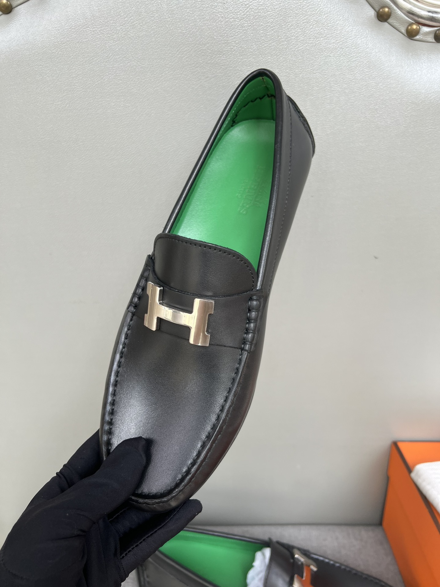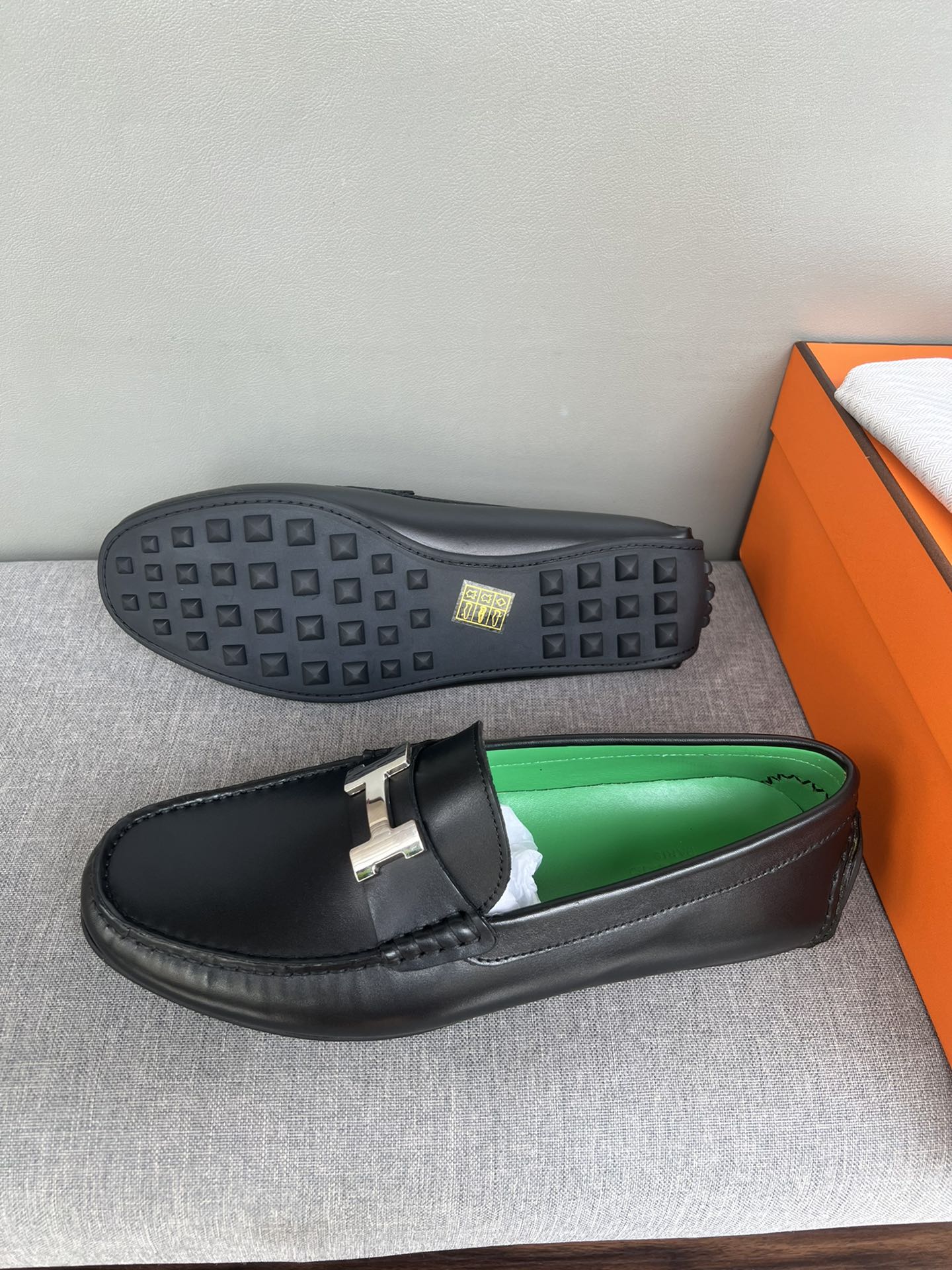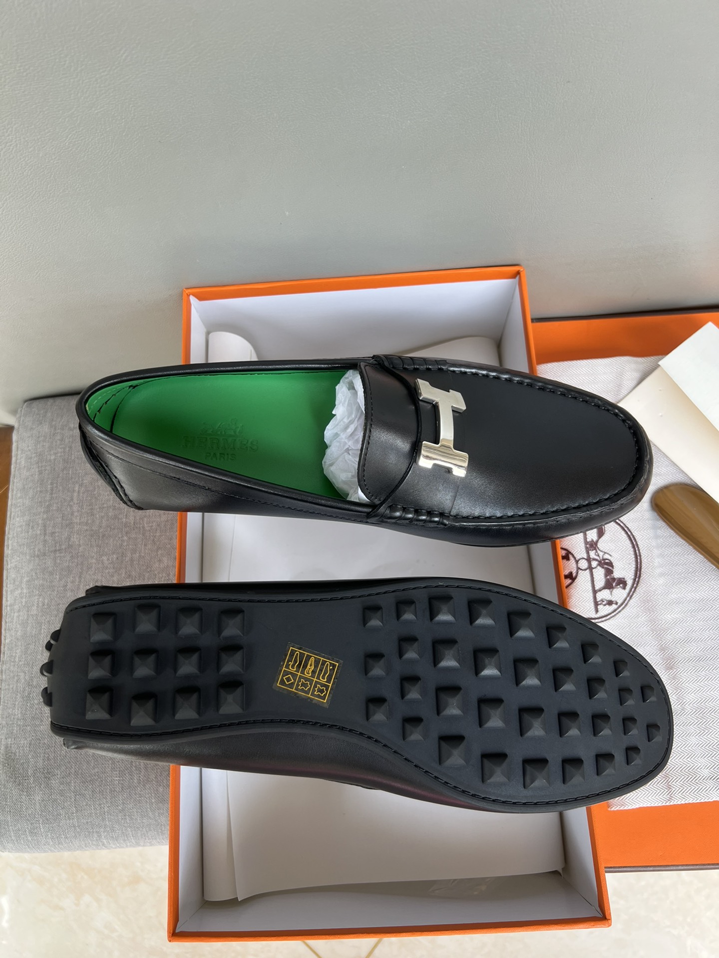 这款鞋子是AAAAA 1:1 质量 (非常棒). 使用了和原版一模一样的材料. 商标部分也保持了和爱马仕/Hermes一样. 图片拍摄是实物鞋子拍摄, 您所收到的实物保证和我们图片一模一样.