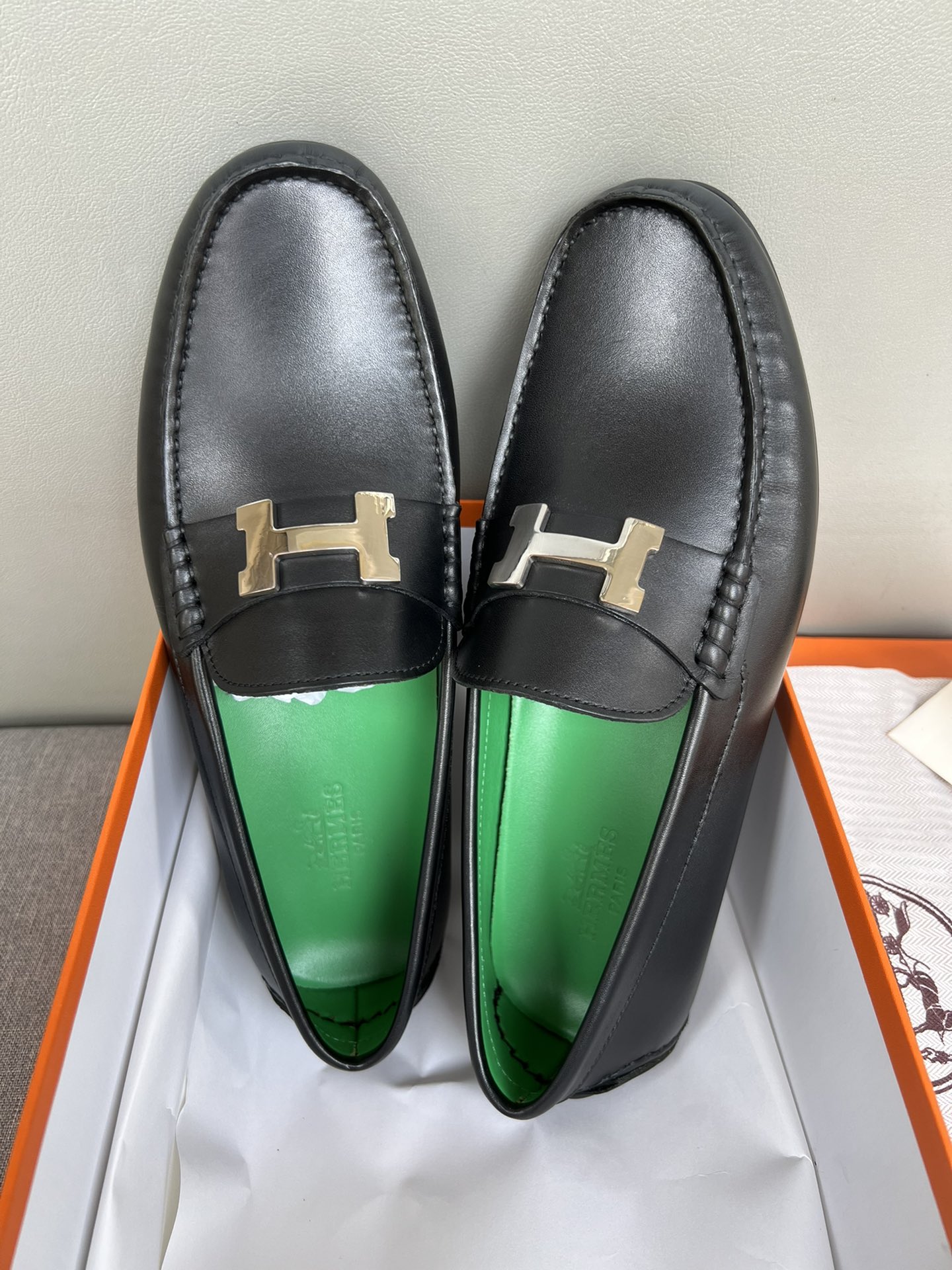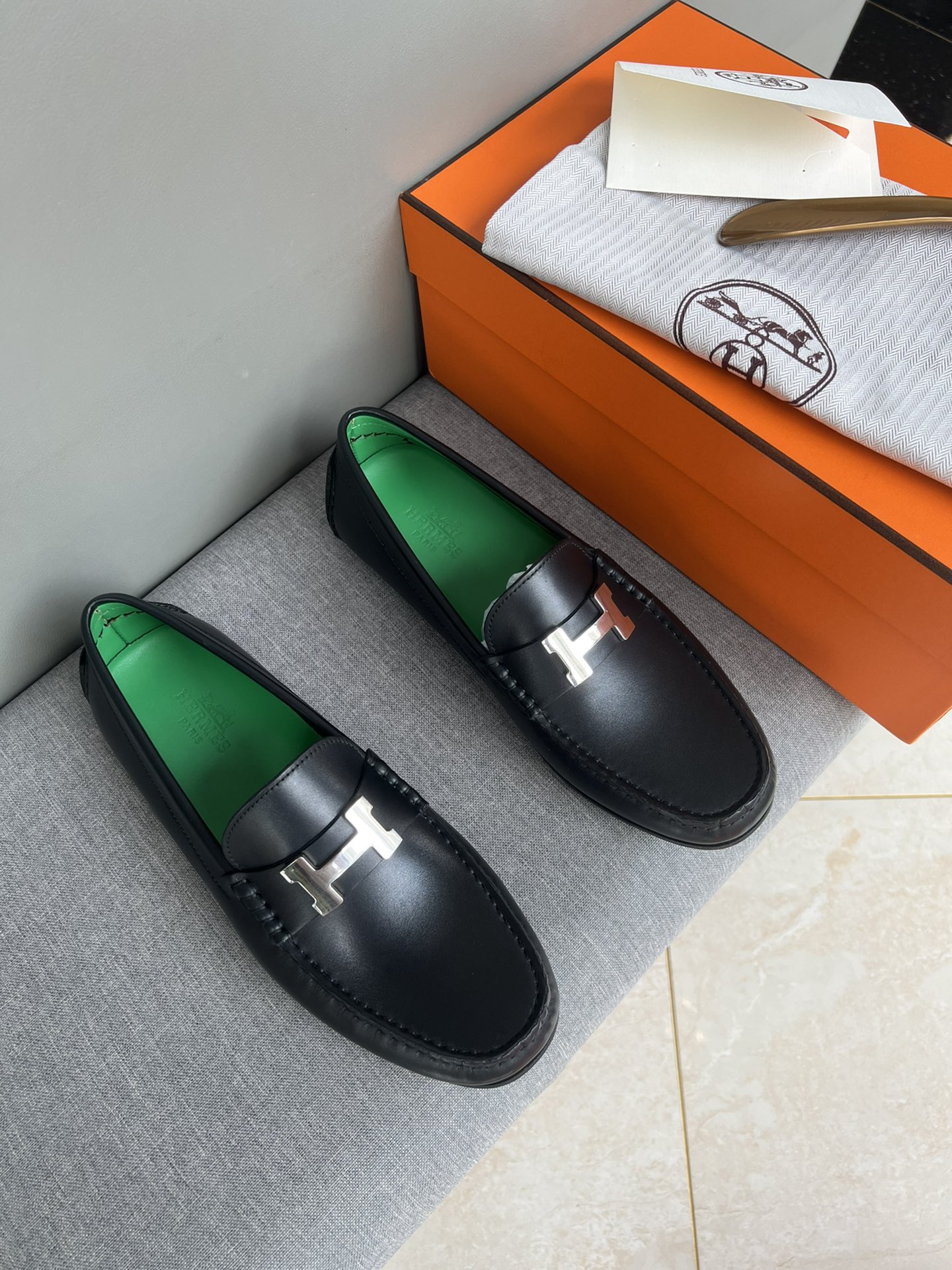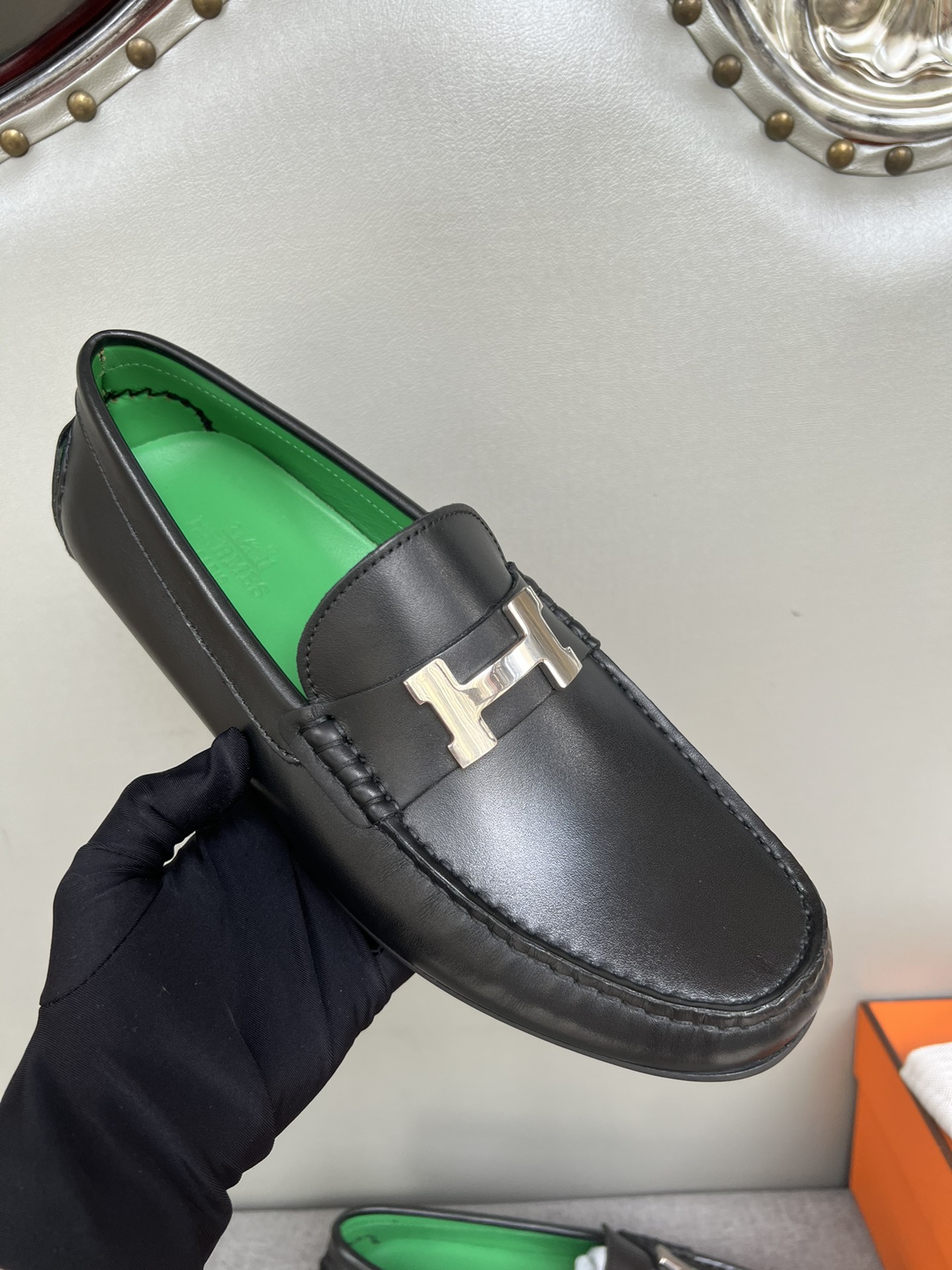 这款鞋子是AAAAA 1:1 质量 (非常棒). 使用了和原版一模一样的材料. 商标部分也保持了和爱马仕/Hermes一样. 图片拍摄是实物鞋子拍摄, 您所收到的实物保证和我们图片一模一样.