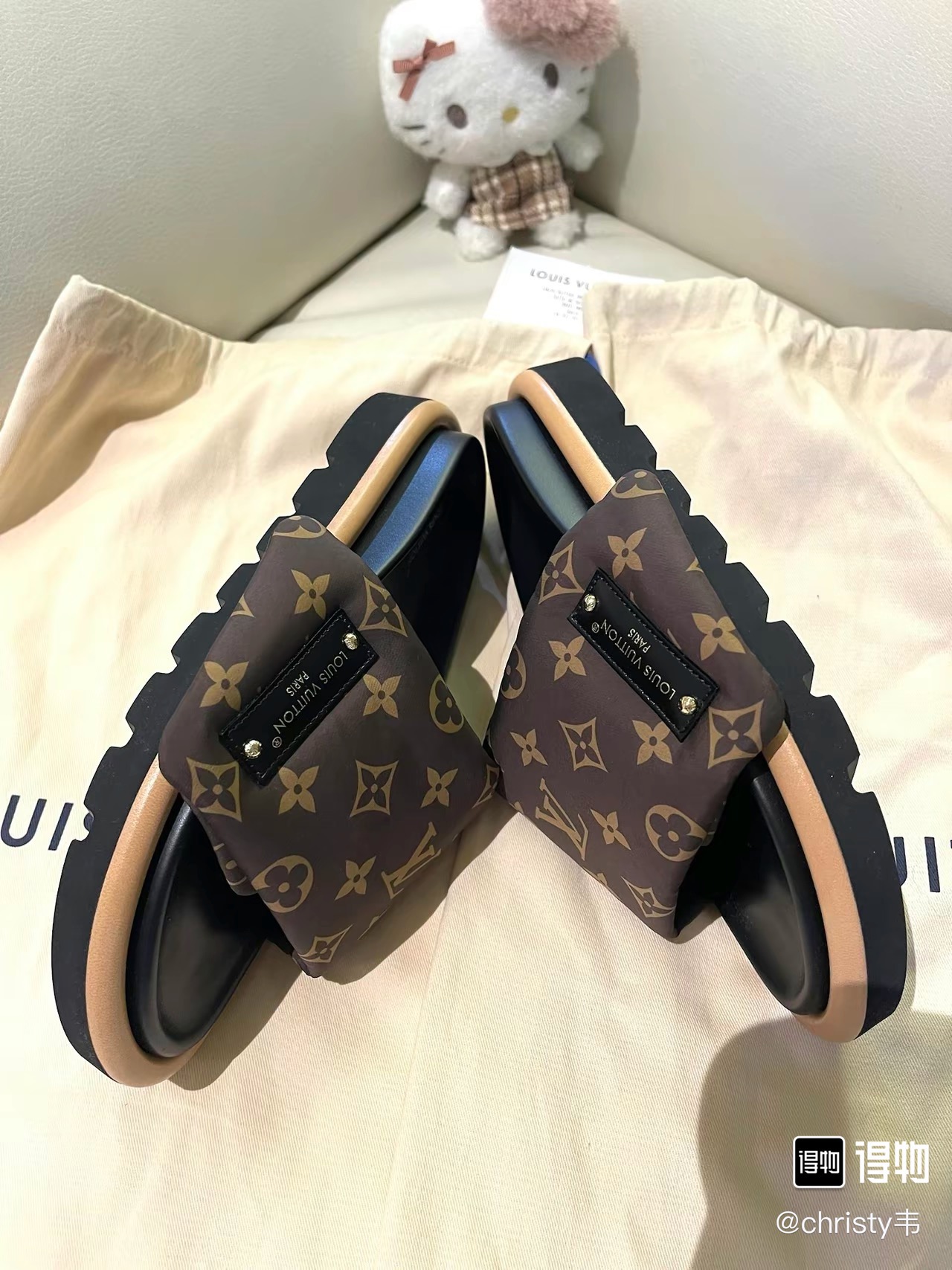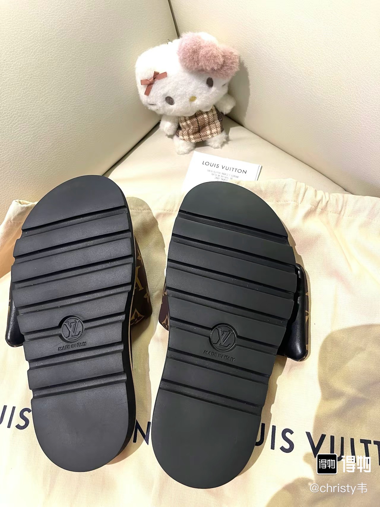 这款鞋子是AAAAA 1:1 质量 (非常棒). 使用了和原版一模一样的材料. 商标部分也保持了和路易威登/Louis Vuitton一样. 图片拍摄是实物鞋子拍摄, 您所收到的实物保证和我们图片一模一样.