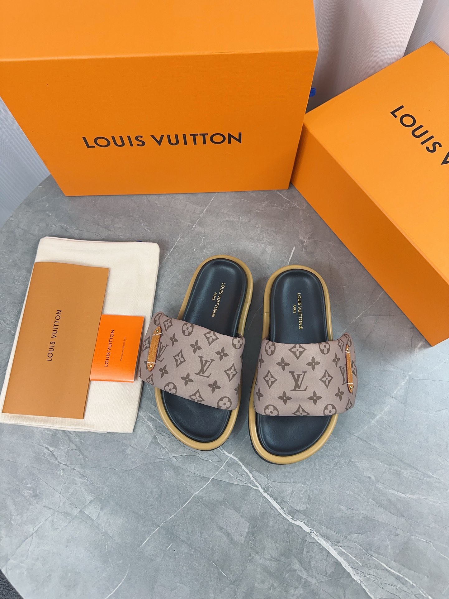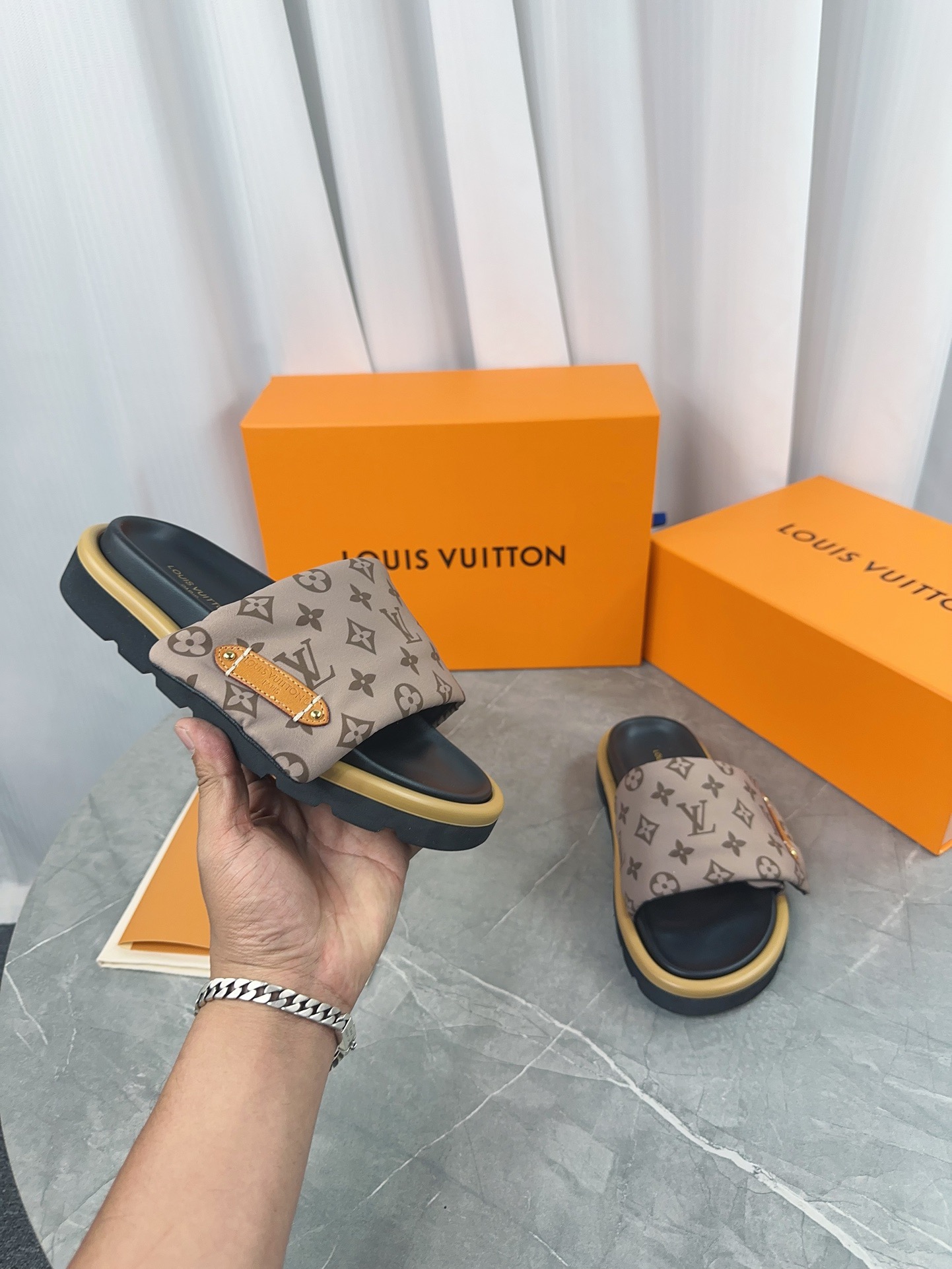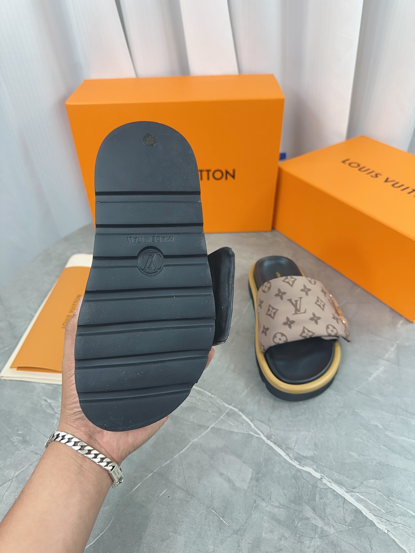这款鞋子是AAAAA 1:1 质量 (非常棒). 使用了和原版一模一样的材料. 商标部分也保持了和路易威登/Louis Vuitton一样. 图片拍摄是实物鞋子拍摄, 您所收到的实物保证和我们图片一模一样.