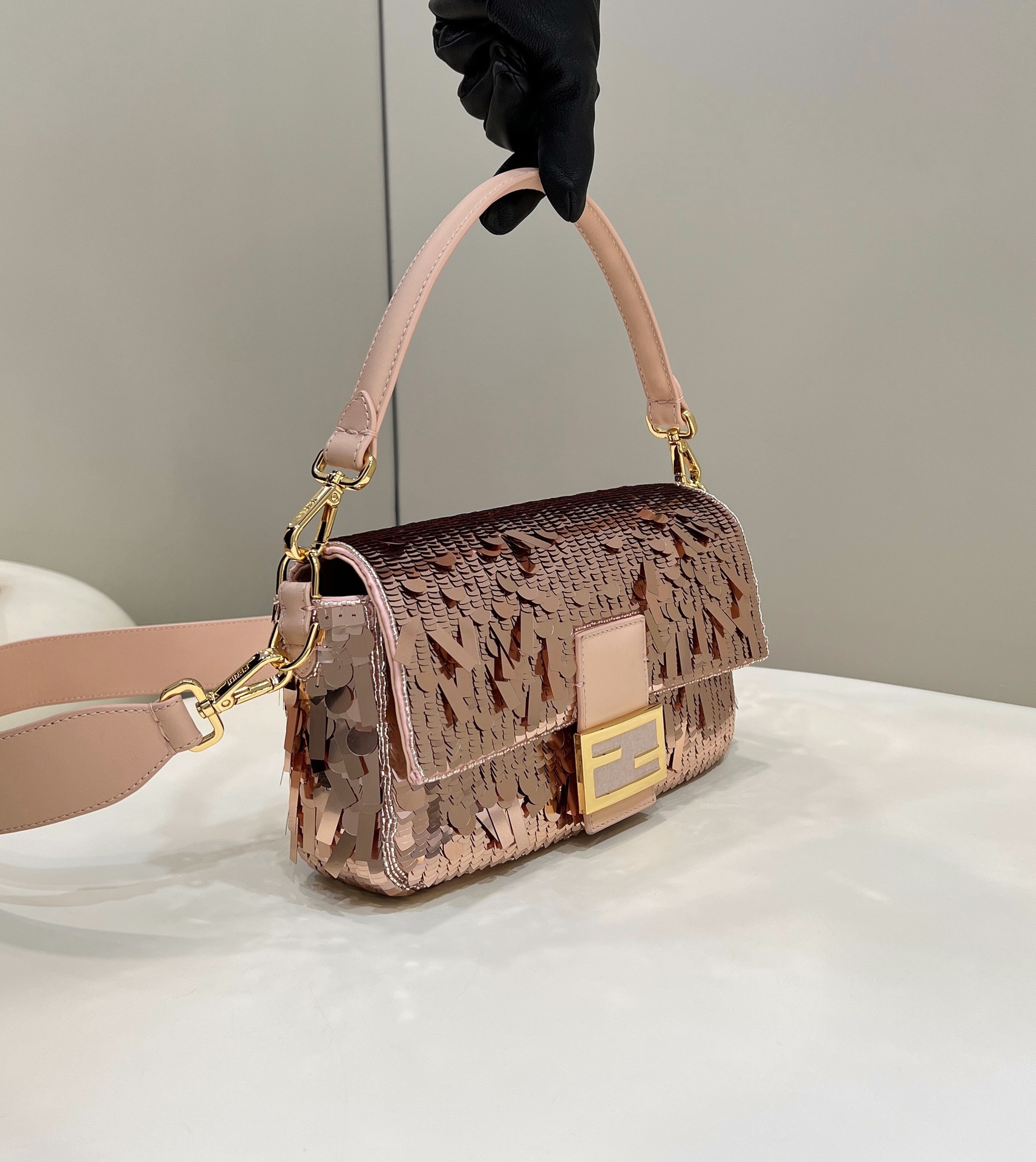 这款包包是AAAAA 1:1 质量 (非常棒). 使用了和原版一模一样的材料. 商标部分也保持了和芬迪/Fendi一样. 图片拍摄是实物包包拍摄, 您所收到的实物保证和我们图片一模一样.