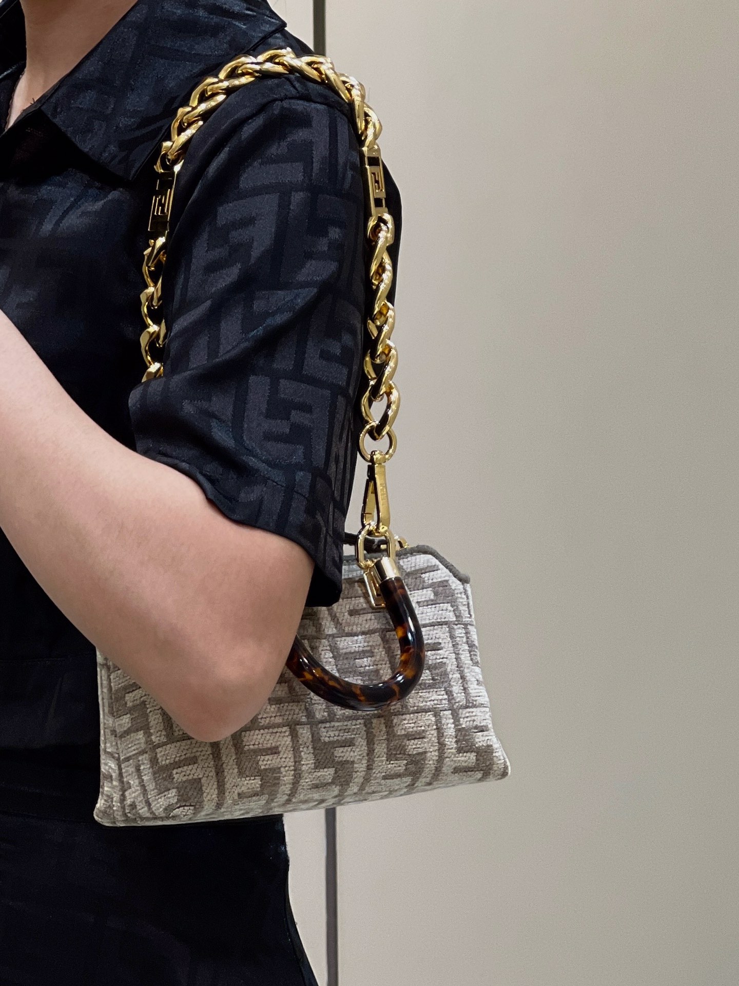这款包包是AAAAA 1:1 质量 (非常棒). 使用了和原版一模一样的材料. 商标部分也保持了和芬迪/Fendi一样. 图片拍摄是实物包包拍摄, 您所收到的实物保证和我们图片一模一样.