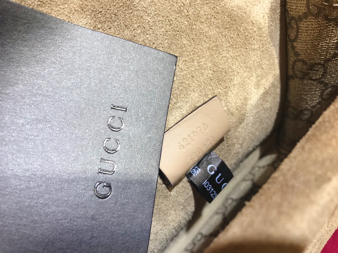 这款包包是AAAAA 1:1 质量 (非常棒). 使用了和原版一模一样的材料. 商标部分也保持了和古奇/Gucci一样. 图片拍摄是实物包包拍摄, 您所收到的实物保证和我们图片一模一样.
