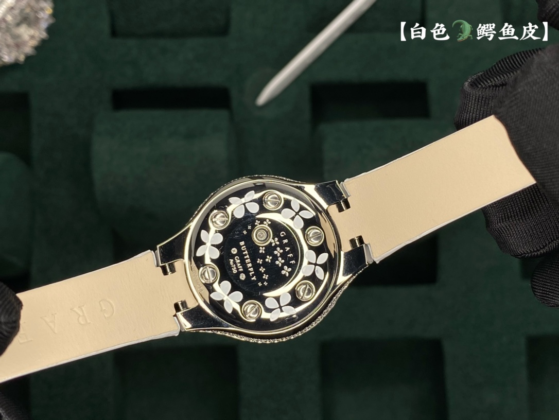 这款手表是AAAAA 1:1 质量 (非常棒). 使用了和原版一模一样的材料. 商标部分也保持了和GRAFF一样. 图片拍摄是实物手表拍摄, 您所收到的实物保证和我们图片一模一样.