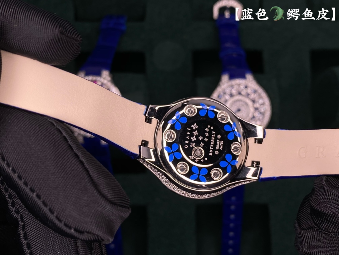 这款手表是AAAAA 1:1 质量 (非常棒). 使用了和原版一模一样的材料. 商标部分也保持了和GRAFF一样. 图片拍摄是实物手表拍摄, 您所收到的实物保证和我们图片一模一样.