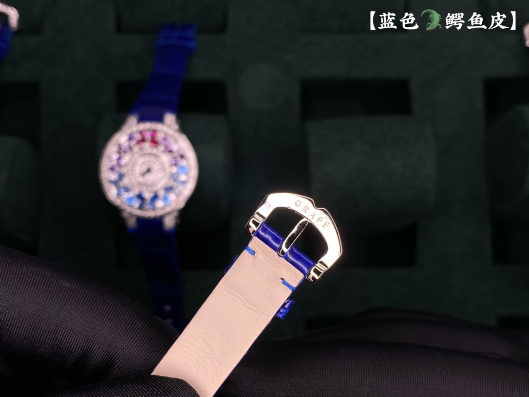 这款手表是AAAAA 1:1 质量 (非常棒). 使用了和原版一模一样的材料. 商标部分也保持了和GRAFF一样. 图片拍摄是实物手表拍摄, 您所收到的实物保证和我们图片一模一样.