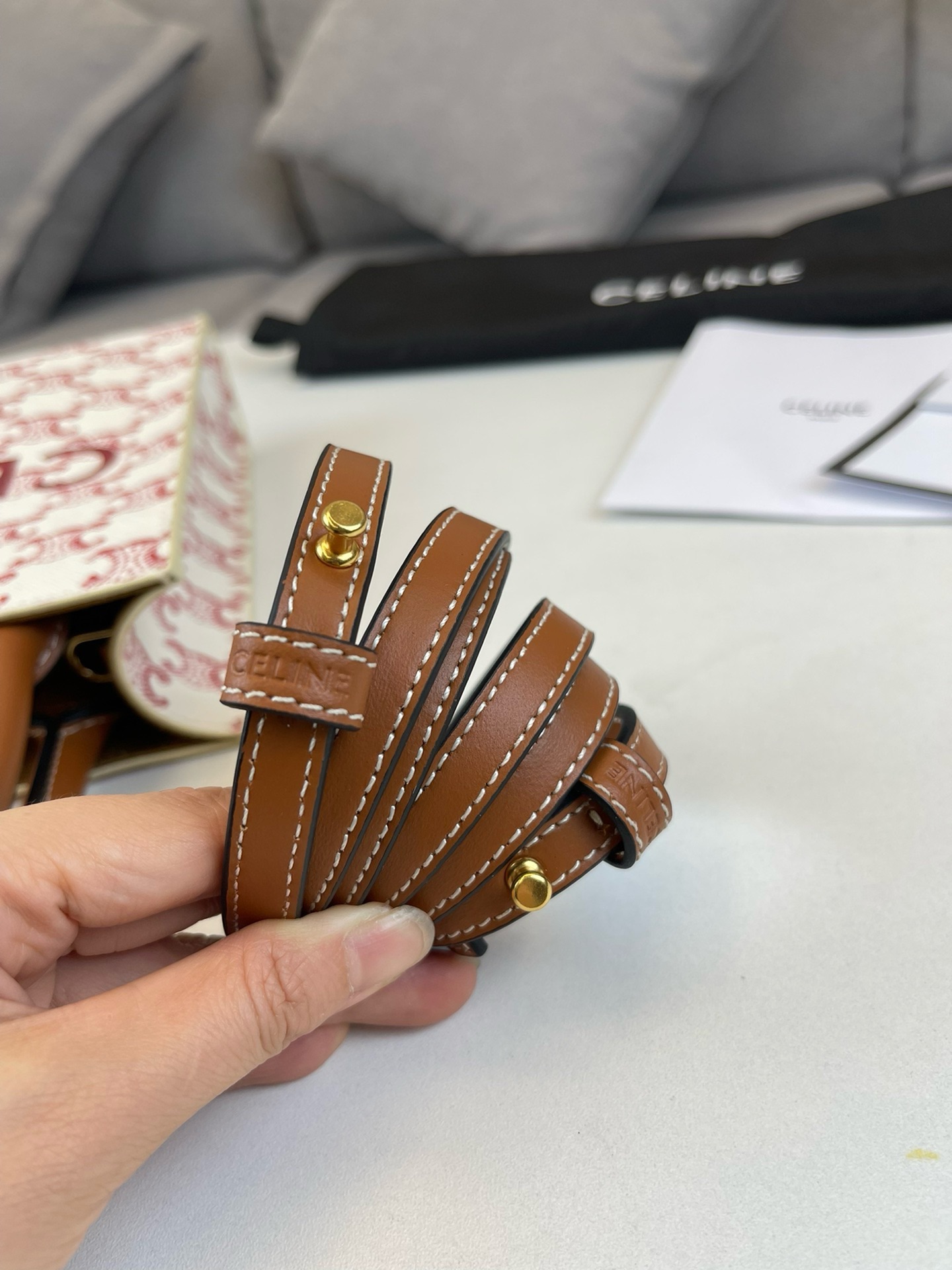 这款包包是AAAAA 1:1 质量 (非常棒). 使用了和原版一模一样的材料. 商标部分也保持了和思琳/Celine一样. 图片拍摄是实物包包拍摄, 您所收到的实物保证和我们图片一模一样.