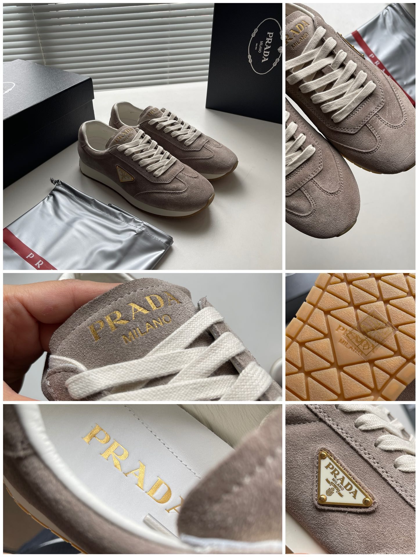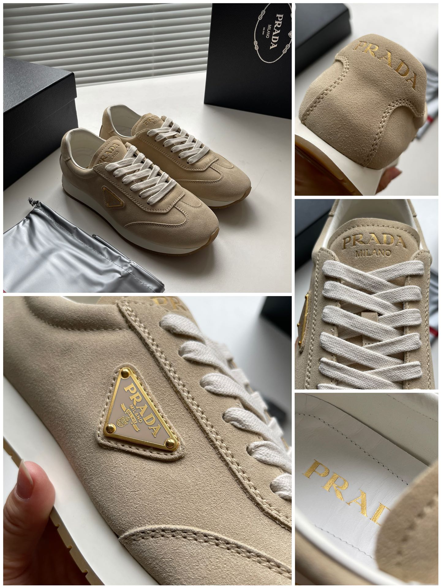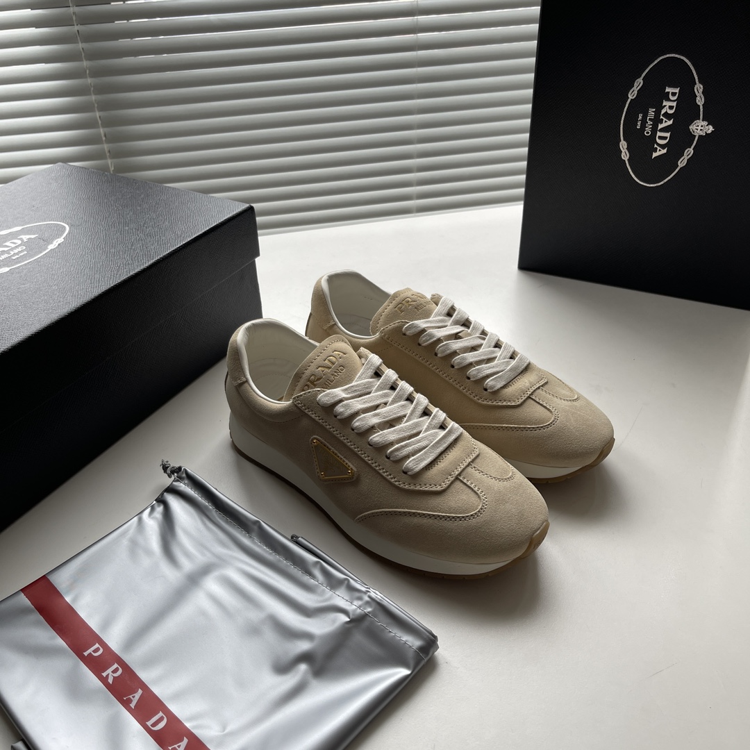 这款鞋子是AAAAA 1:1 质量 (非常棒). 使用了和原版一模一样的材料. 商标部分也保持了和普拉达/Prada一样. 图片拍摄是实物鞋子拍摄, 您所收到的实物保证和我们图片一模一样.