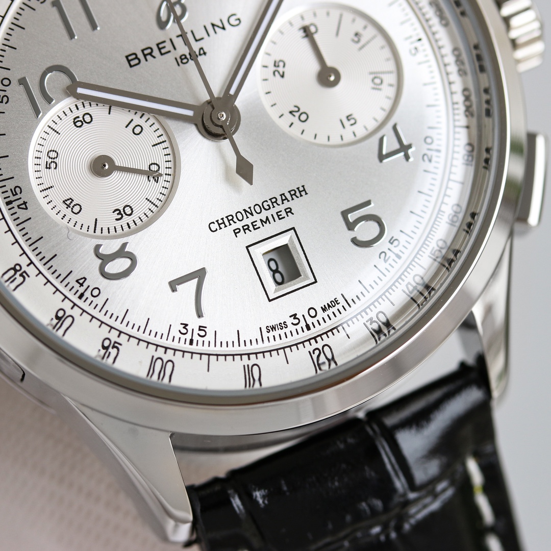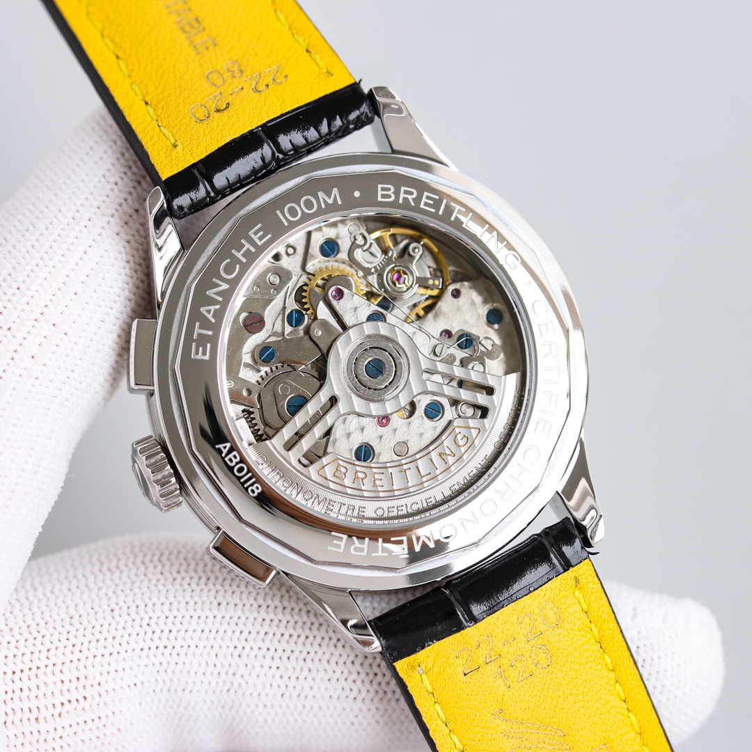 这款手表是AAAAA 1:1 质量 (非常棒). 使用了和原版一模一样的材料. 商标部分也保持了和Breitling一样. 图片拍摄是实物手表拍摄, 您所收到的实物保证和我们图片一模一样.