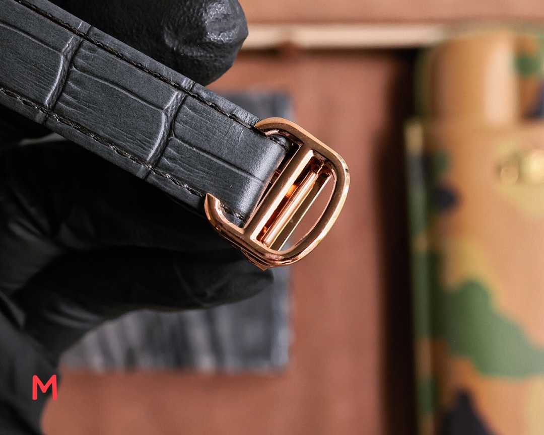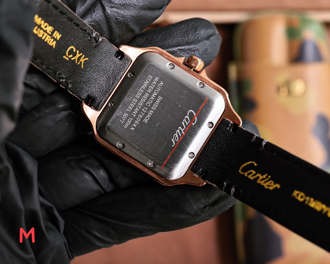 这款手表是AAAAA 1:1 质量 (非常棒). 使用了和原版一模一样的材料. 商标部分也保持了和卡地亚/Cartier一样. 图片拍摄是实物手表拍摄, 您所收到的实物保证和我们图片一模一样.