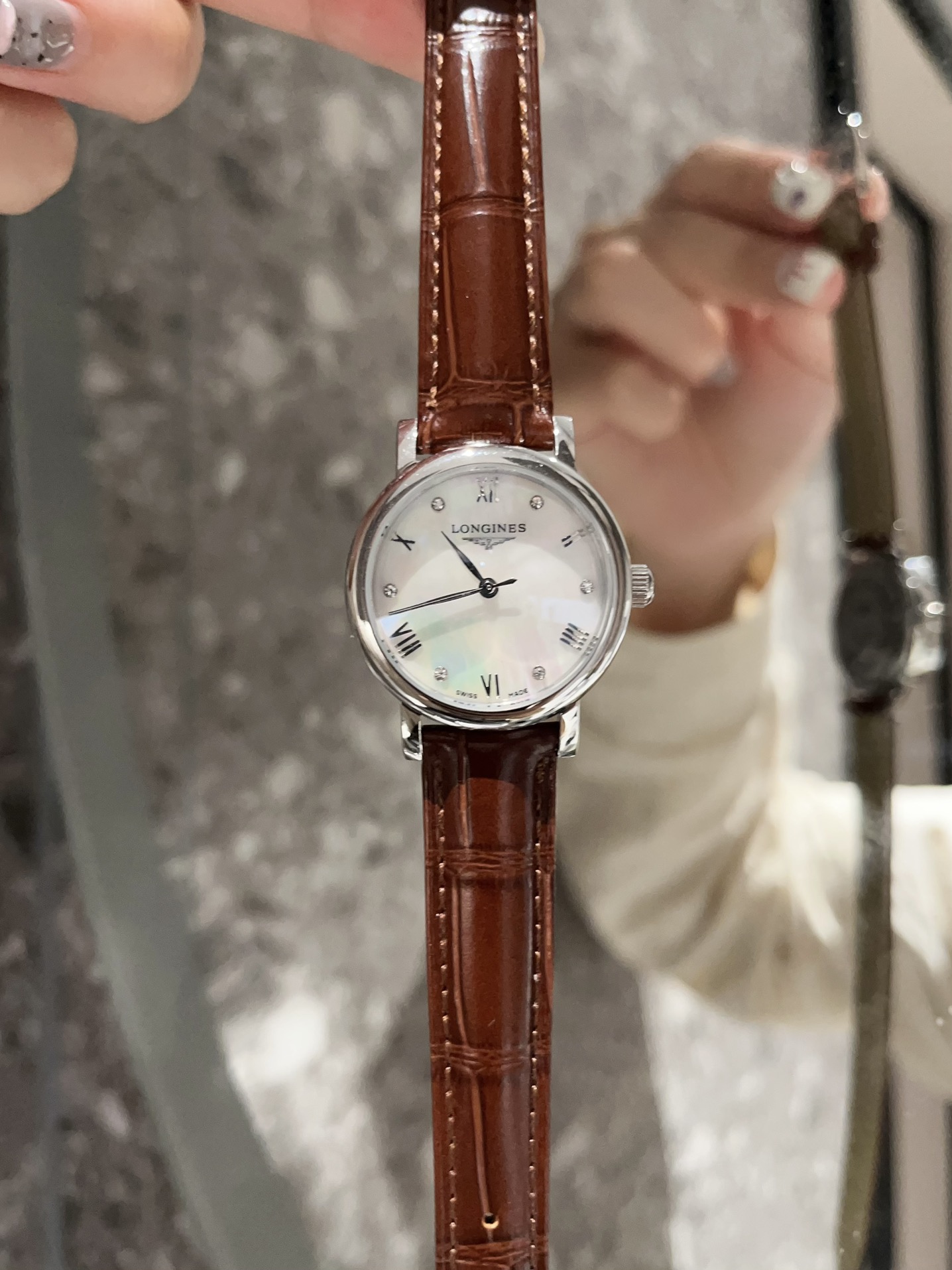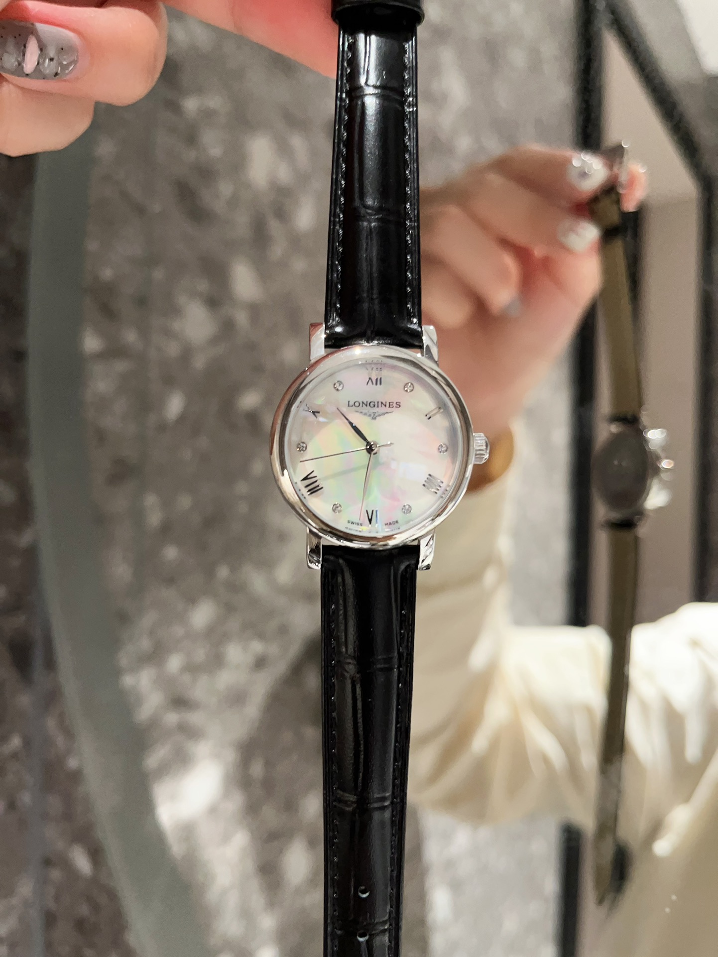 这款手表是AAAAA 1:1 质量 (非常棒). 使用了和原版一模一样的材料. 商标部分也保持了和浪琴/Longines一样. 图片拍摄是实物手表拍摄, 您所收到的实物保证和我们图片一模一样.