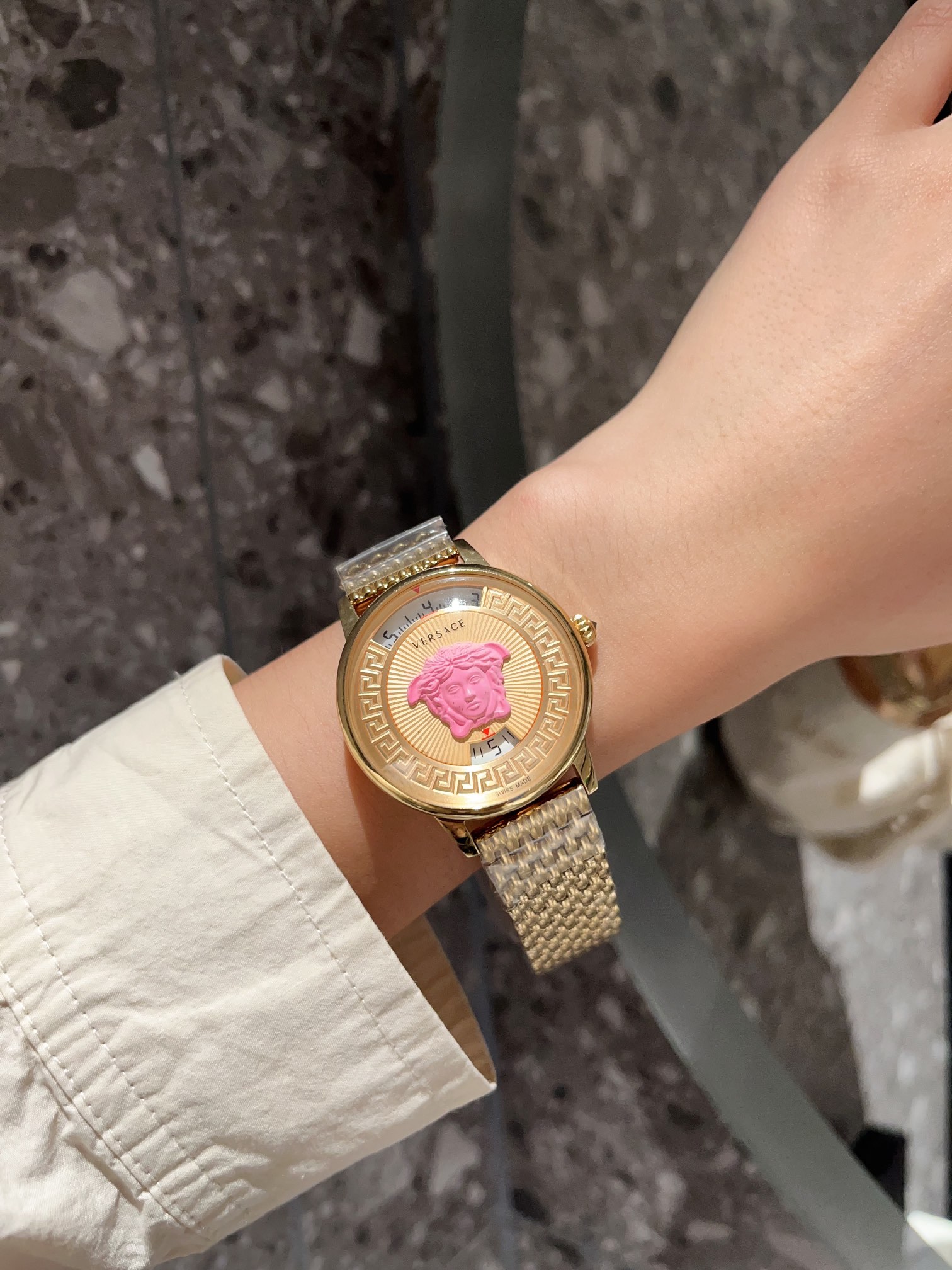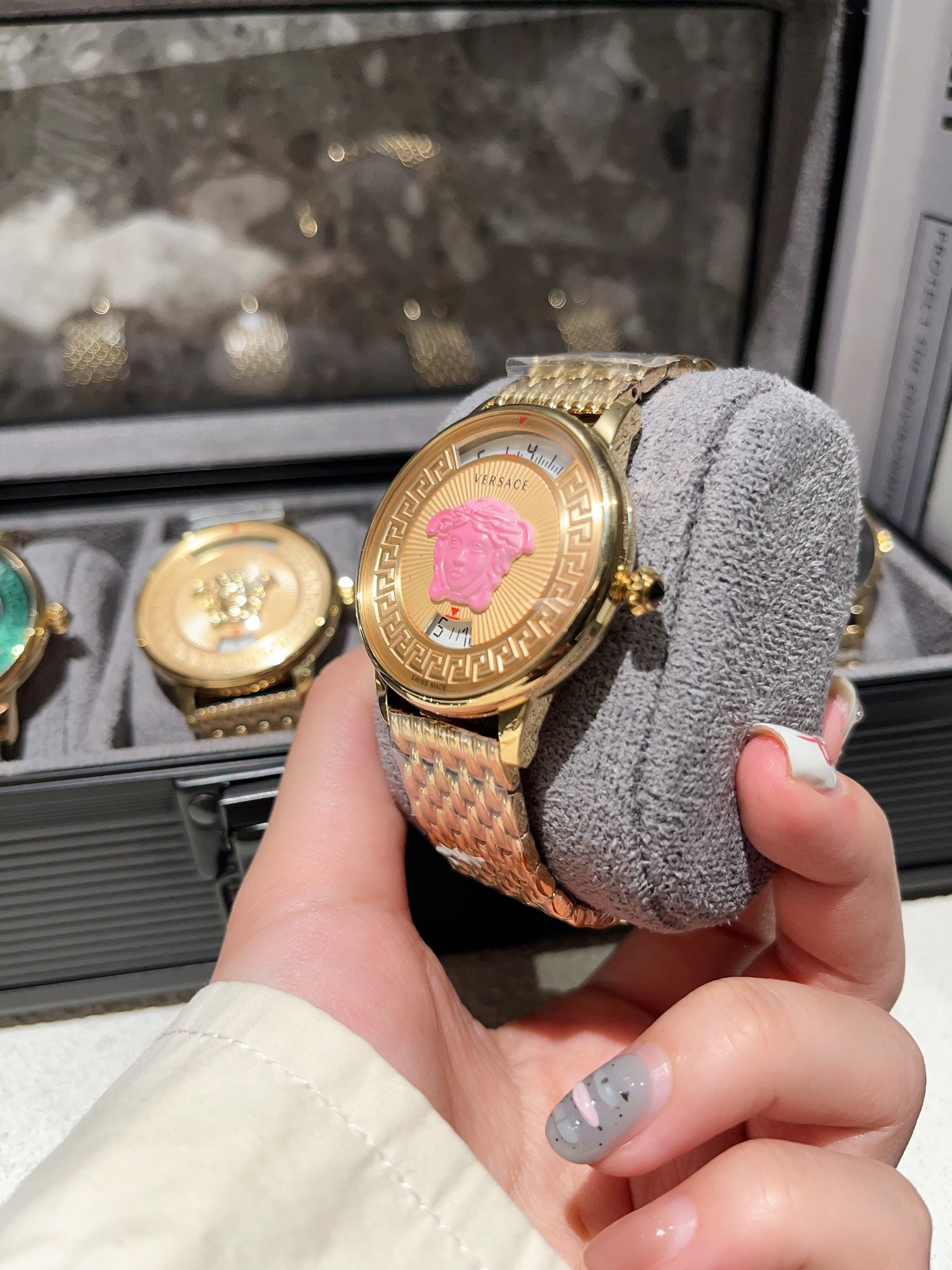 这款手表是AAAAA 1:1 质量 (非常棒). 使用了和原版一模一样的材料. 商标部分也保持了和范思哲/Versace一样. 图片拍摄是实物手表拍摄, 您所收到的实物保证和我们图片一模一样.
