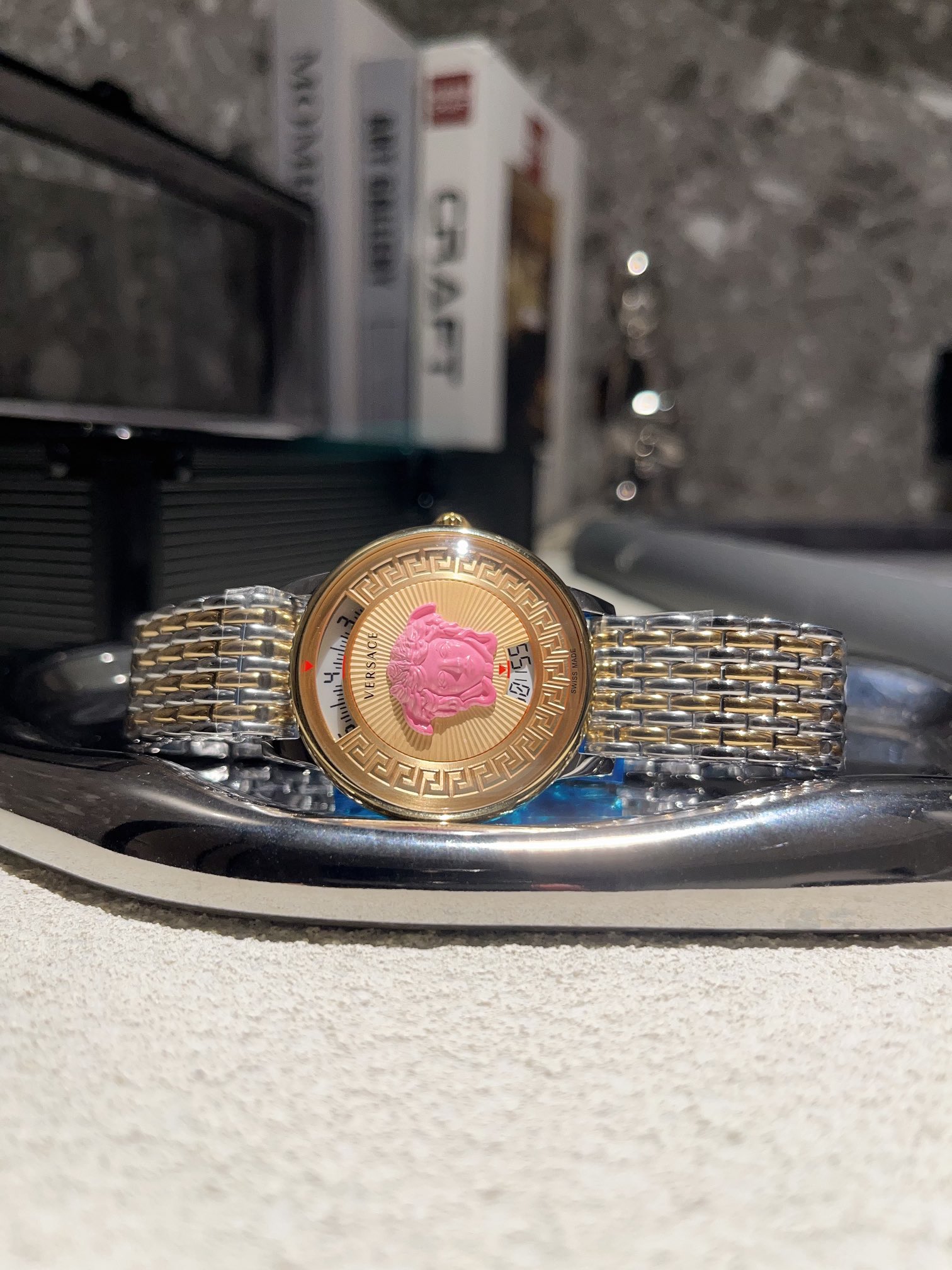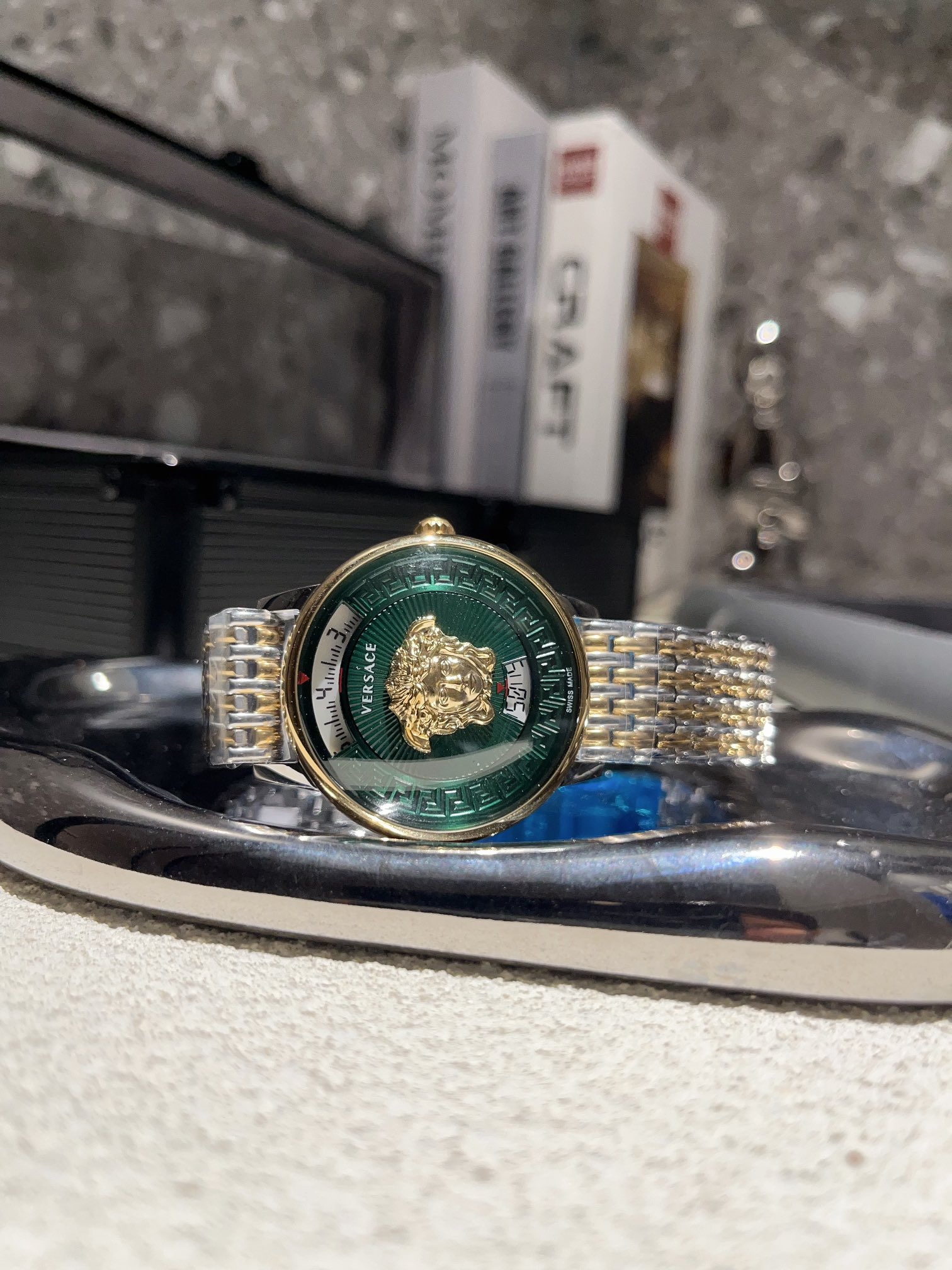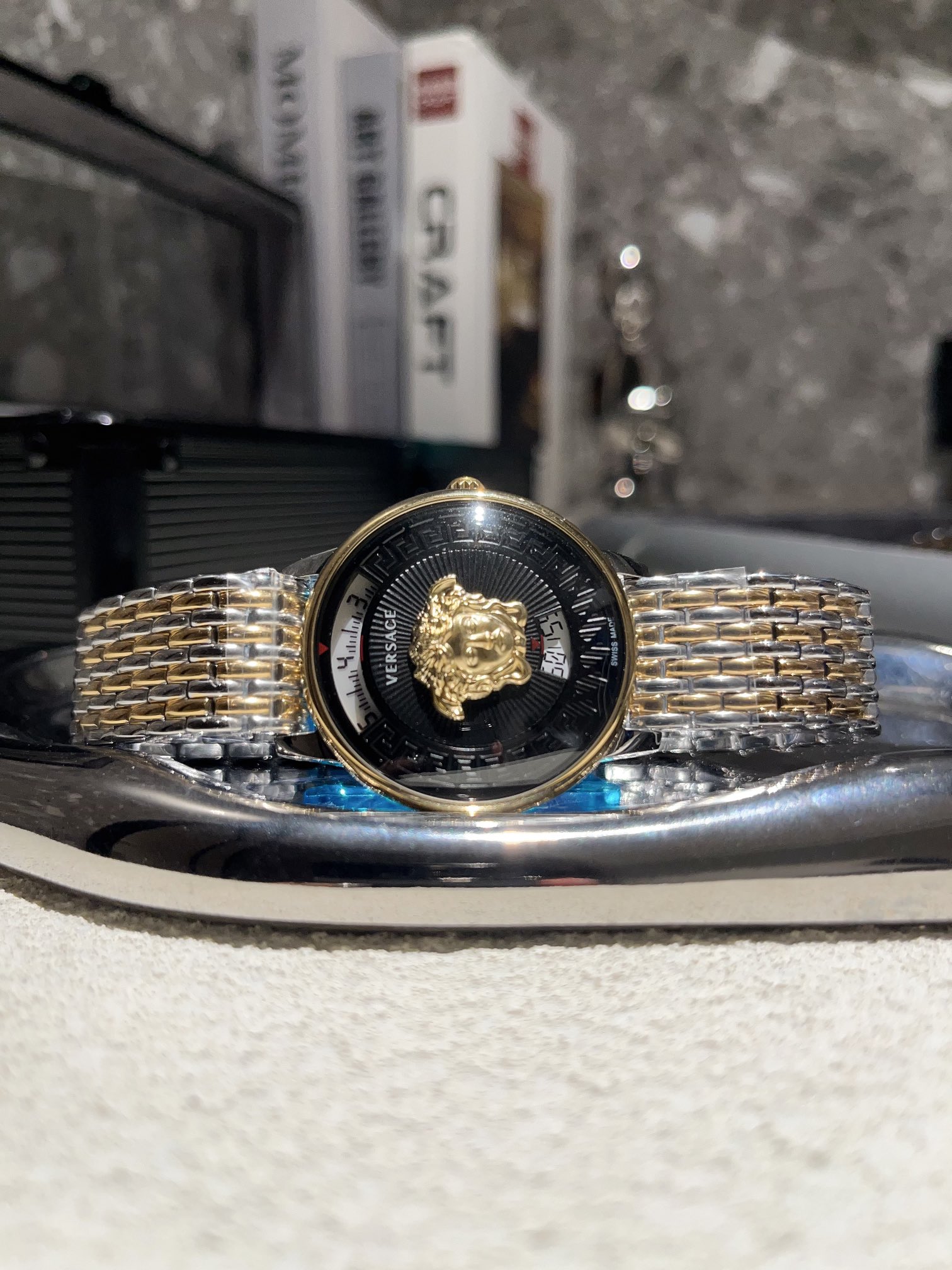 这款手表是AAAAA 1:1 质量 (非常棒). 使用了和原版一模一样的材料. 商标部分也保持了和范思哲/Versace一样. 图片拍摄是实物手表拍摄, 您所收到的实物保证和我们图片一模一样.