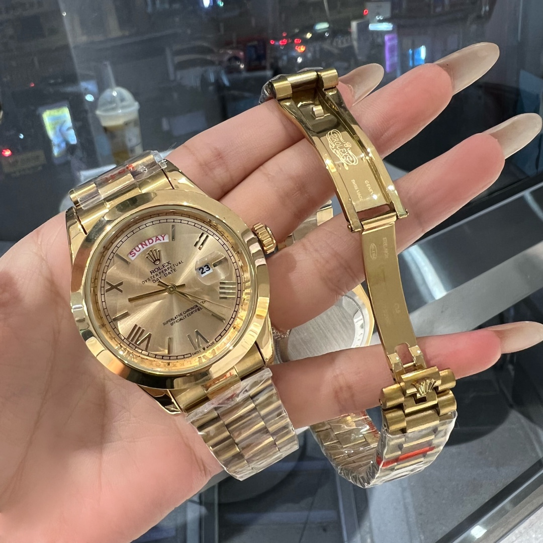 这款手表是AAAAA 1:1 质量 (非常棒). 使用了和原版一模一样的材料. 商标部分也保持了和劳力士/Rolex一样. 图片拍摄是实物手表拍摄, 您所收到的实物保证和我们图片一模一样.