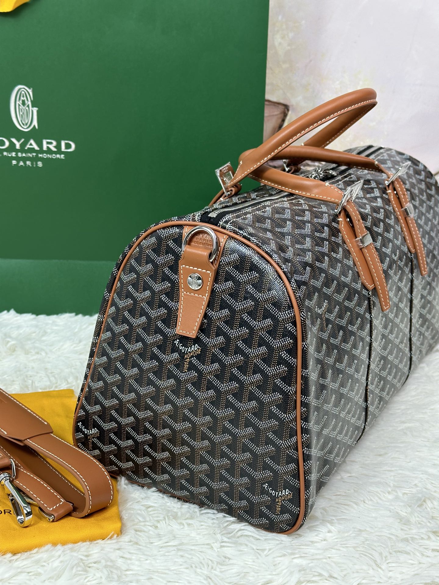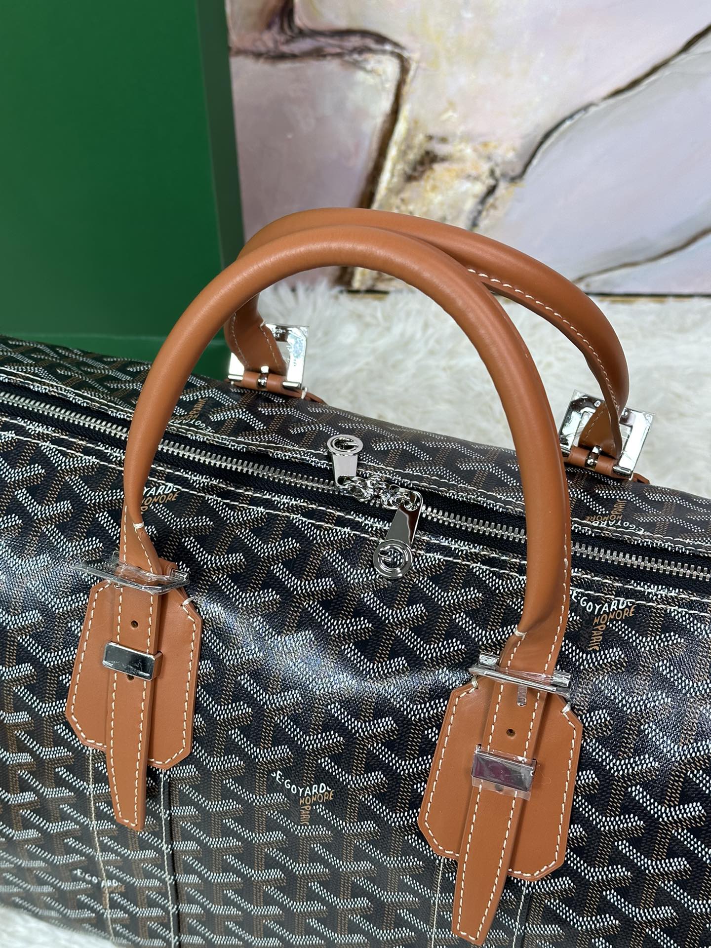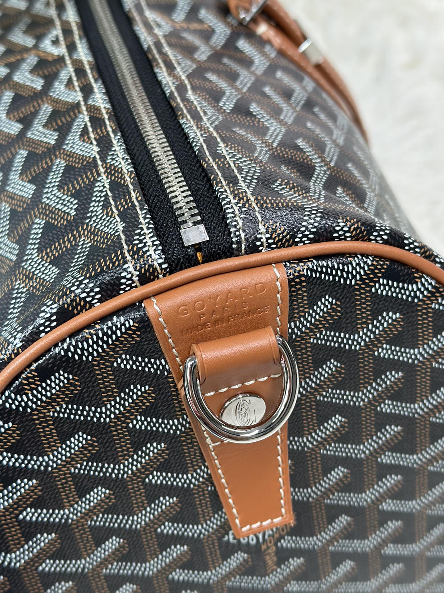 这款拉杆箱是AAAAA 1:1 质量 (非常棒). 使用了和原版一模一样的材料. 商标部分也保持了和Goyard一样. 图片拍摄是实物拉杆箱拍摄, 您所收到的实物保证和我们图片一模一样.