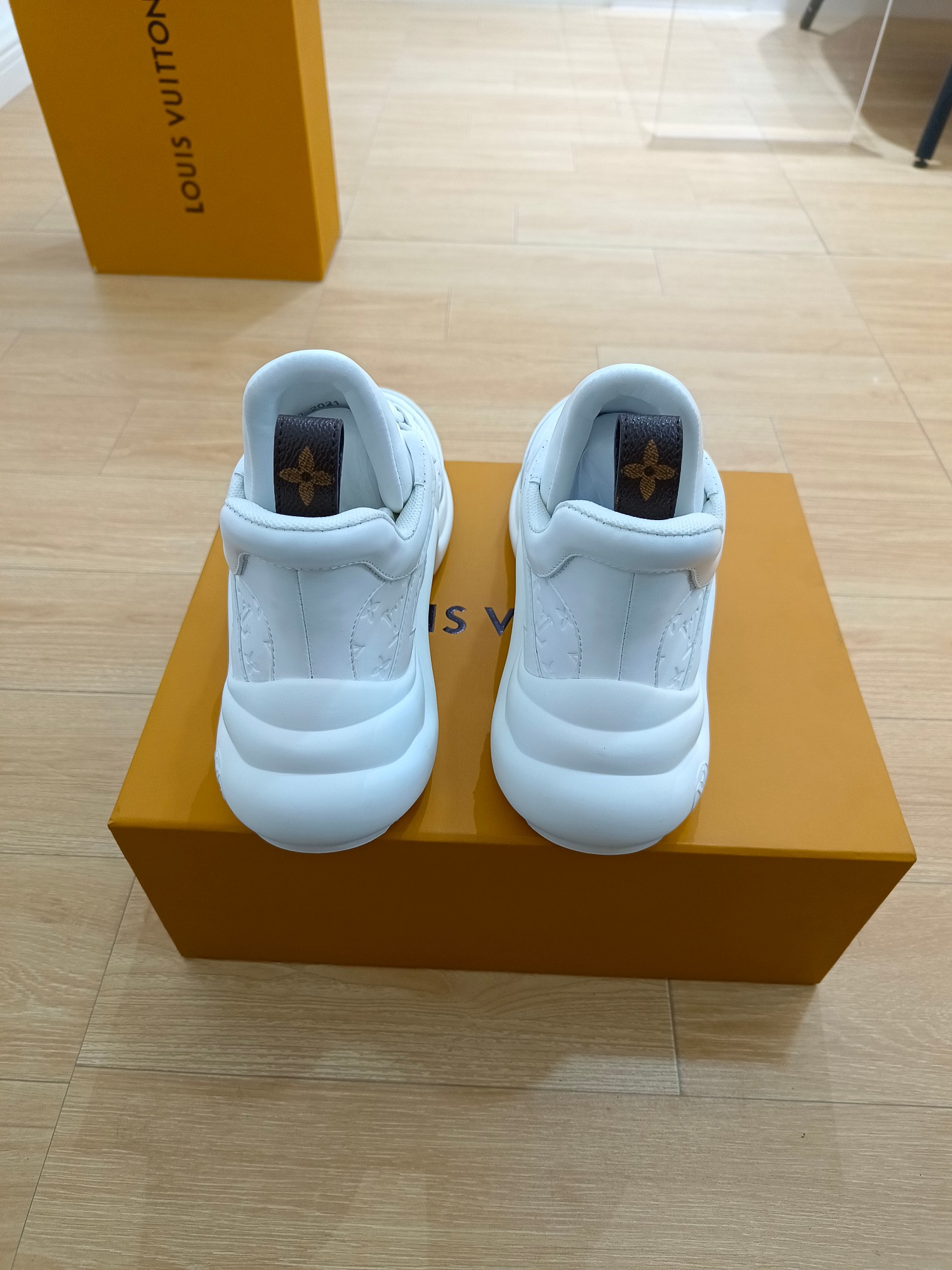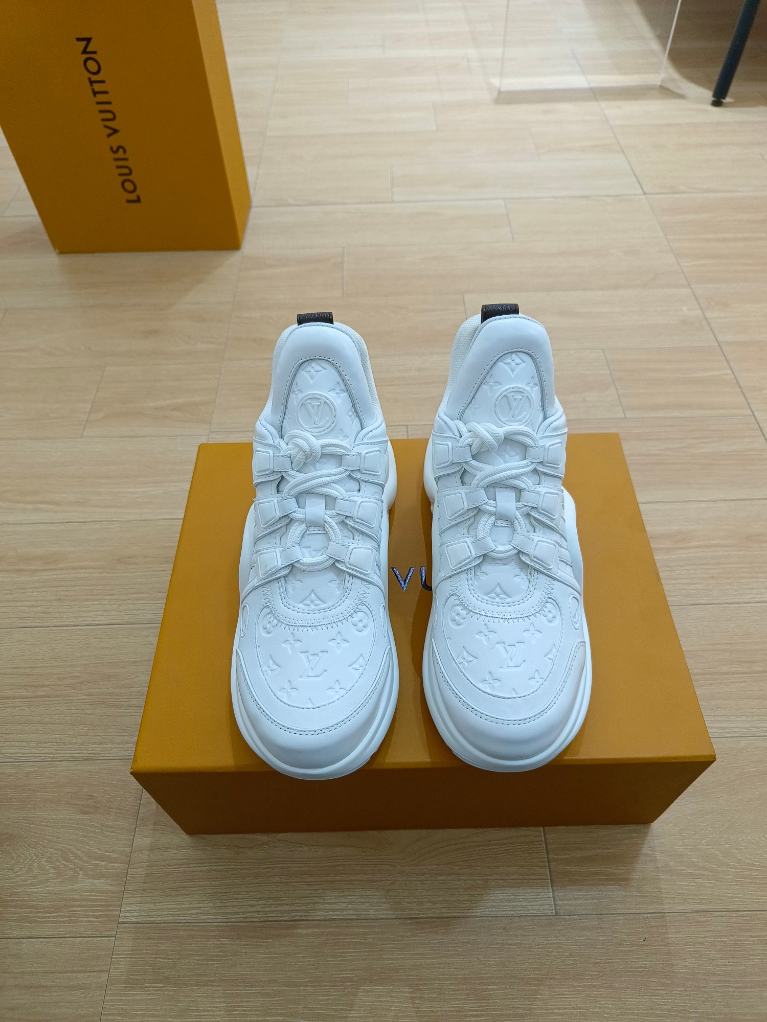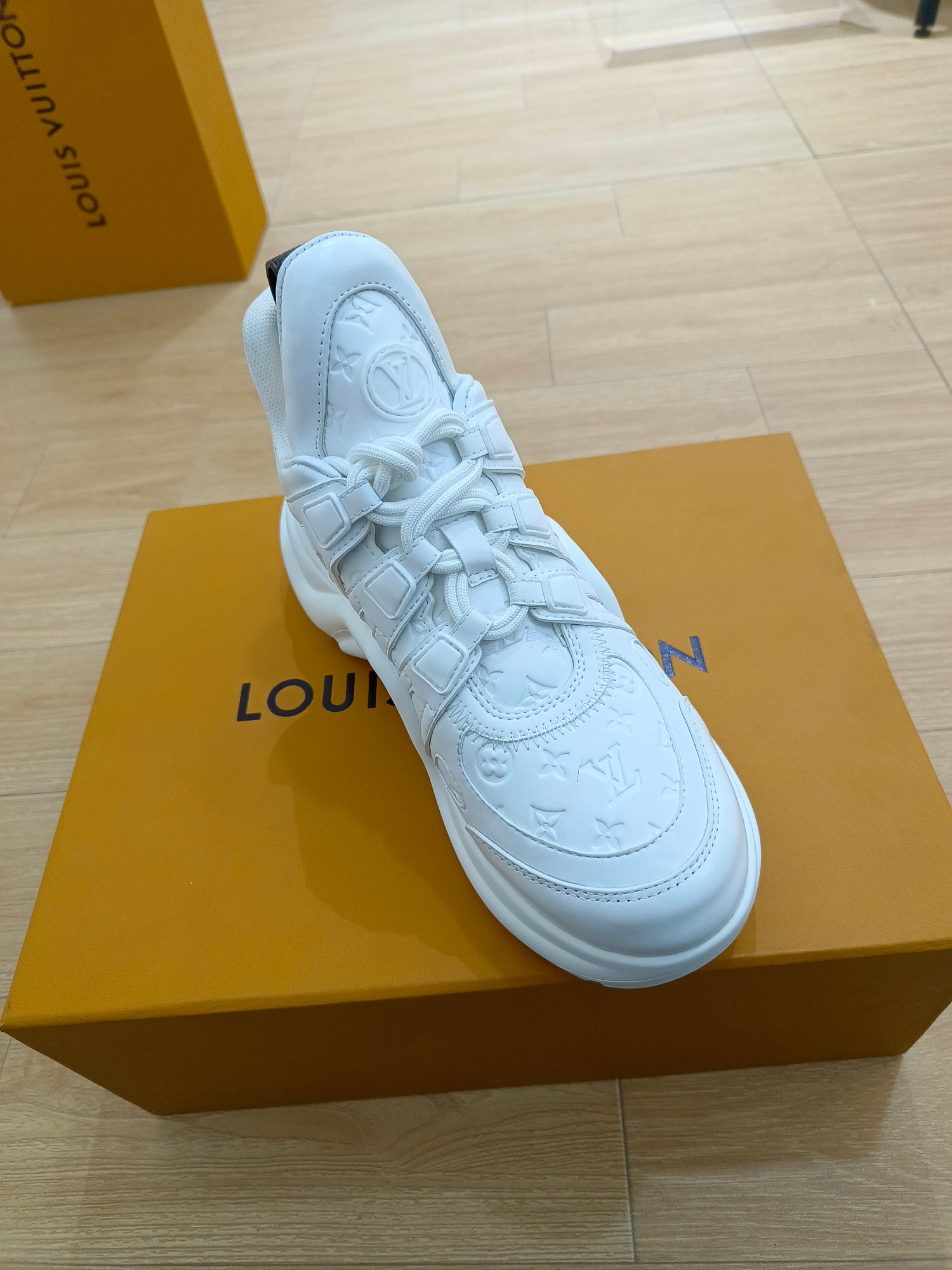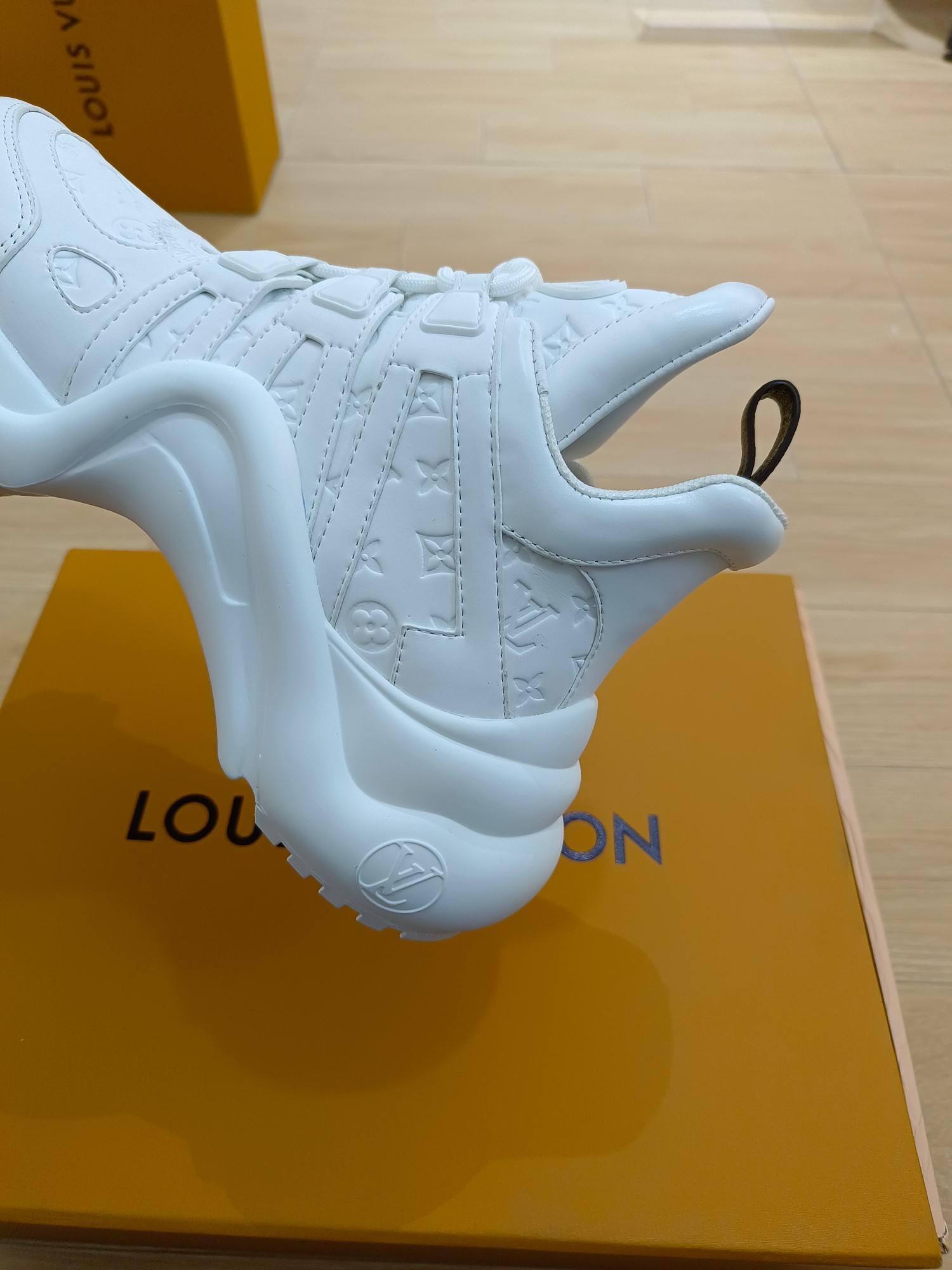 这款鞋子是AAAAA 1:1 质量 (非常棒). 使用了和原版一模一样的材料. 商标部分也保持了和路易威登/Louis Vuitton一样. 图片拍摄是实物鞋子拍摄, 您所收到的实物保证和我们图片一模一样.