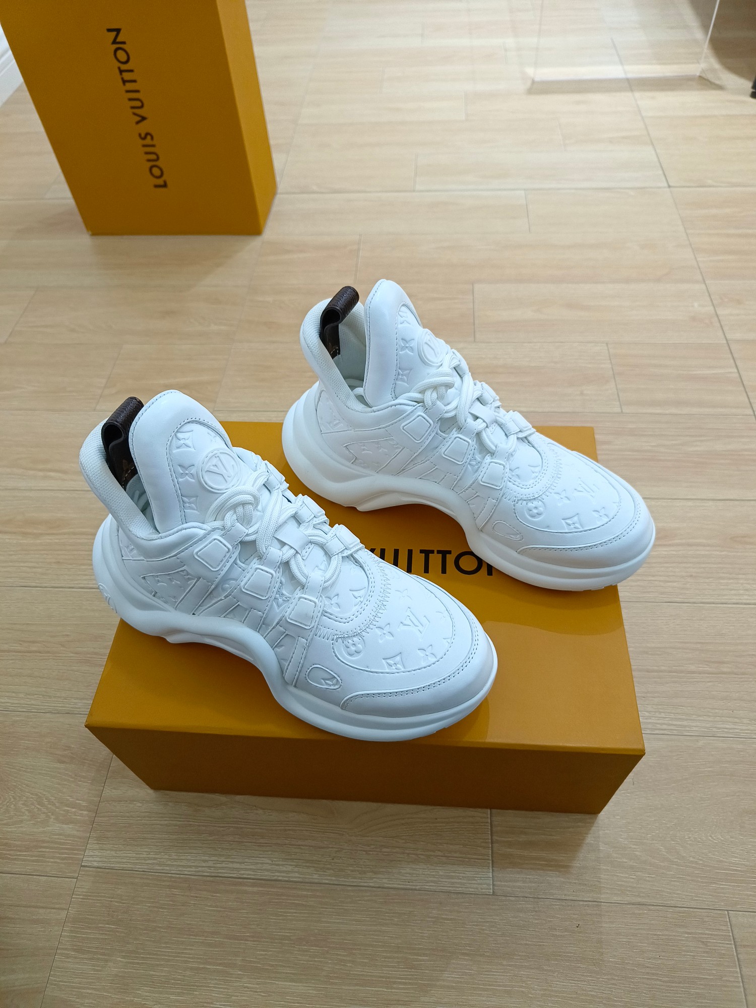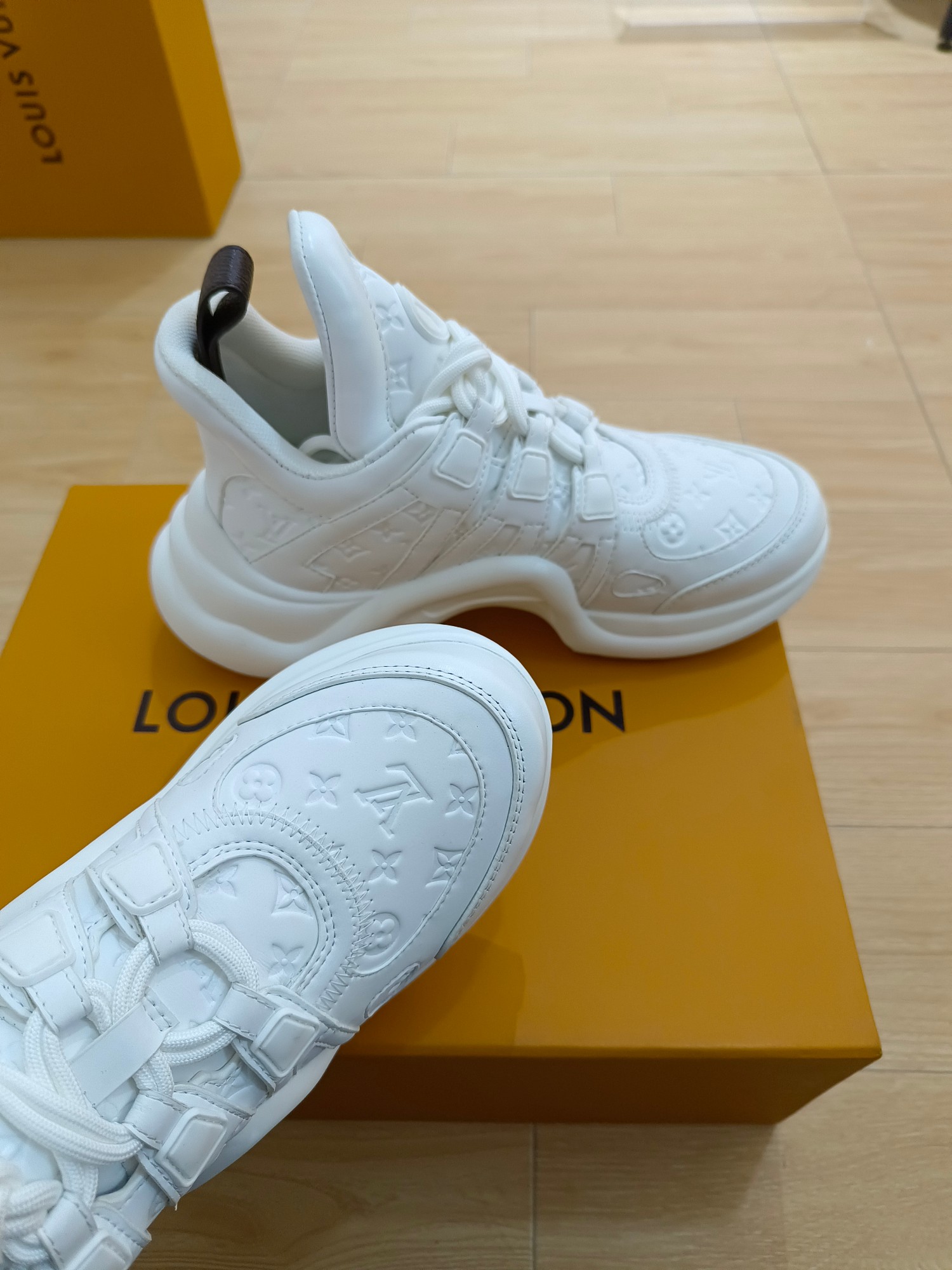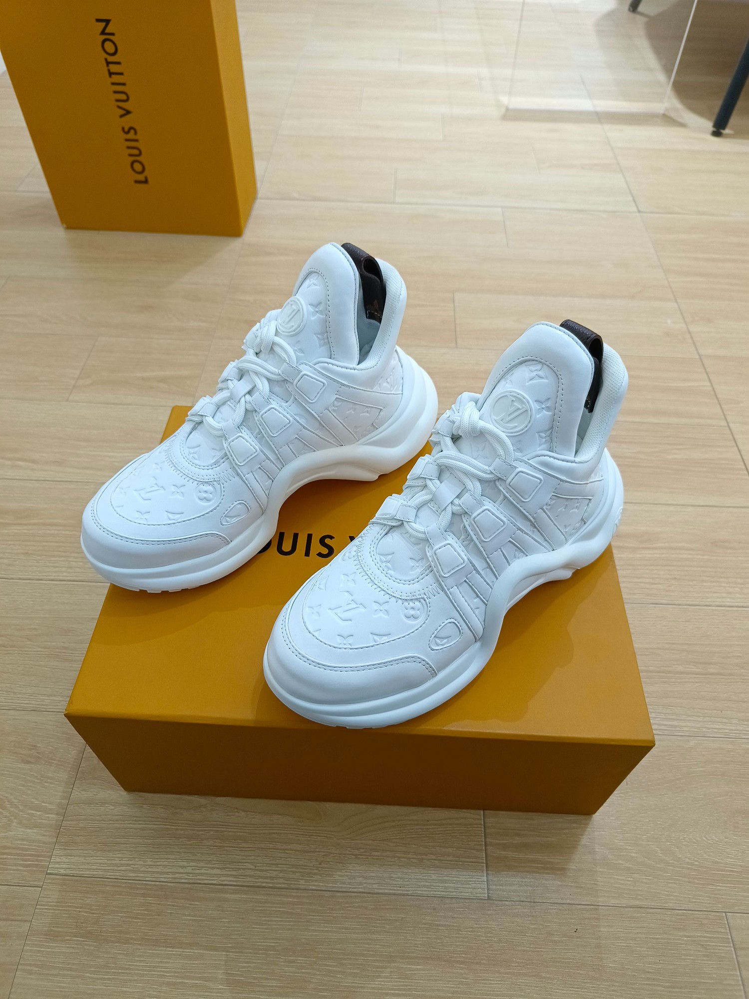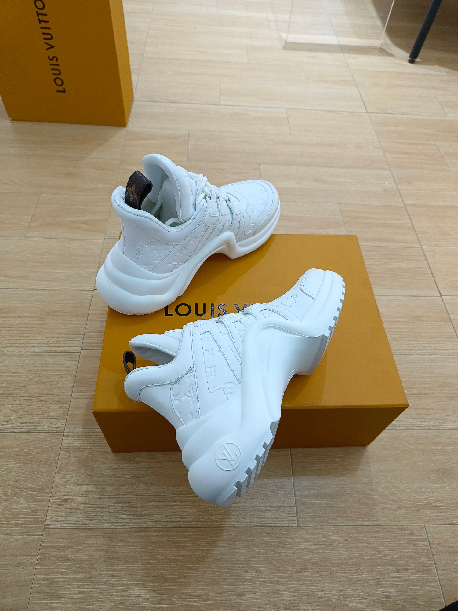这款鞋子是AAAAA 1:1 质量 (非常棒). 使用了和原版一模一样的材料. 商标部分也保持了和路易威登/Louis Vuitton一样. 图片拍摄是实物鞋子拍摄, 您所收到的实物保证和我们图片一模一样.