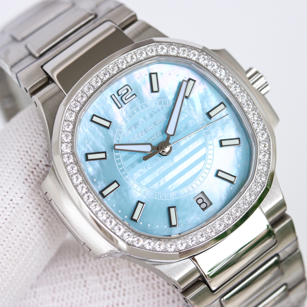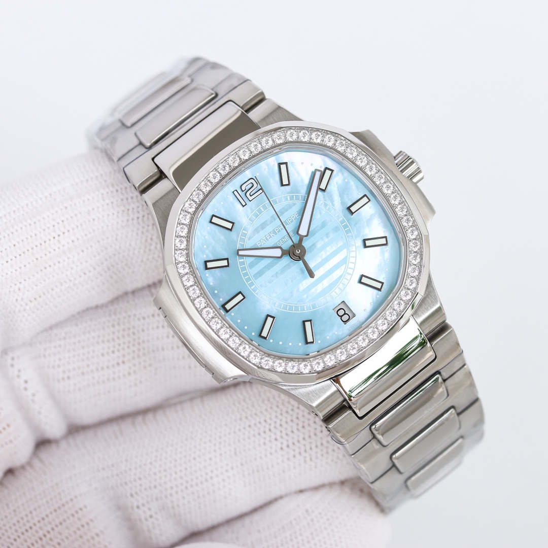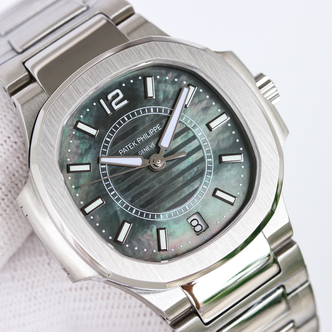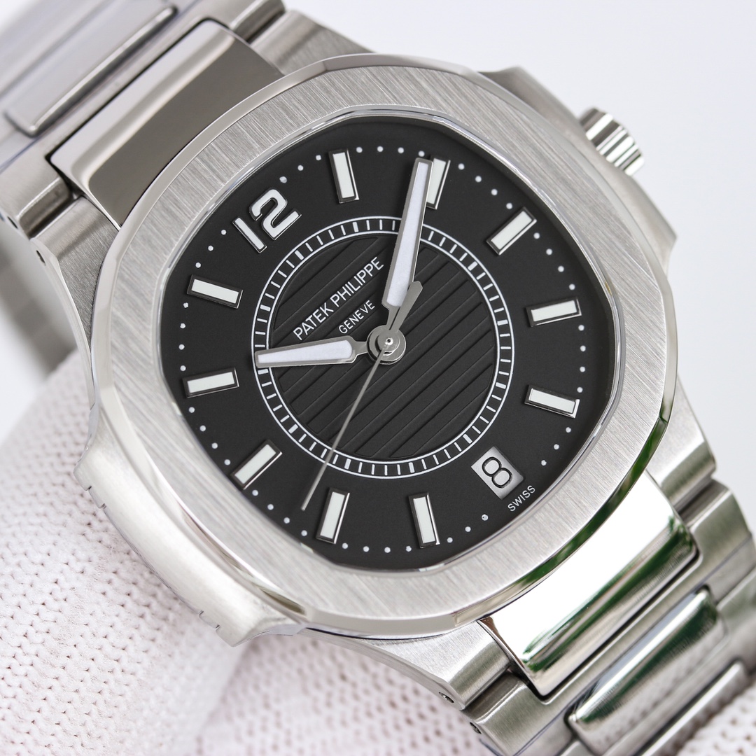 这款手表是AAAAA 1:1 质量 (非常棒). 使用了和原版一模一样的材料. 商标部分也保持了和百达翡丽/Patek Philippe一样. 图片拍摄是实物手表拍摄, 您所收到的实物保证和我们图片一模一样.