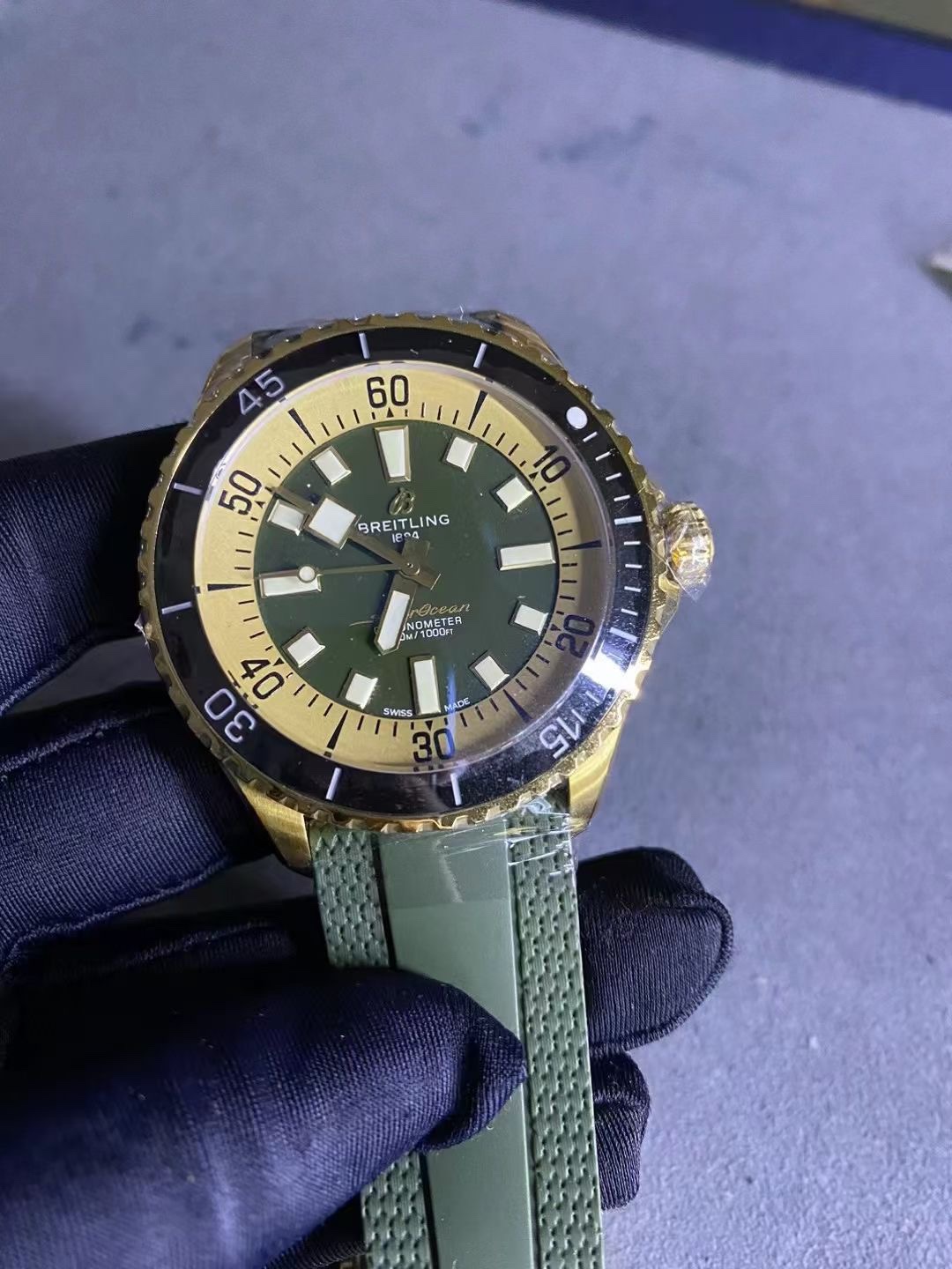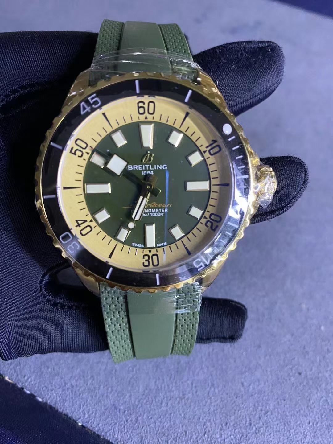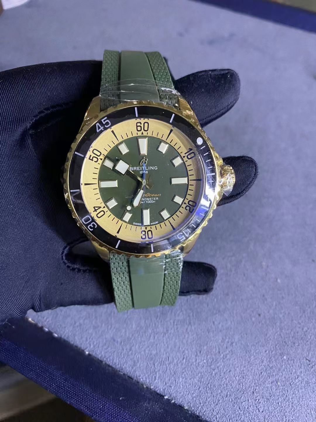 这款手表是AAAAA 1:1 质量 (非常棒). 使用了和原版一模一样的材料. 商标部分也保持了和Breitling一样. 图片拍摄是实物手表拍摄, 您所收到的实物保证和我们图片一模一样.