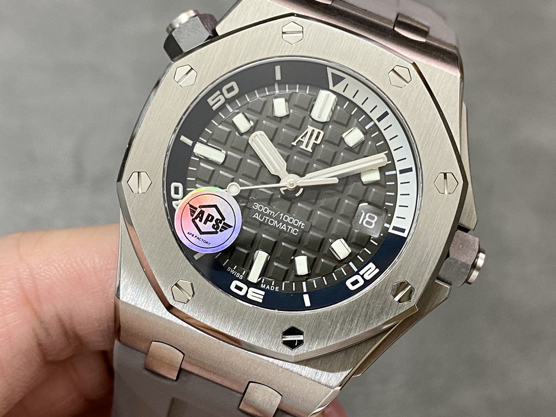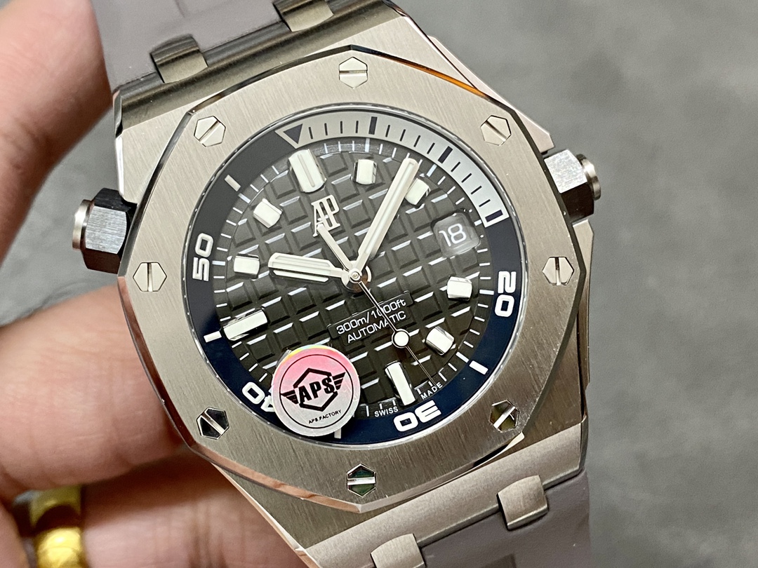 这款手表是AAAAA 1:1 质量 (非常棒). 使用了和原版一模一样的材料. 商标部分也保持了和爱彼/Audemars Piguet一样. 图片拍摄是实物手表拍摄, 您所收到的实物保证和我们图片一模一样.