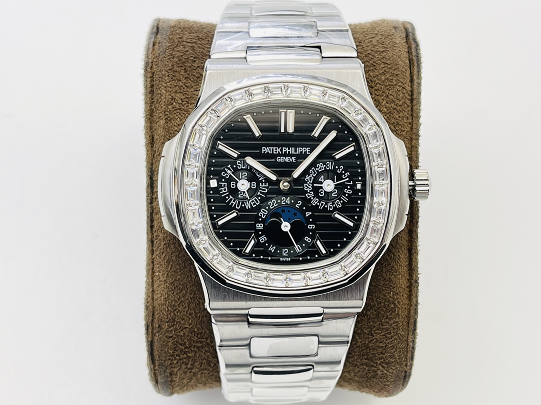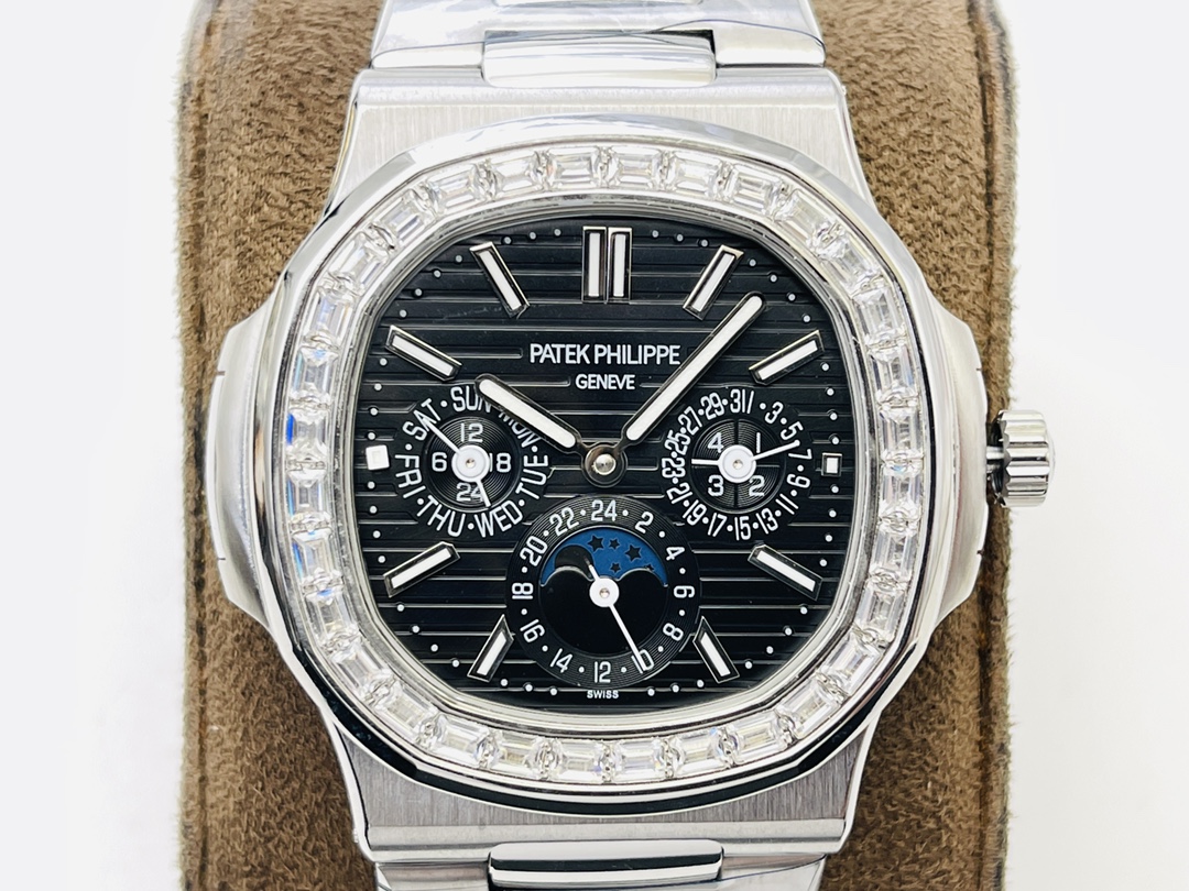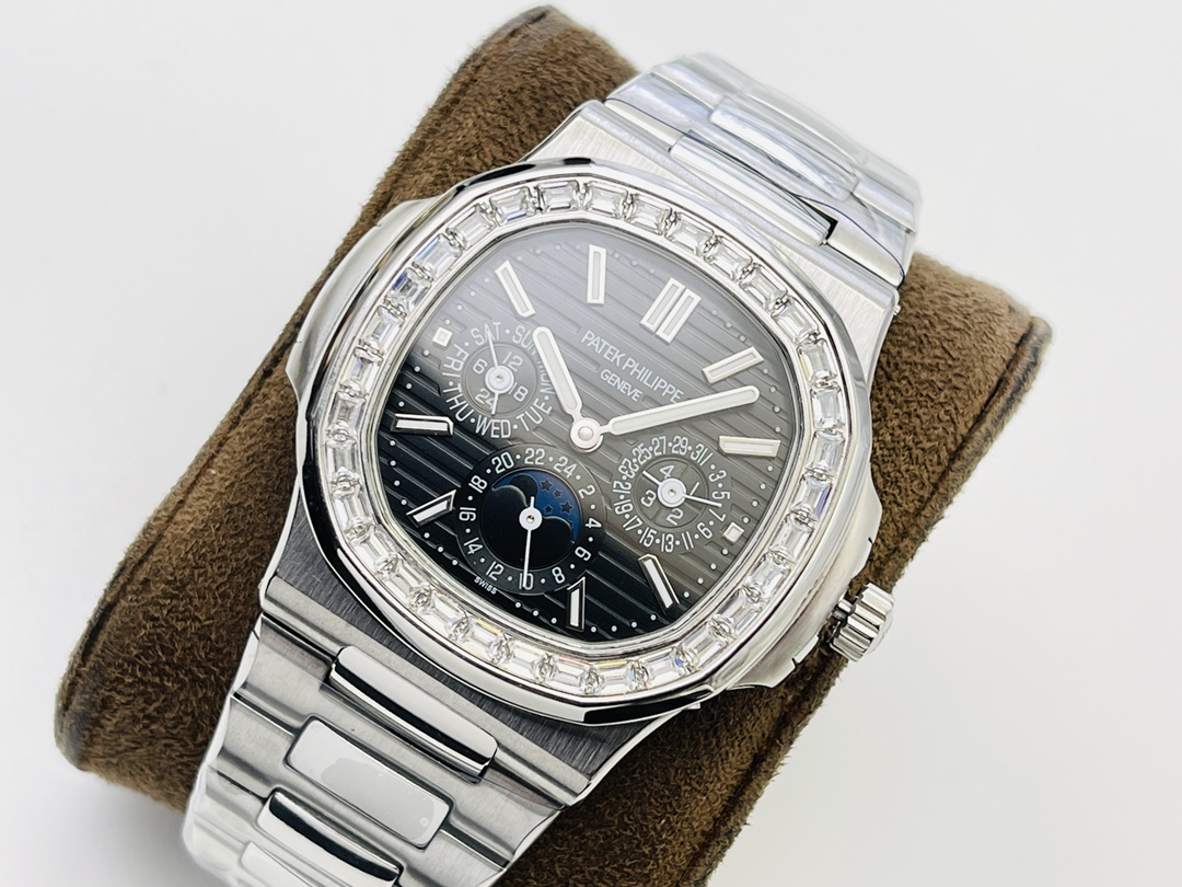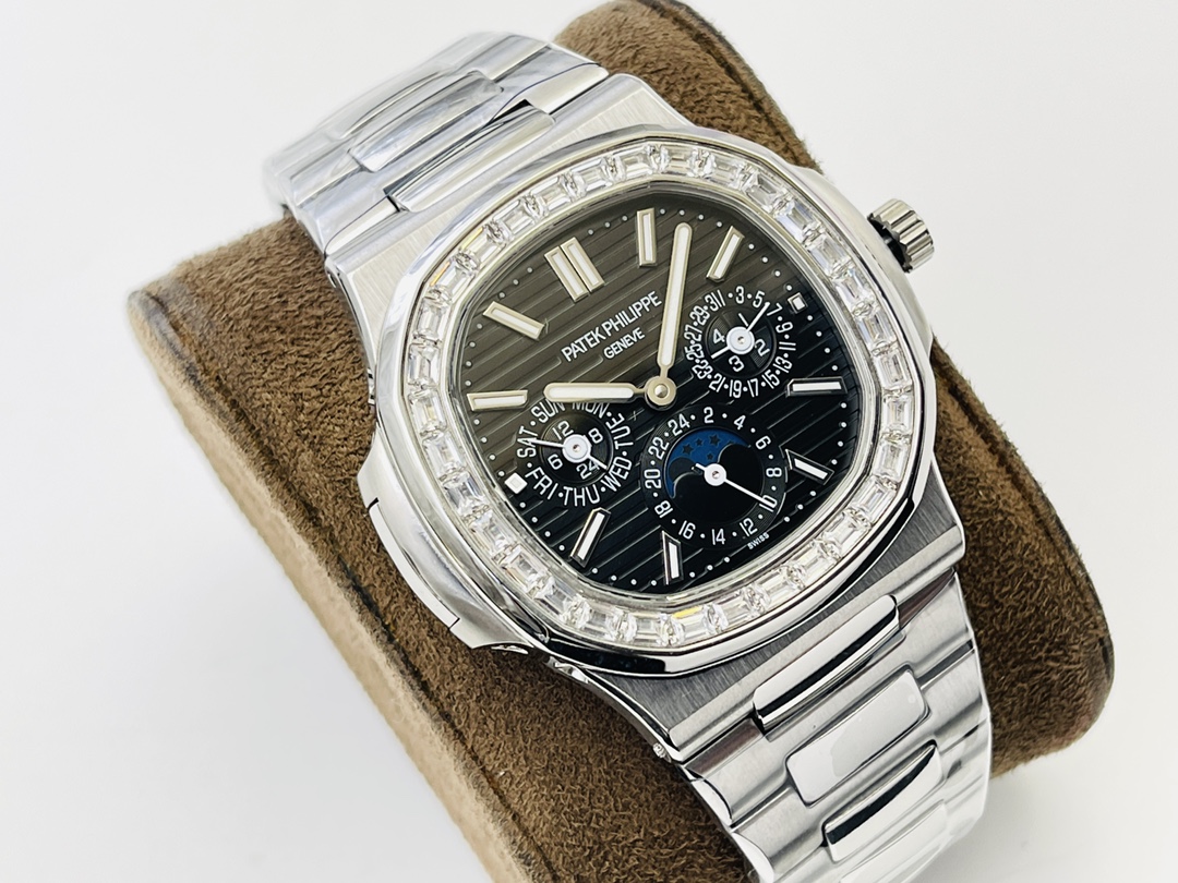 这款手表是AAAAA 1:1 质量 (非常棒). 使用了和原版一模一样的材料. 商标部分也保持了和百达翡丽/Patek Philippe一样. 图片拍摄是实物手表拍摄, 您所收到的实物保证和我们图片一模一样.