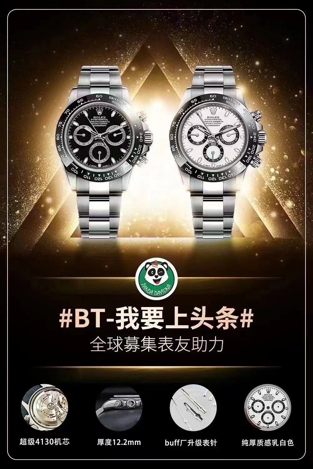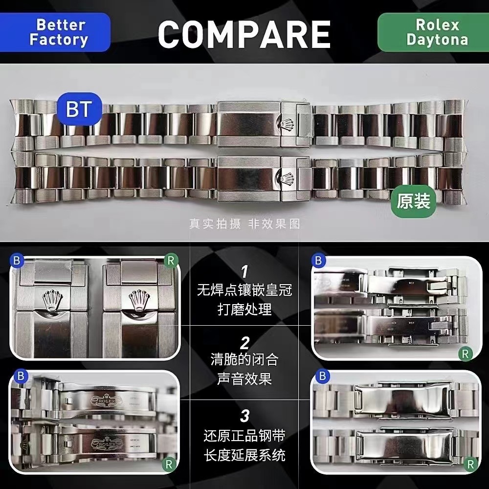 这款手表是AAAAA 1:1 质量 (非常棒). 使用了和原版一模一样的材料. 商标部分也保持了和劳力士/Rolex一样. 图片拍摄是实物手表拍摄, 您所收到的实物保证和我们图片一模一样.