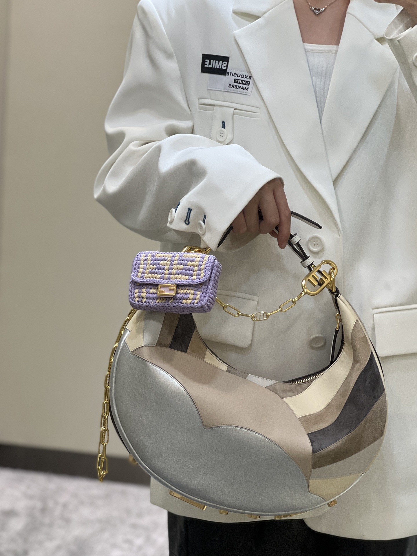 这款包包是AAAAA 1:1 质量 (非常棒). 使用了和原版一模一样的材料. 商标部分也保持了和芬迪/Fendi一样. 图片拍摄是实物包包拍摄, 您所收到的实物保证和我们图片一模一样.