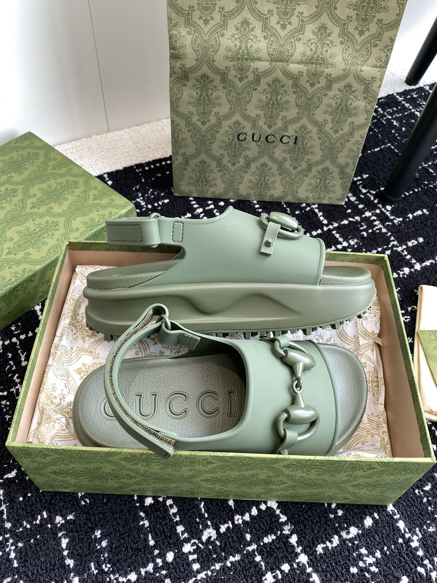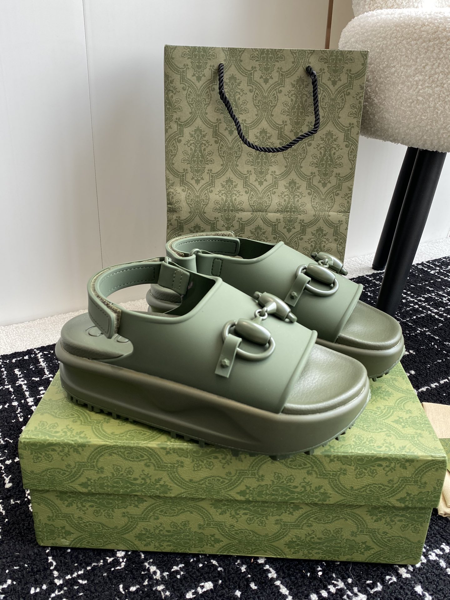 这款鞋子是AAAAA 1:1 质量 (非常棒). 使用了和原版一模一样的材料. 商标部分也保持了和古奇/Gucci一样. 图片拍摄是实物鞋子拍摄, 您所收到的实物保证和我们图片一模一样.