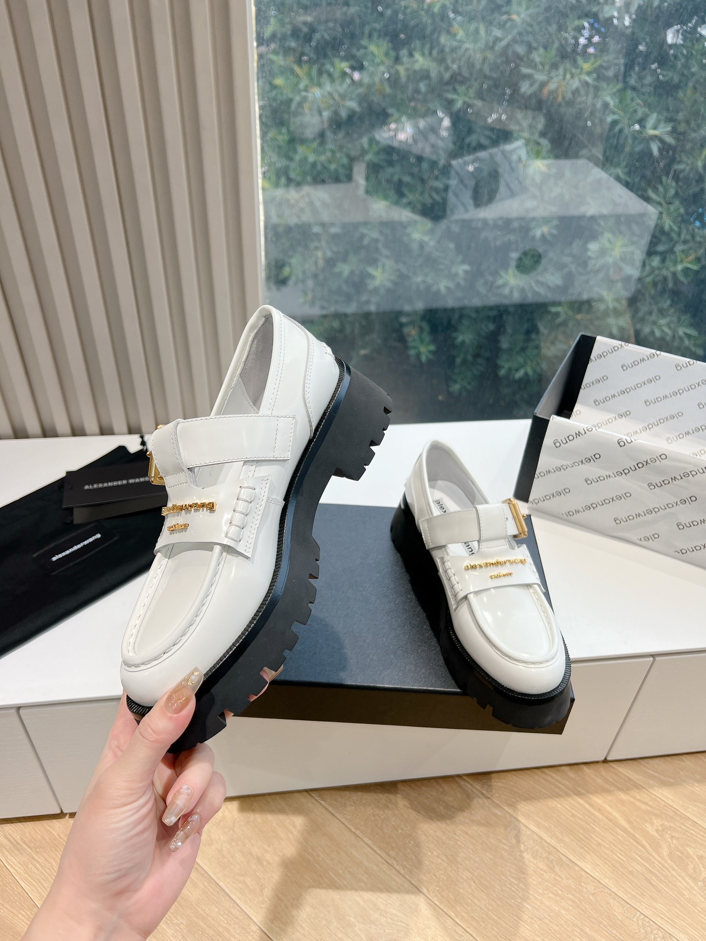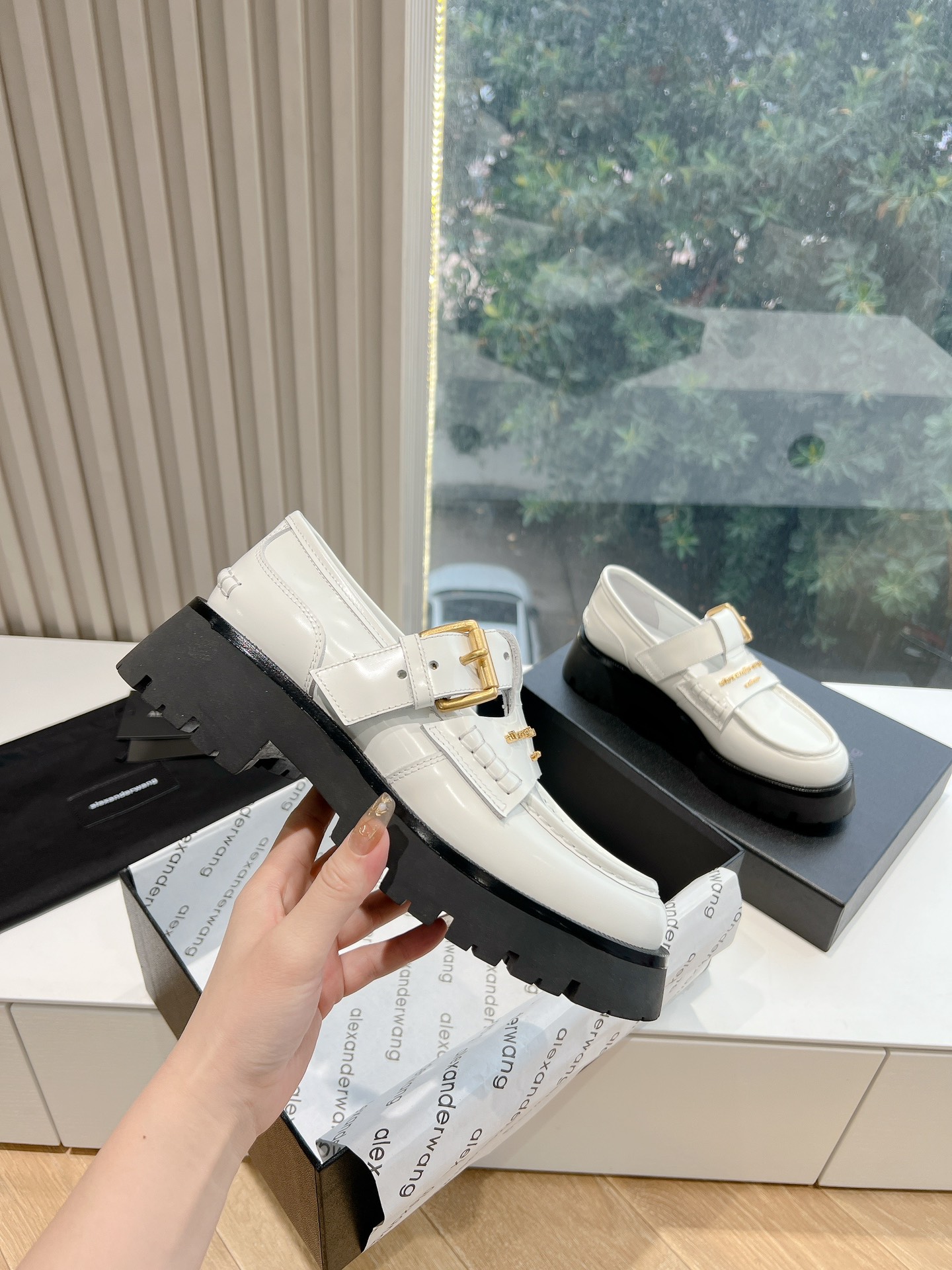 这款鞋子是AAAAA 1:1 质量 (非常棒). 使用了和原版一模一样的材料. 商标部分也保持了和亚历山大王/Alexander Wang一样. 图片拍摄是实物鞋子拍摄, 您所收到的实物保证和我们图片一模一样.