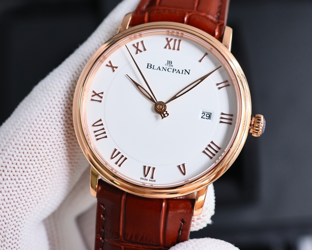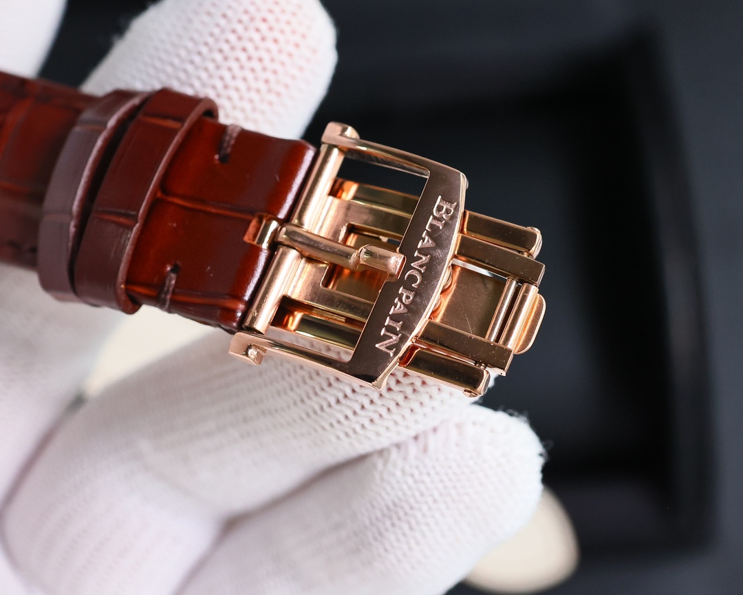 这款手表是AAAAA 1:1 质量 (非常棒). 使用了和原版一模一样的材料. 商标部分也保持了和Blancpain一样. 图片拍摄是实物手表拍摄, 您所收到的实物保证和我们图片一模一样.