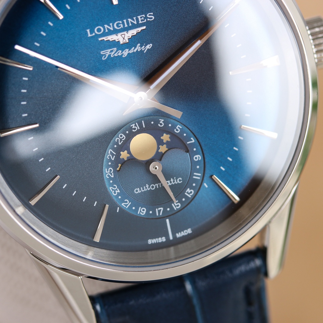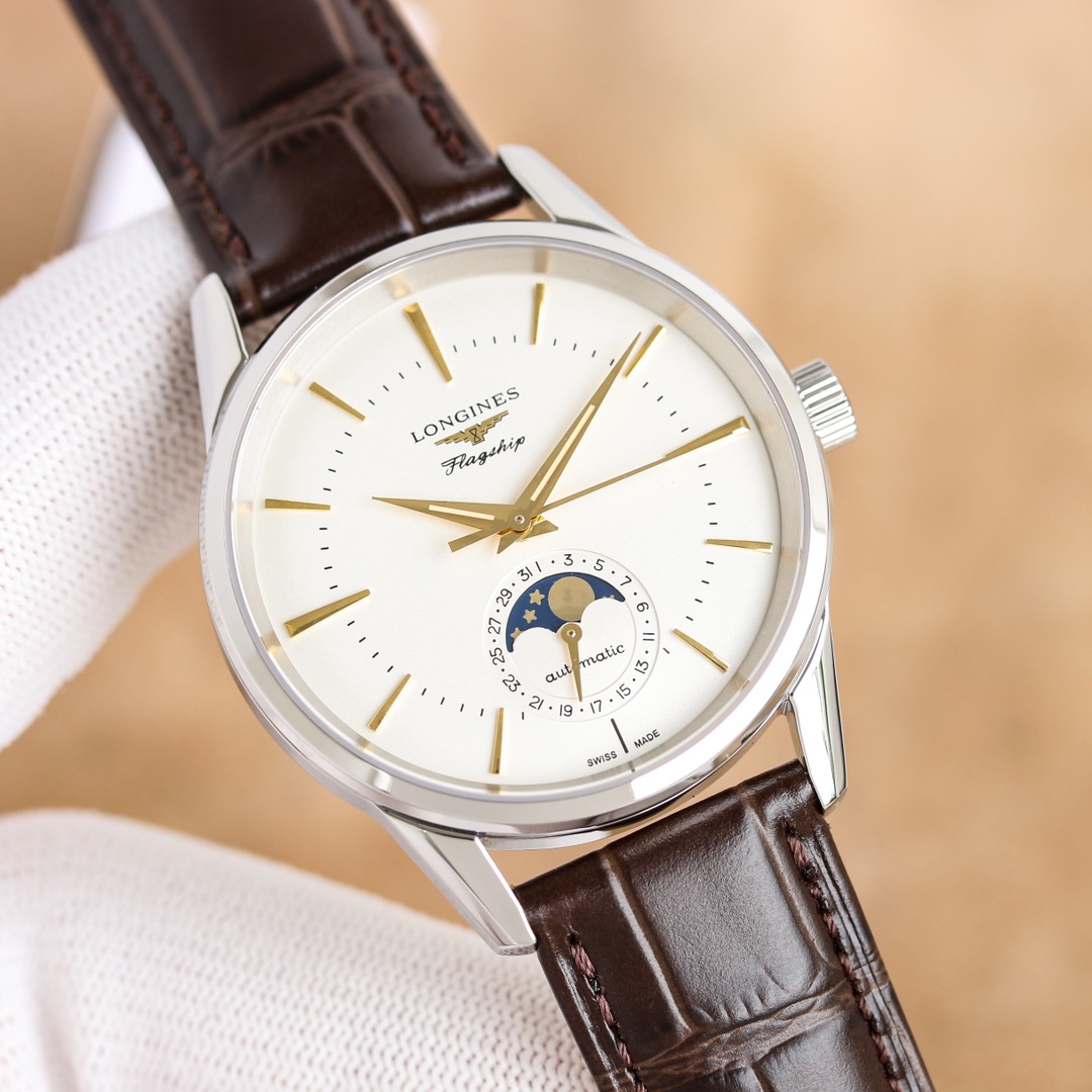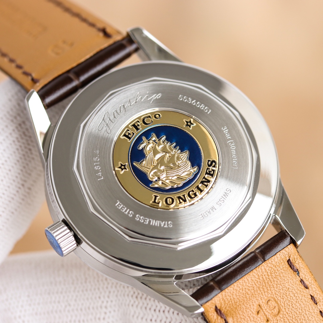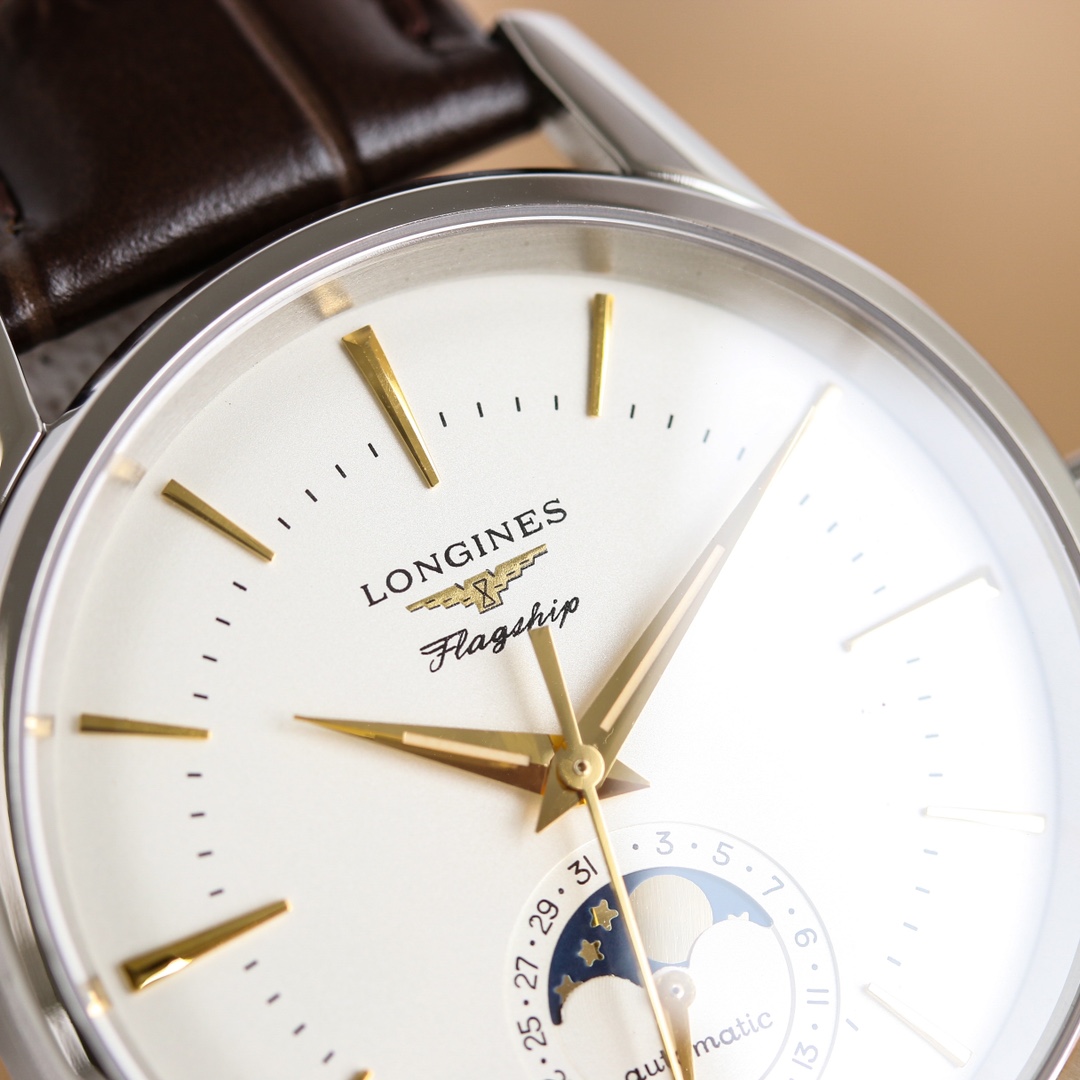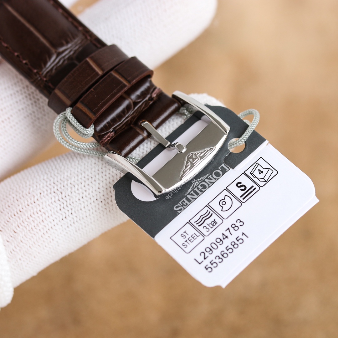 这款手表是AAAAA 1:1 质量 (非常棒). 使用了和原版一模一样的材料. 商标部分也保持了和浪琴/Longines一样. 图片拍摄是实物手表拍摄, 您所收到的实物保证和我们图片一模一样.