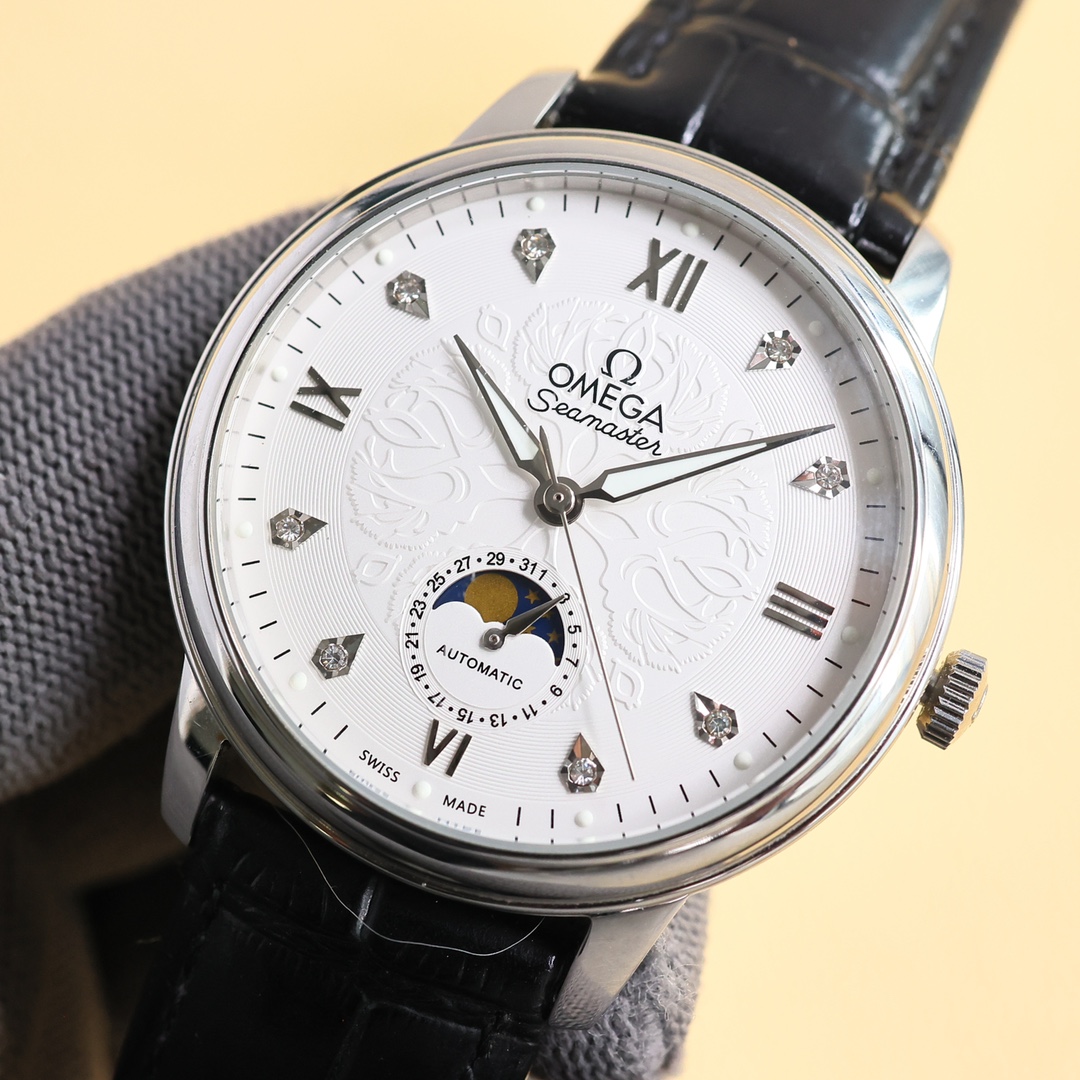 这款手表是AAAAA 1:1 质量 (非常棒). 使用了和原版一模一样的材料. 商标部分也保持了和欧米茄/Omega一样. 图片拍摄是实物手表拍摄, 您所收到的实物保证和我们图片一模一样.