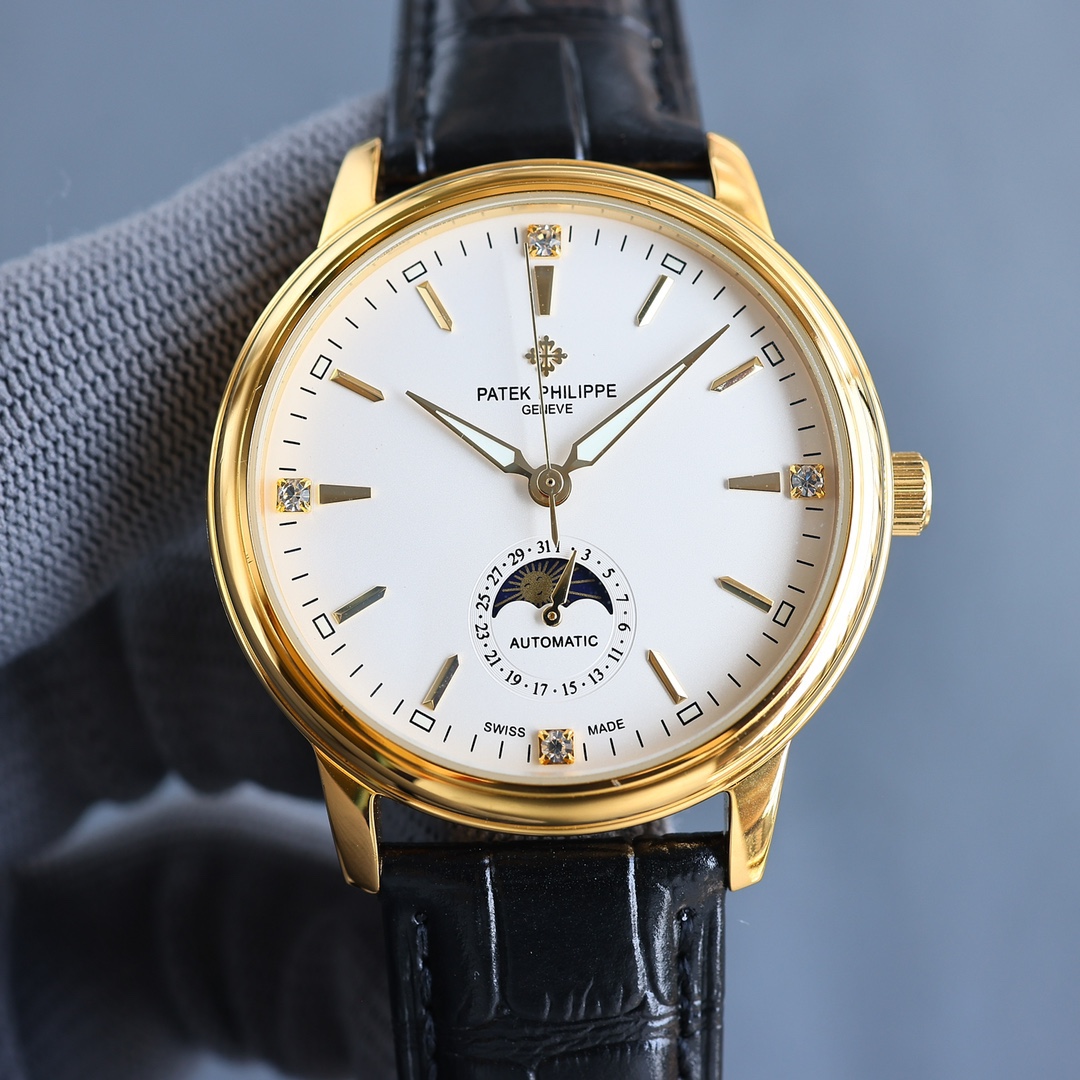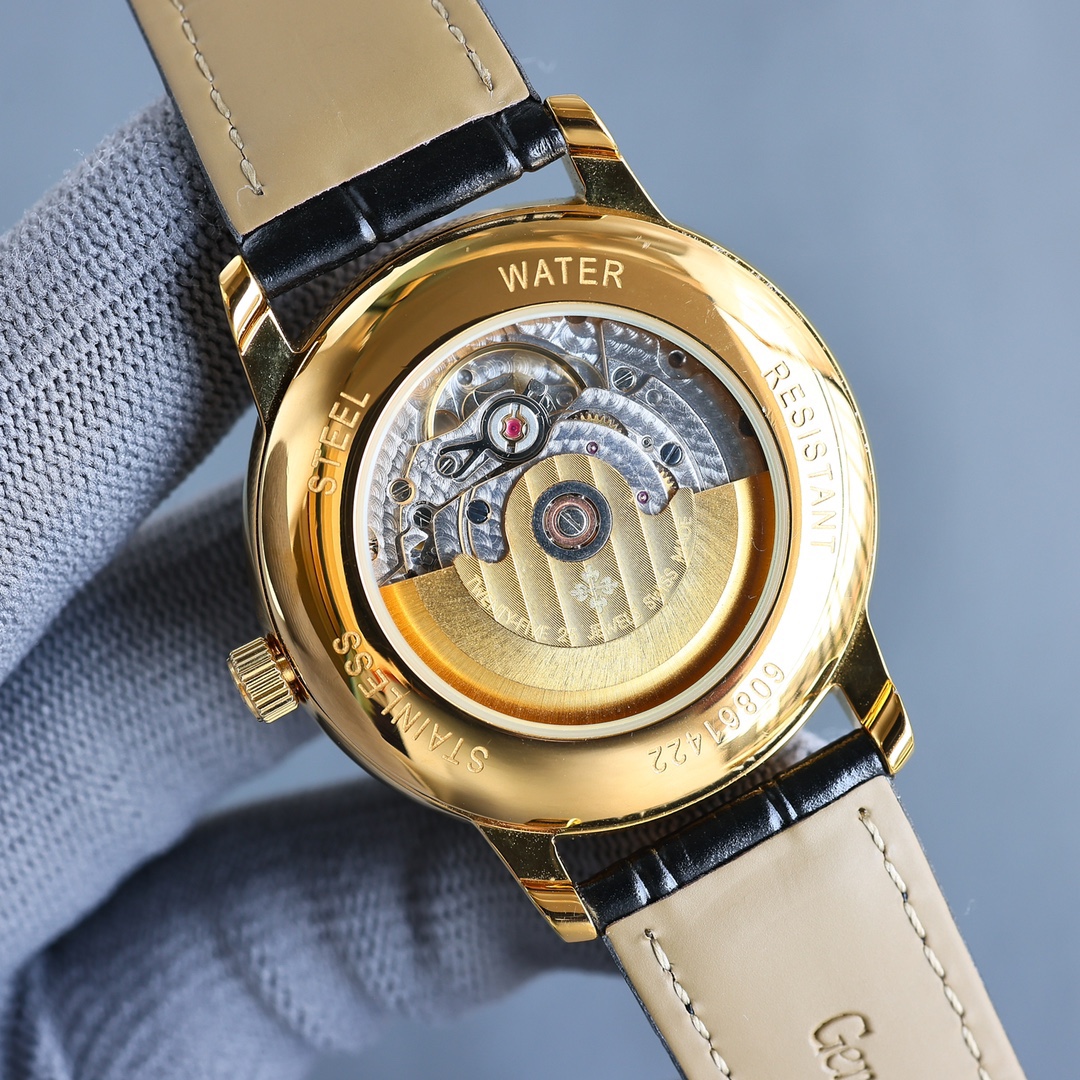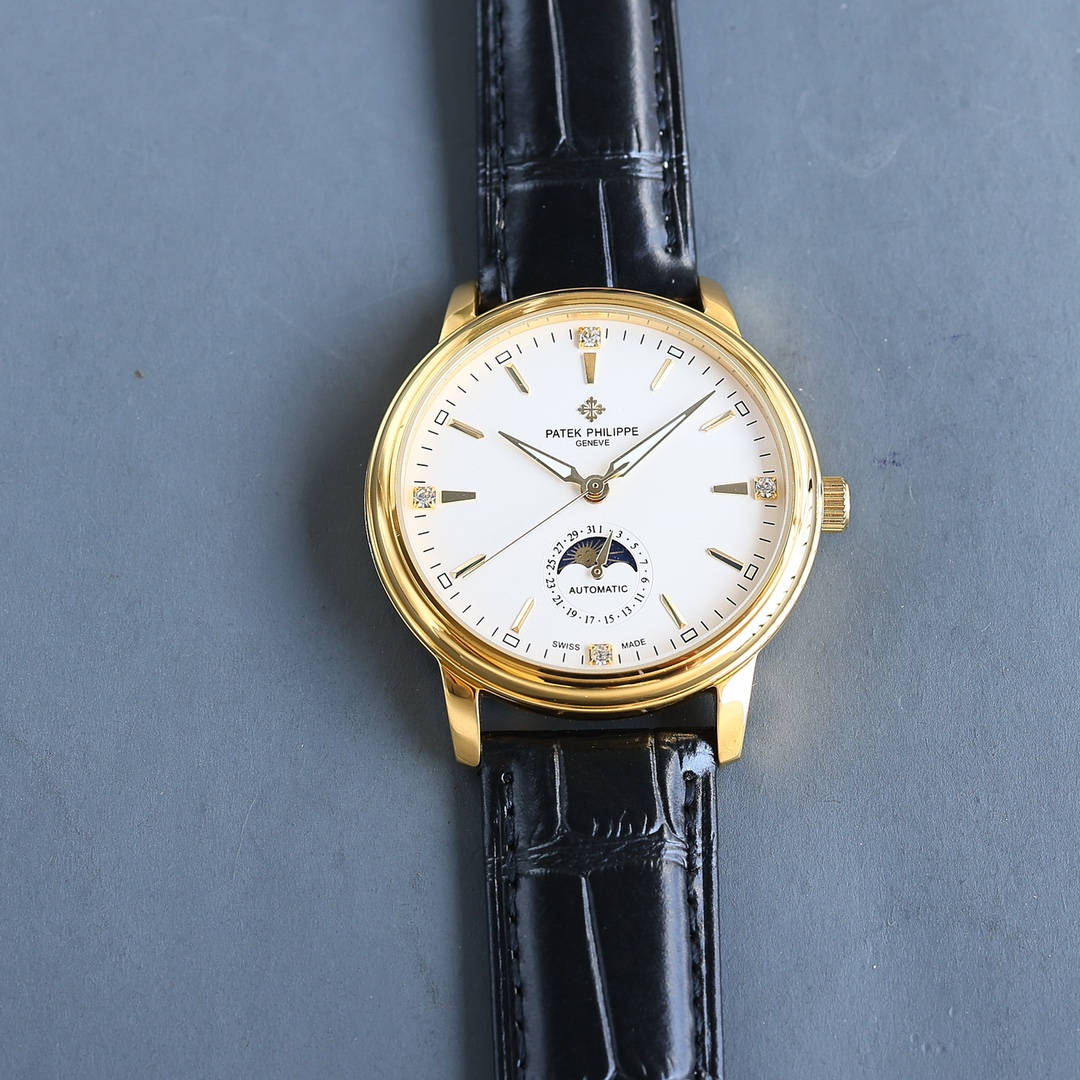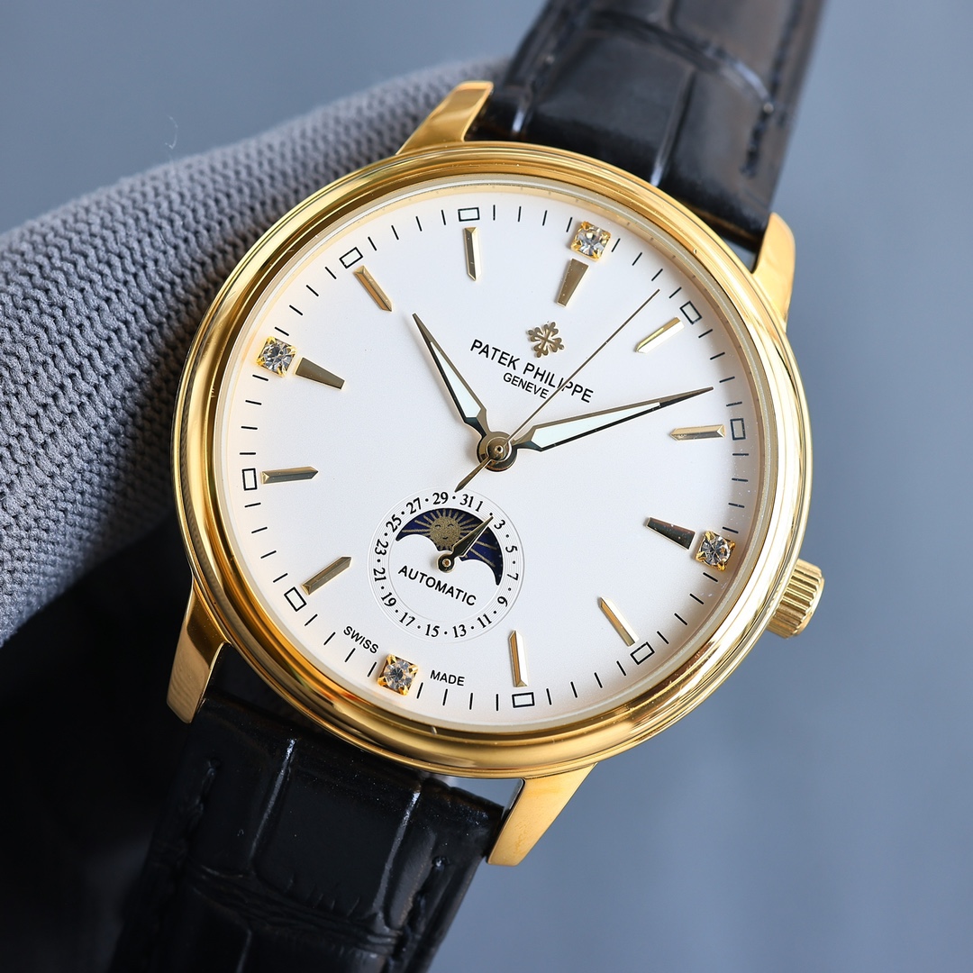 这款手表是AAAAA 1:1 质量 (非常棒). 使用了和原版一模一样的材料. 商标部分也保持了和百达翡丽/Patek Philippe一样. 图片拍摄是实物手表拍摄, 您所收到的实物保证和我们图片一模一样.