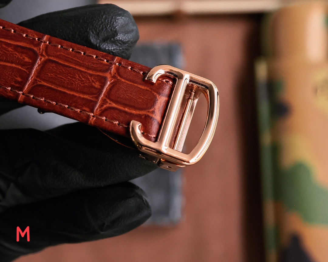 这款手表是AAAAA 1:1 质量 (非常棒). 使用了和原版一模一样的材料. 商标部分也保持了和卡地亚/Cartier一样. 图片拍摄是实物手表拍摄, 您所收到的实物保证和我们图片一模一样.
