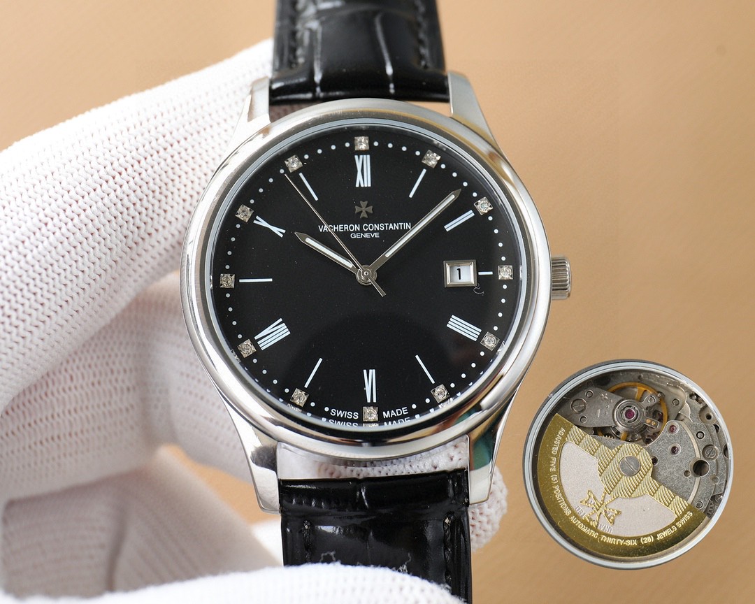 这款手表是AAAAA 1:1 质量 (非常棒). 使用了和原版一模一样的材料. 商标部分也保持了和江诗丹顿/Vacheron Constantin一样. 图片拍摄是实物手表拍摄, 您所收到的实物保证和我们图片一模一样.