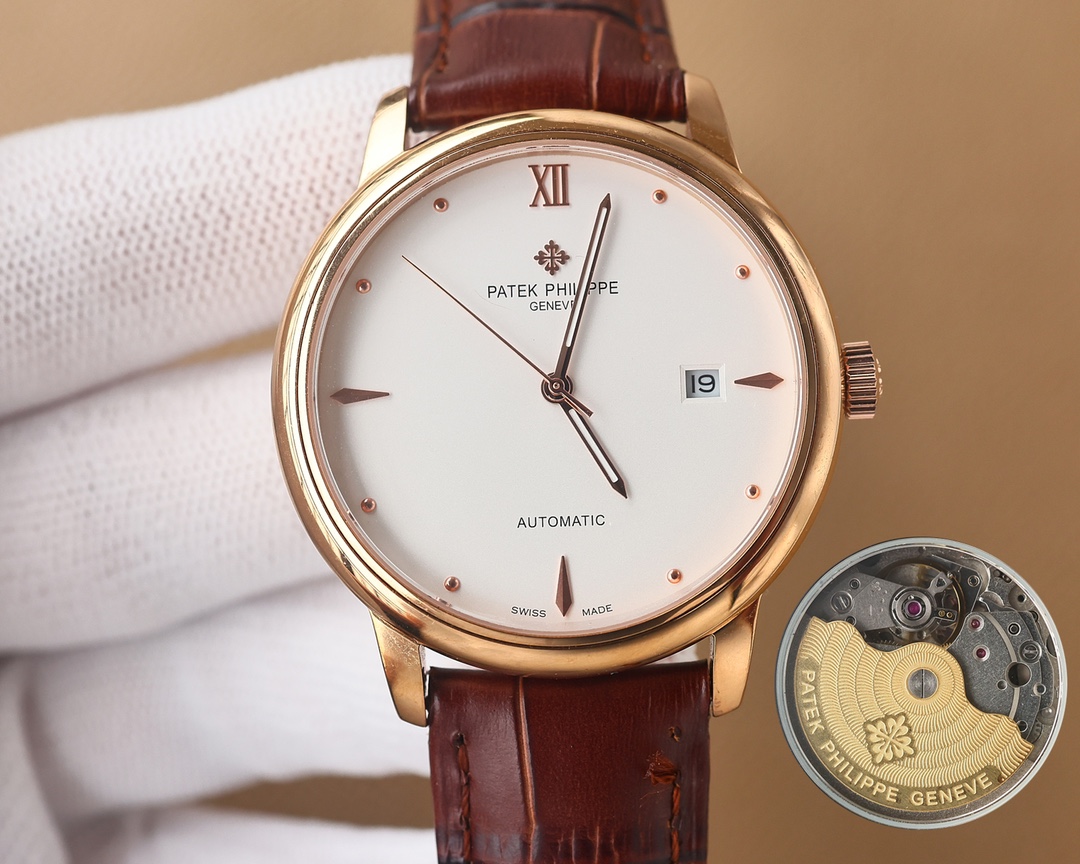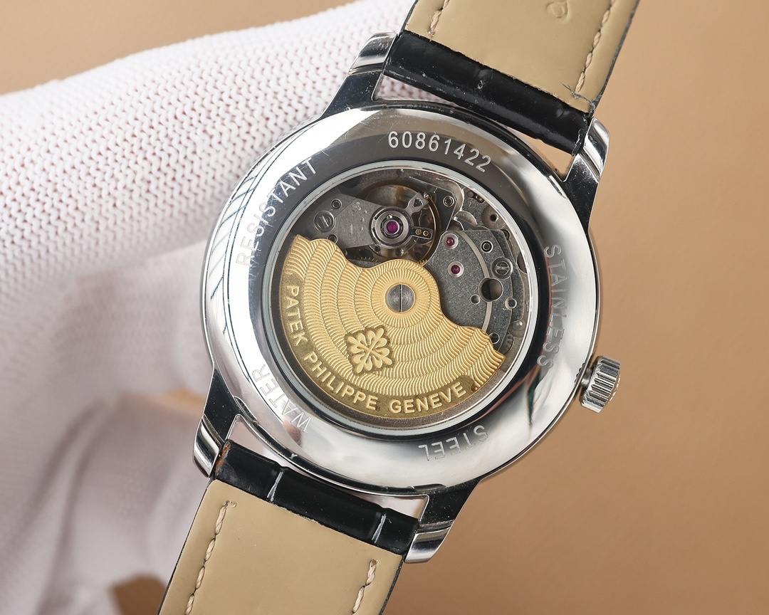 这款手表是AAAAA 1:1 质量 (非常棒). 使用了和原版一模一样的材料. 商标部分也保持了和百达翡丽/Patek Philippe一样. 图片拍摄是实物手表拍摄, 您所收到的实物保证和我们图片一模一样.