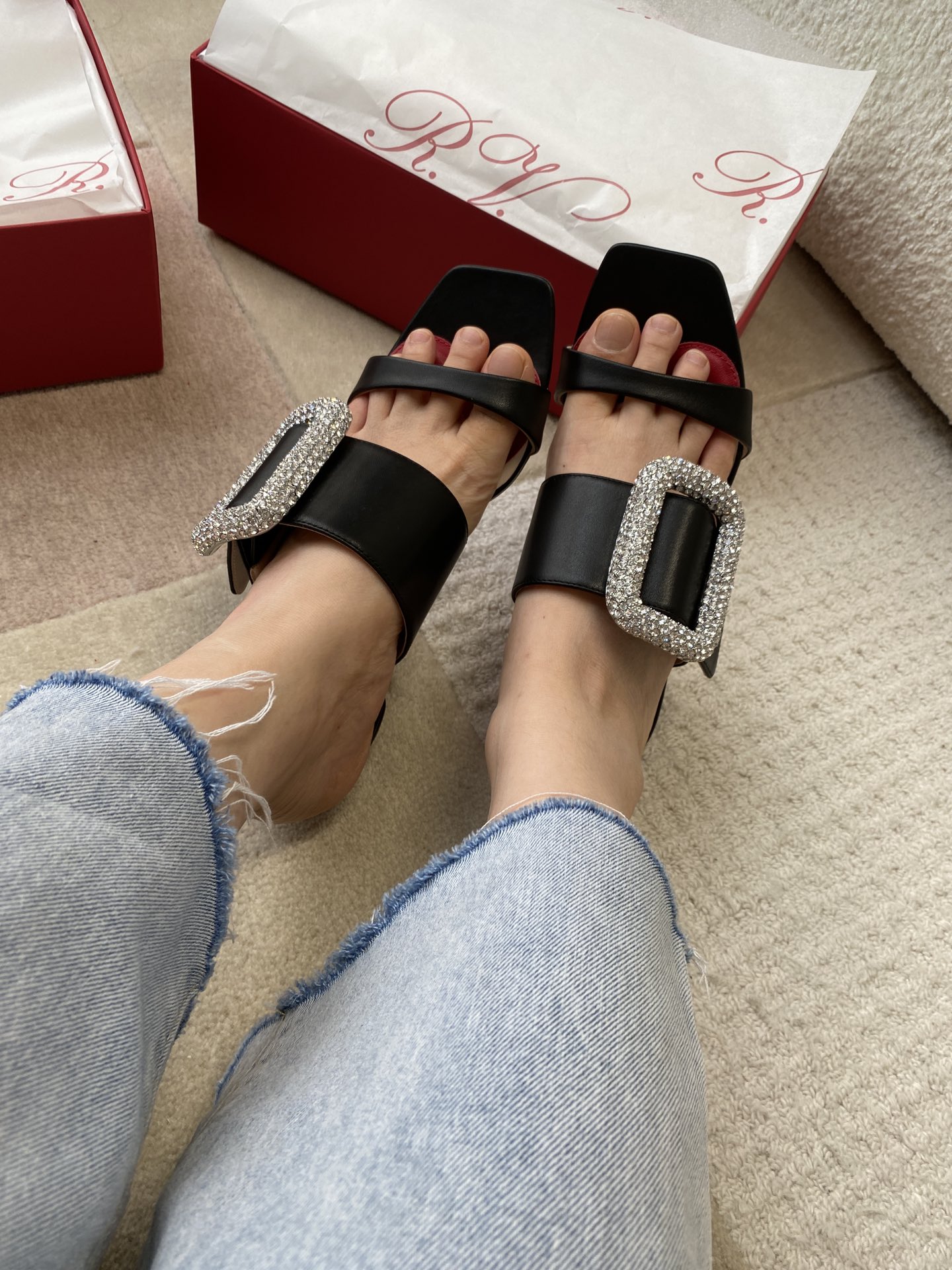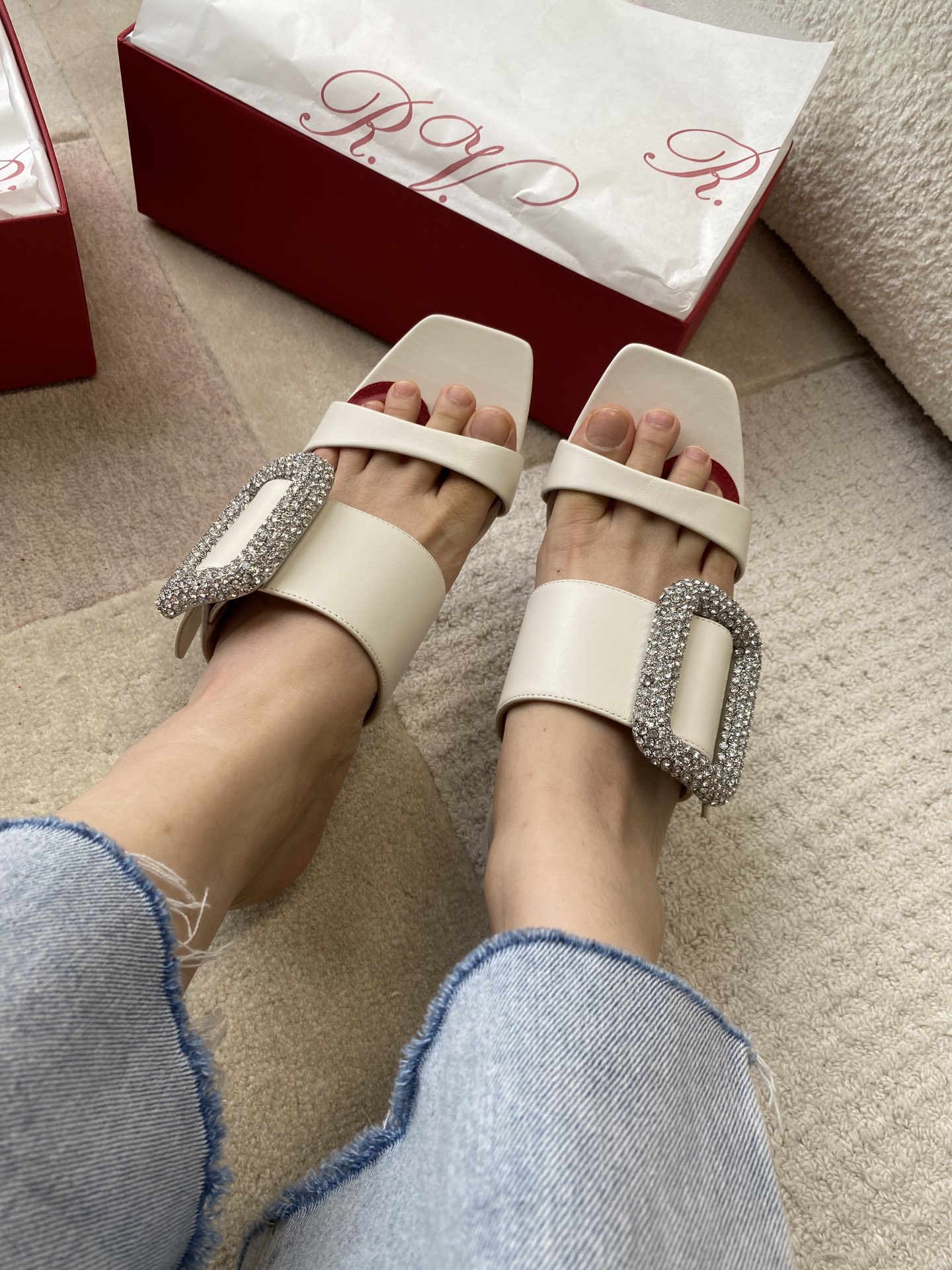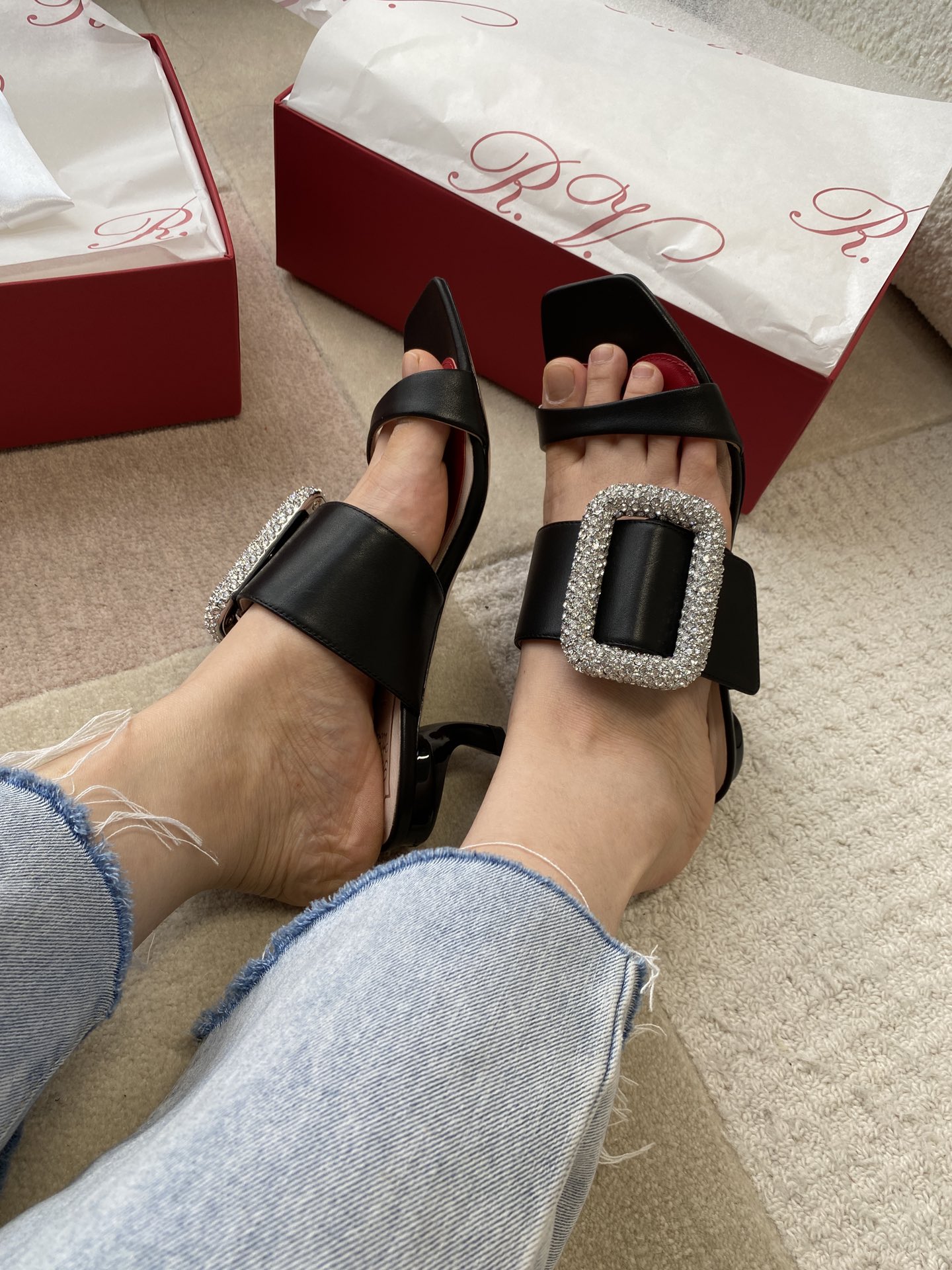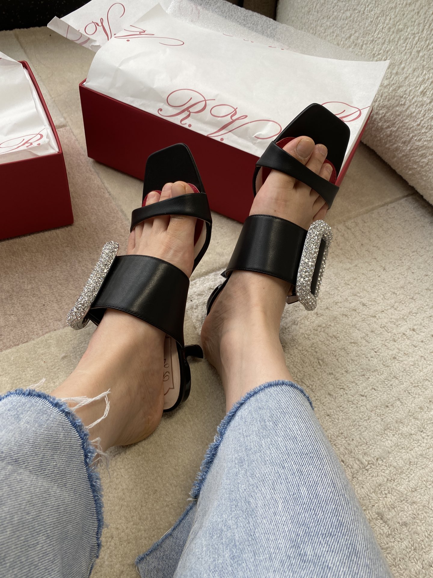 这款鞋子是AAAAA 1:1 质量 (非常棒). 使用了和原版一模一样的材料. 商标部分也保持了和罗杰维维耶/Roger Vivier一样. 图片拍摄是实物鞋子拍摄, 您所收到的实物保证和我们图片一模一样.