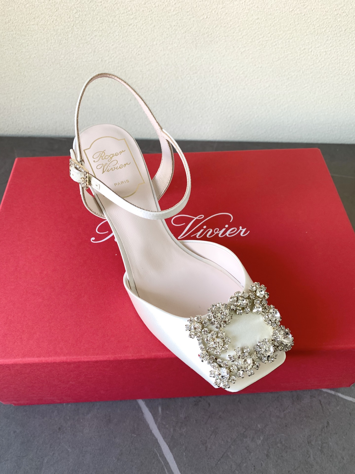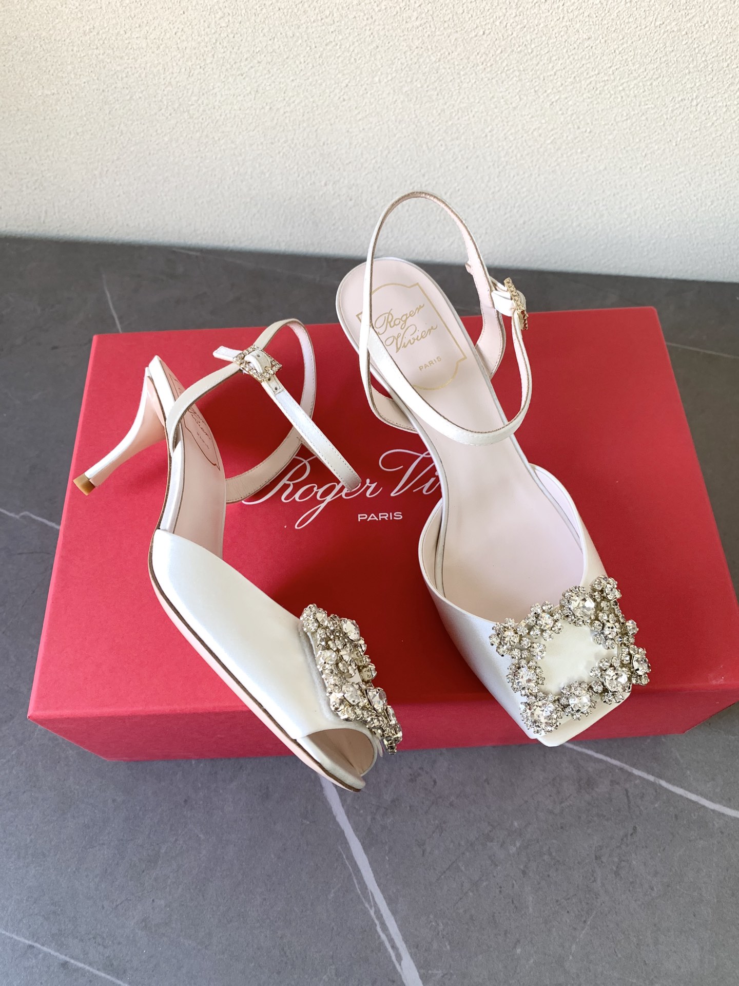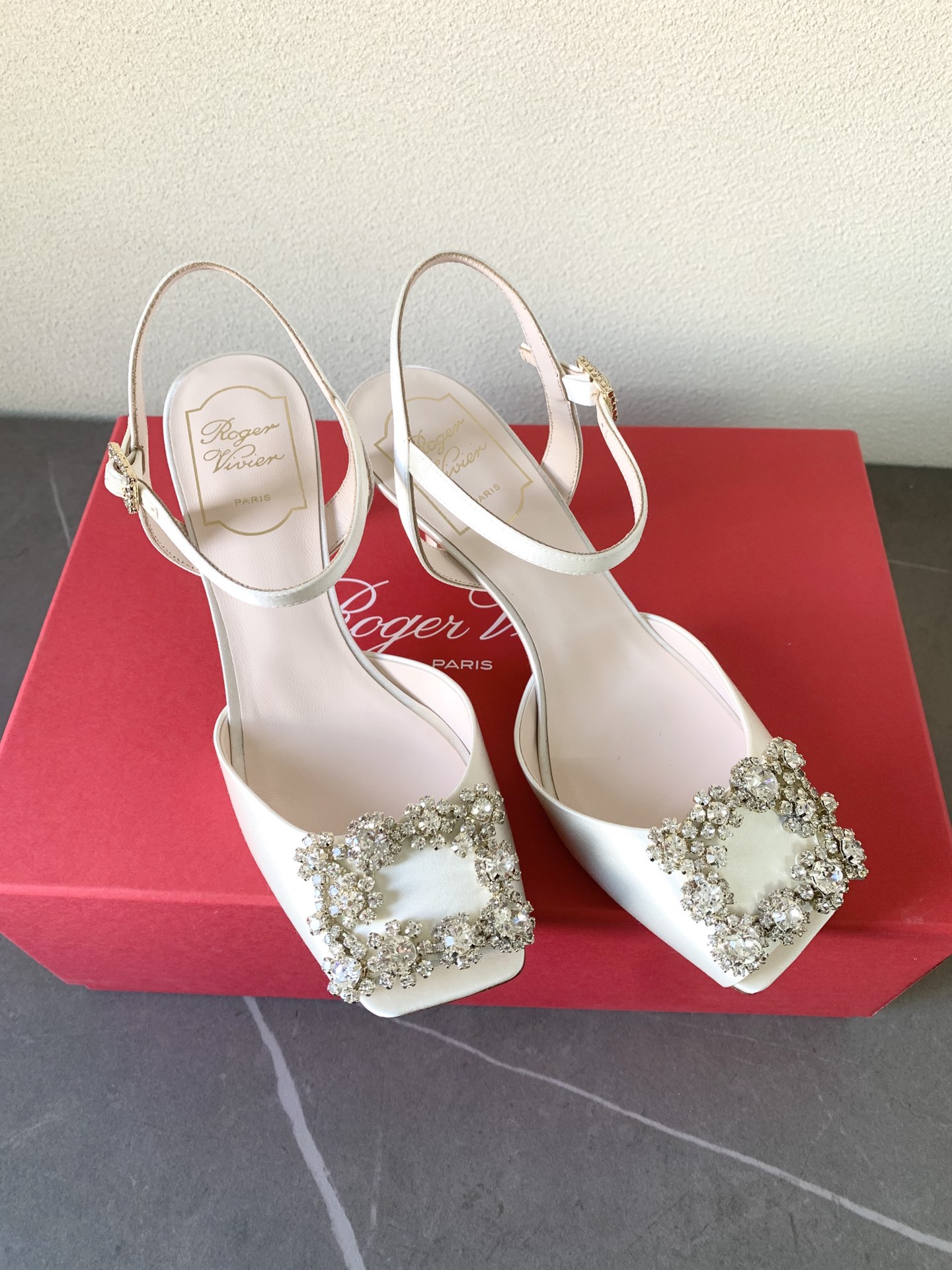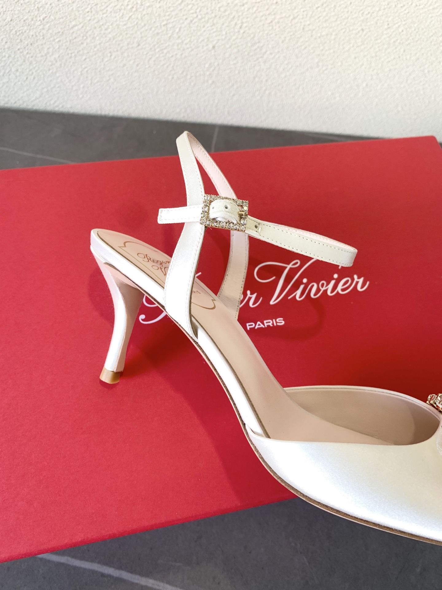 这款鞋子是AAAAA 1:1 质量 (非常棒). 使用了和原版一模一样的材料. 商标部分也保持了和罗杰维维耶/Roger Vivier一样. 图片拍摄是实物鞋子拍摄, 您所收到的实物保证和我们图片一模一样.