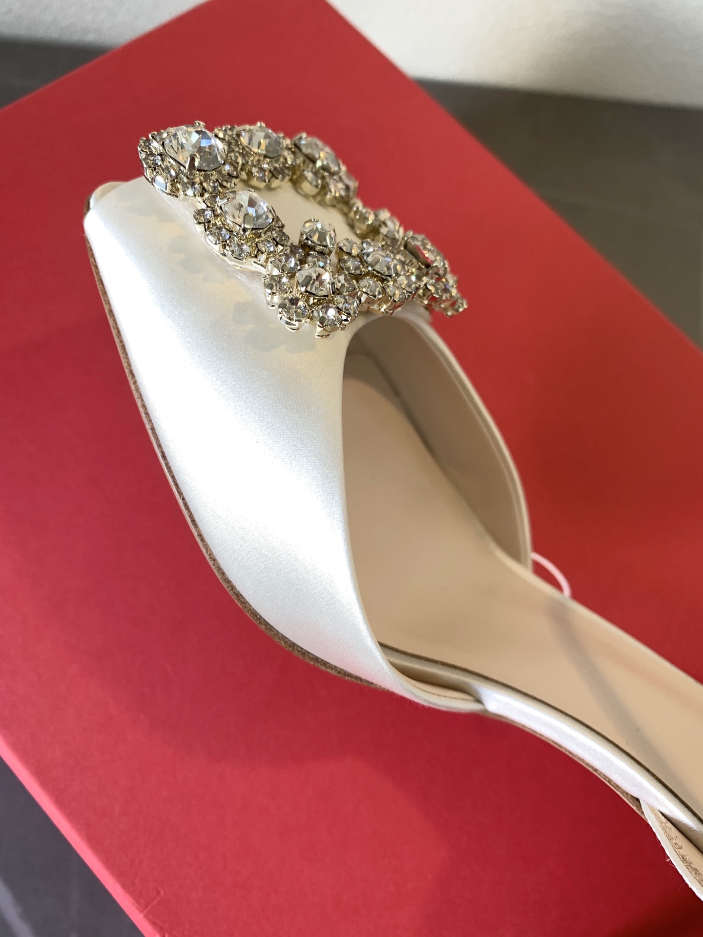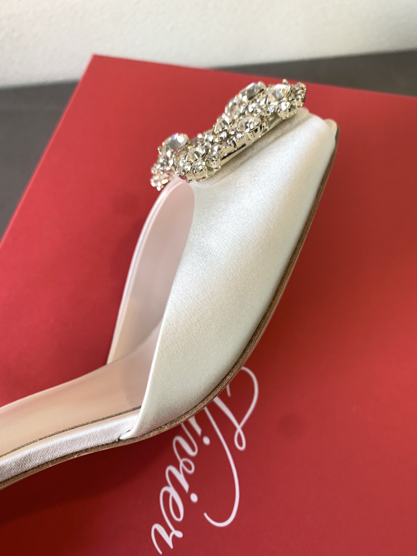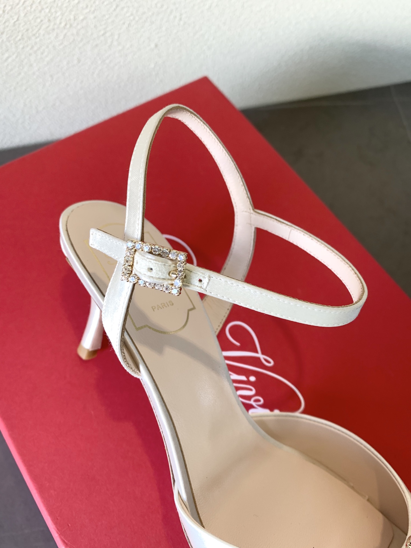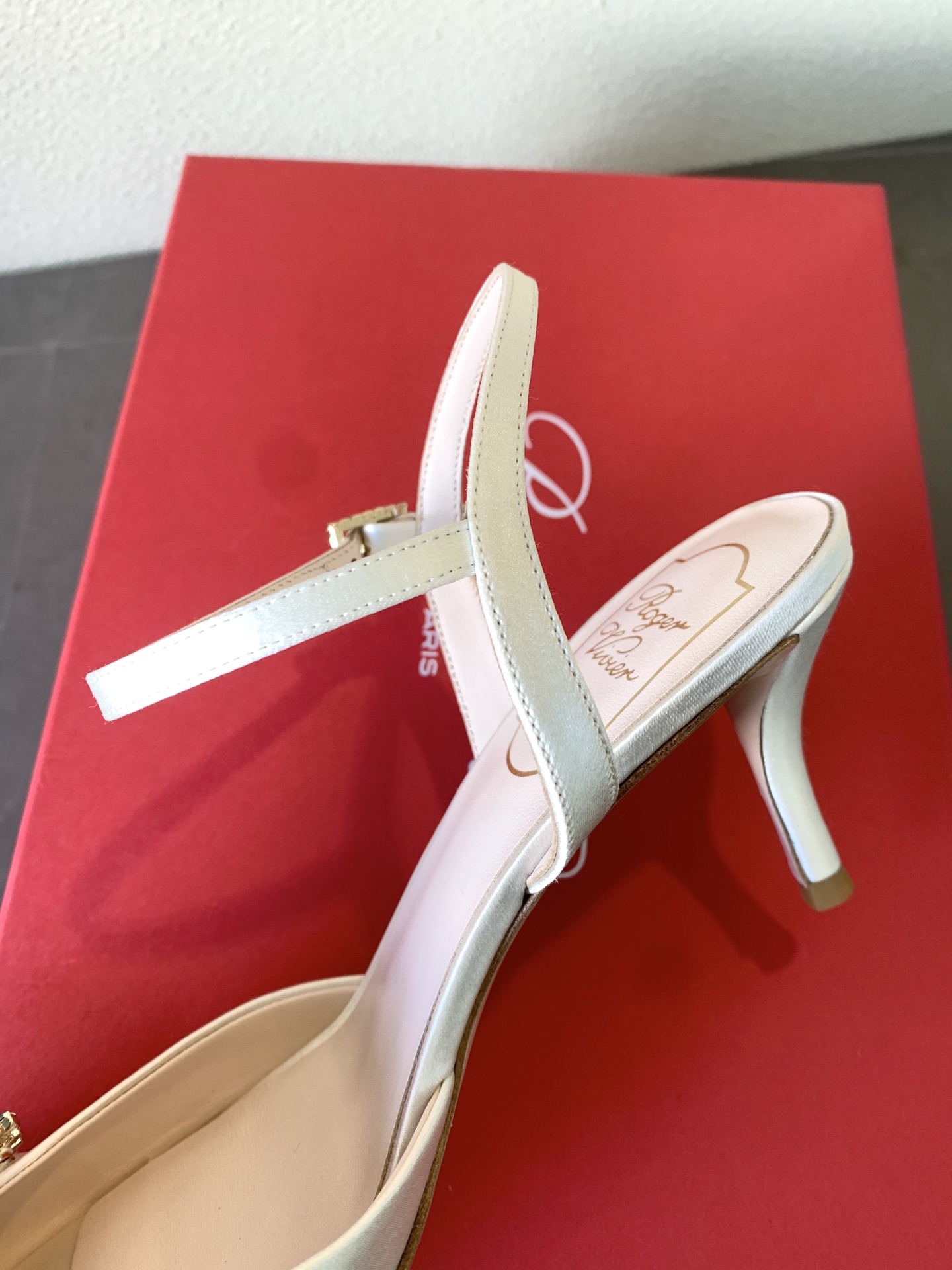 这款鞋子是AAAAA 1:1 质量 (非常棒). 使用了和原版一模一样的材料. 商标部分也保持了和罗杰维维耶/Roger Vivier一样. 图片拍摄是实物鞋子拍摄, 您所收到的实物保证和我们图片一模一样.
