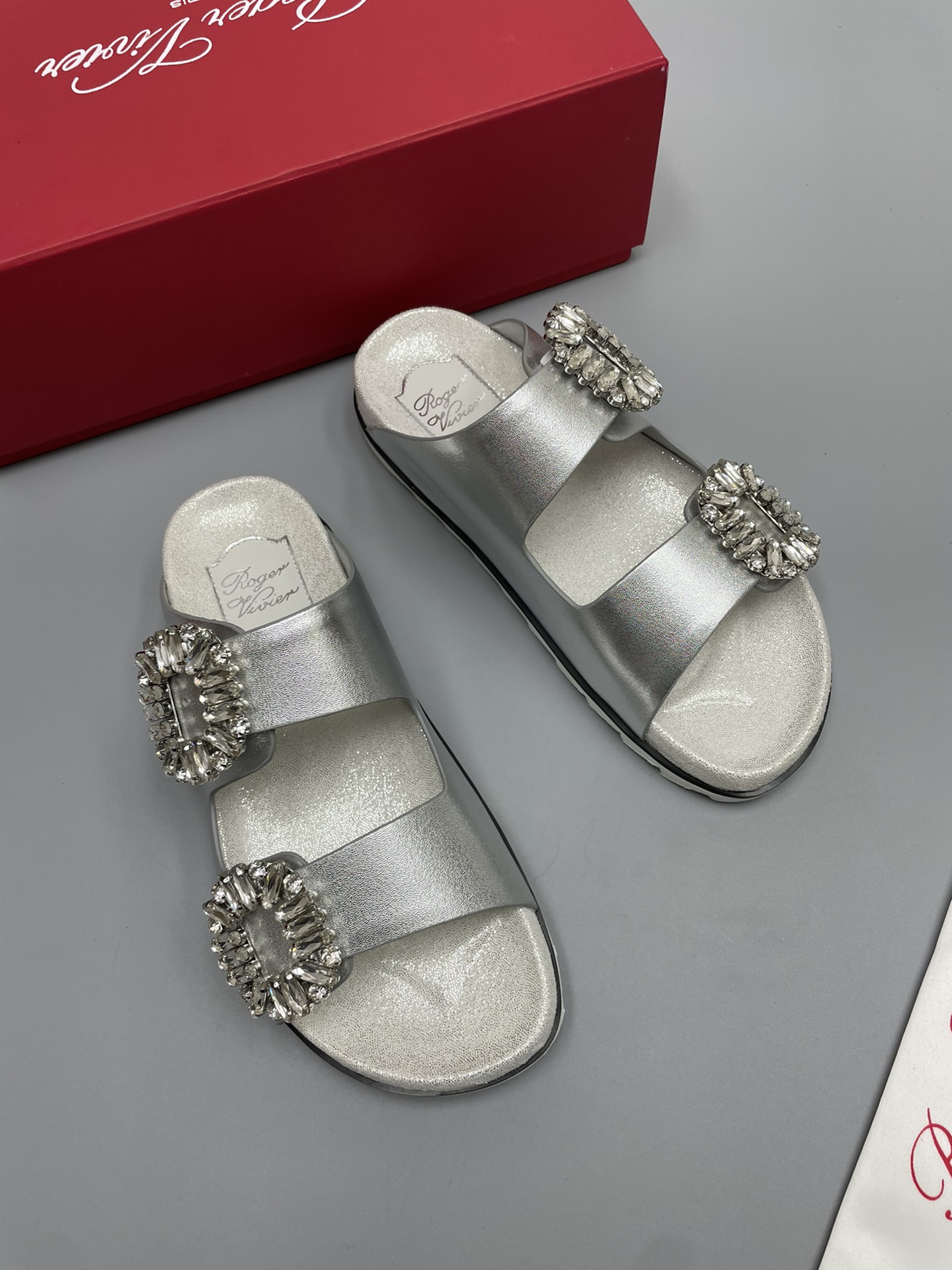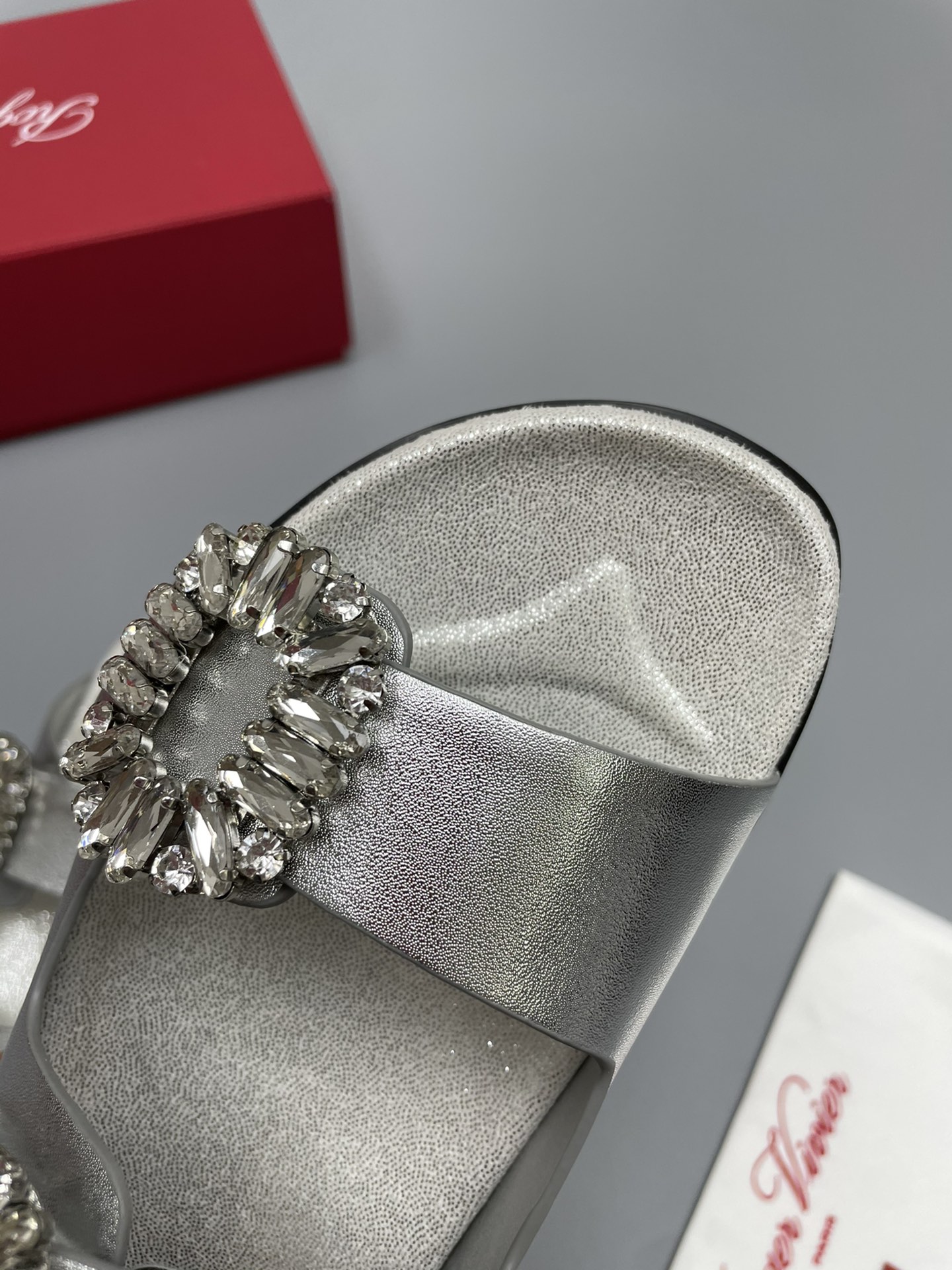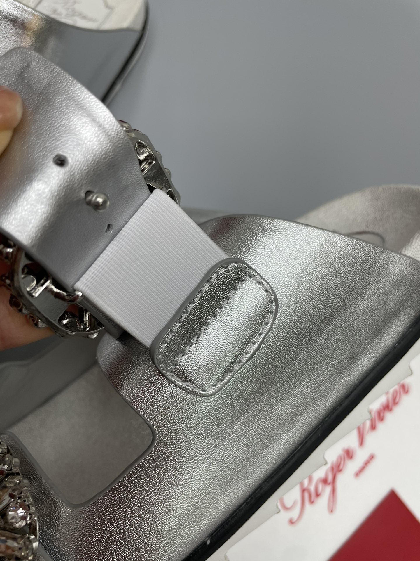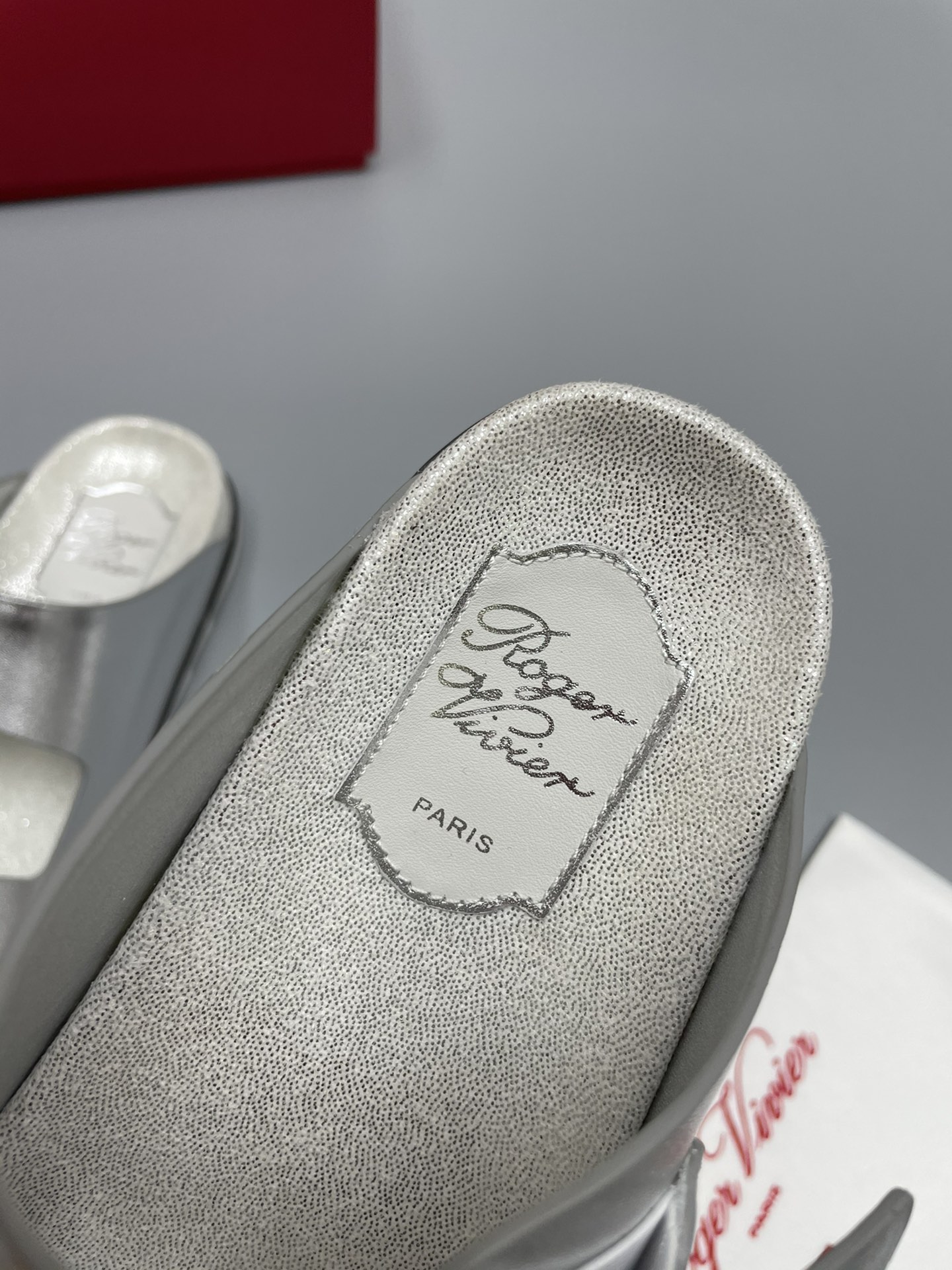 这款鞋子是AAAAA 1:1 质量 (非常棒). 使用了和原版一模一样的材料. 商标部分也保持了和罗杰维维耶/Roger Vivier一样. 图片拍摄是实物鞋子拍摄, 您所收到的实物保证和我们图片一模一样.