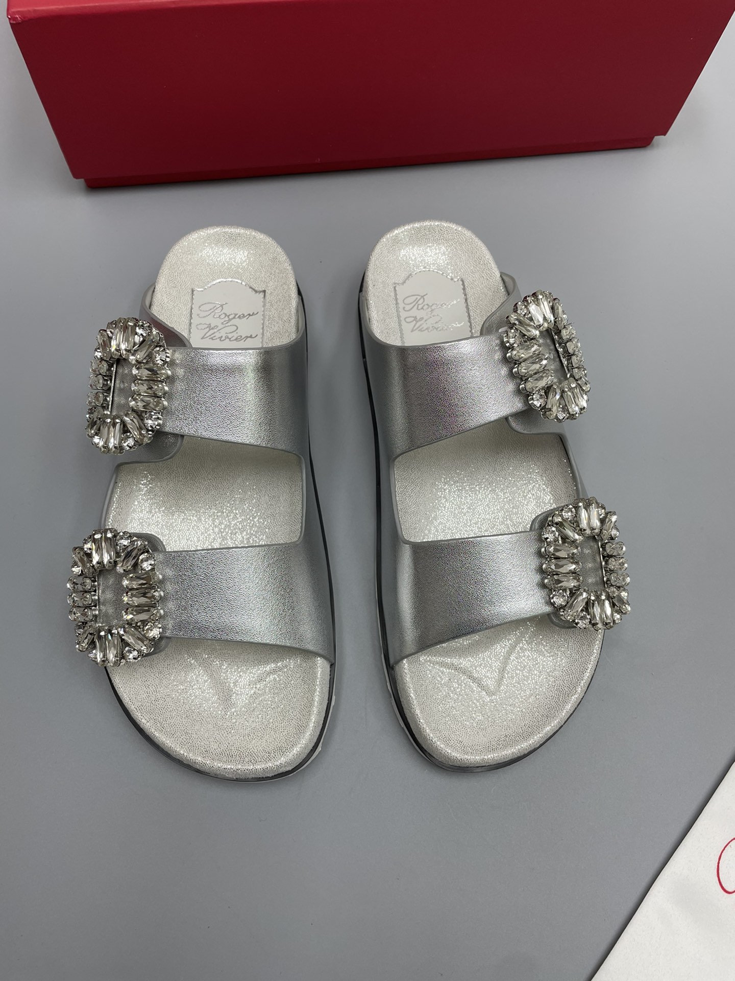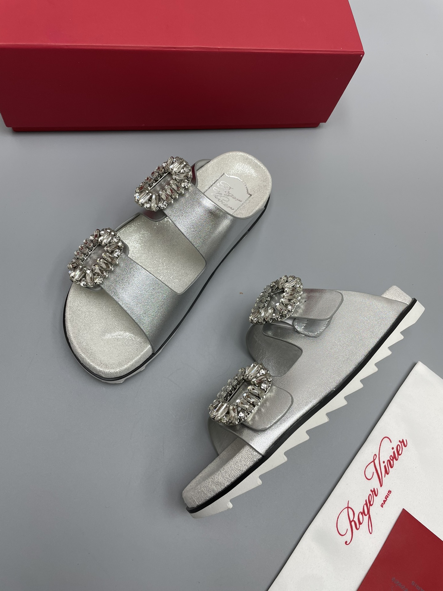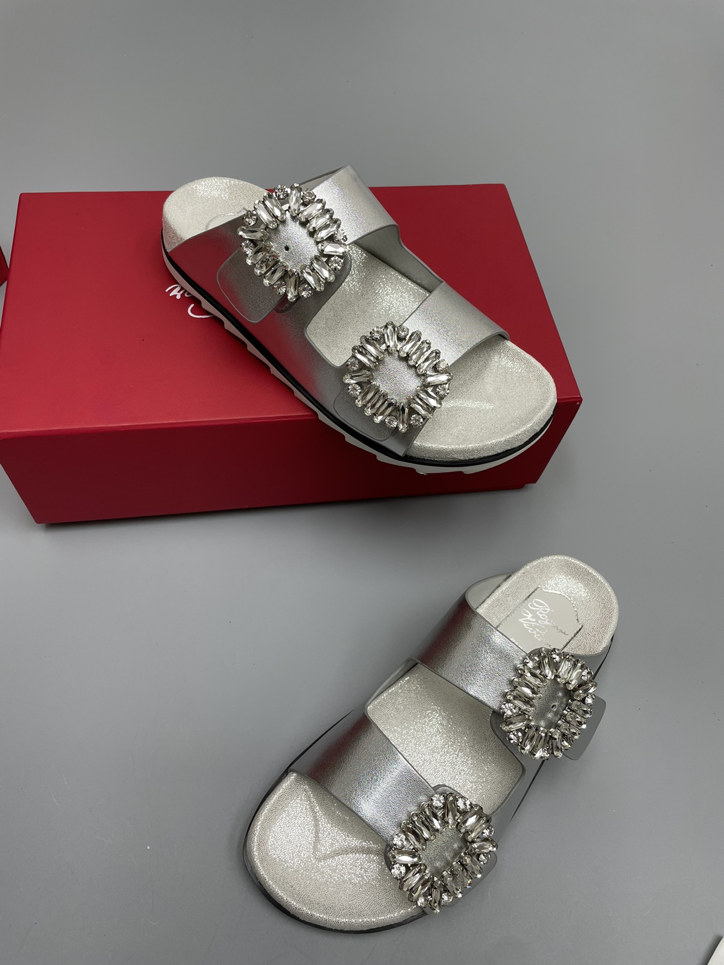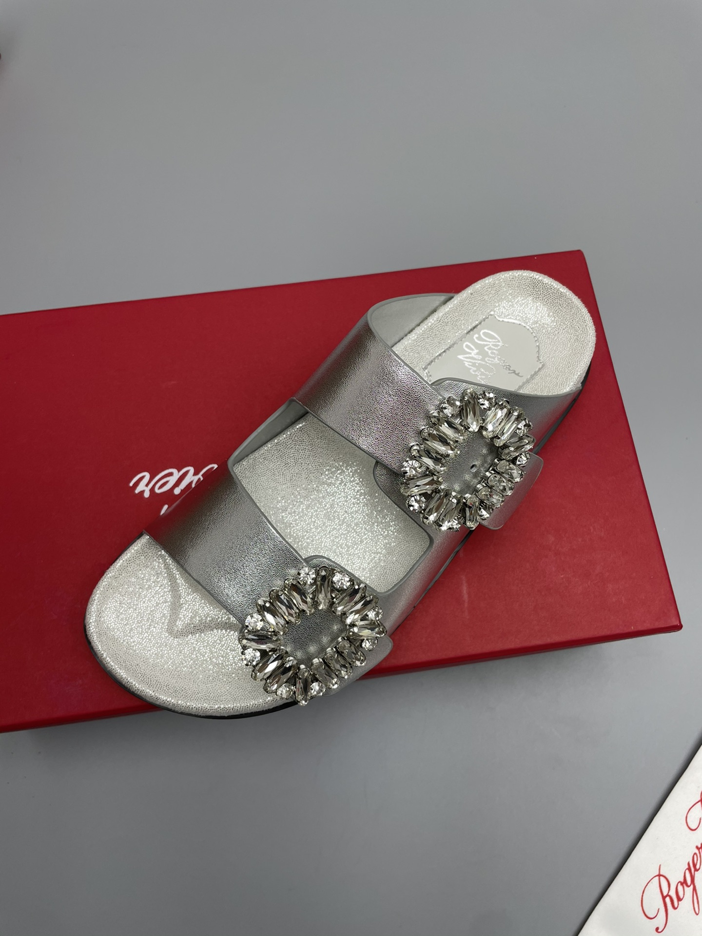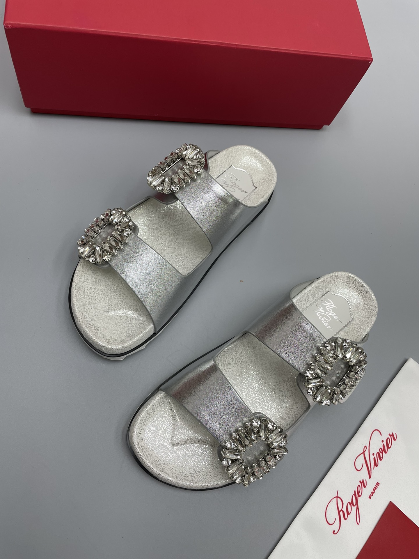 这款鞋子是AAAAA 1:1 质量 (非常棒). 使用了和原版一模一样的材料. 商标部分也保持了和罗杰维维耶/Roger Vivier一样. 图片拍摄是实物鞋子拍摄, 您所收到的实物保证和我们图片一模一样.