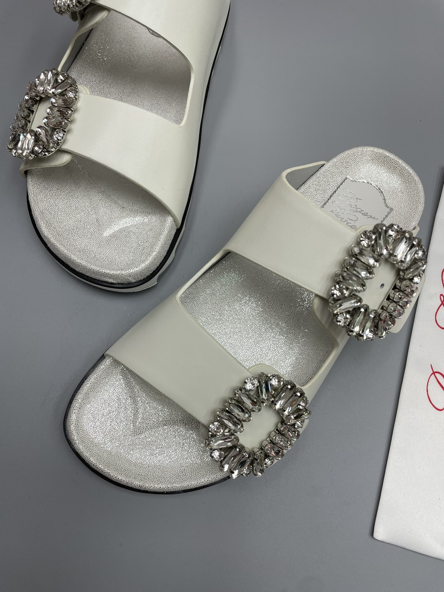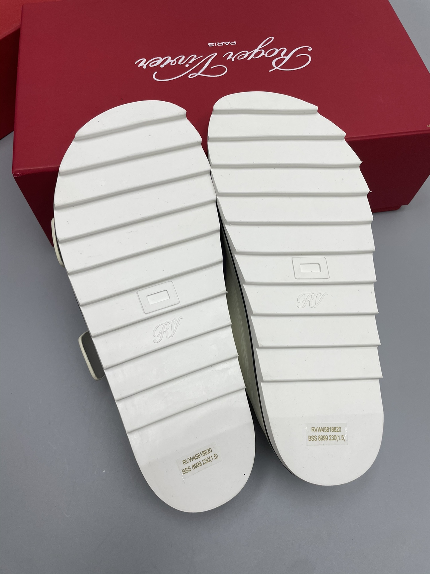 这款鞋子是AAAAA 1:1 质量 (非常棒). 使用了和原版一模一样的材料. 商标部分也保持了和罗杰维维耶/Roger Vivier一样. 图片拍摄是实物鞋子拍摄, 您所收到的实物保证和我们图片一模一样.