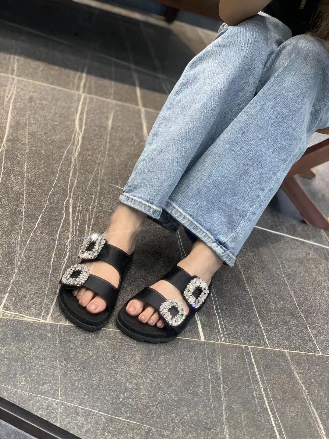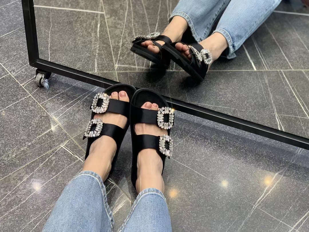 这款鞋子是AAAAA 1:1 质量 (非常棒). 使用了和原版一模一样的材料. 商标部分也保持了和罗杰维维耶/Roger Vivier一样. 图片拍摄是实物鞋子拍摄, 您所收到的实物保证和我们图片一模一样.