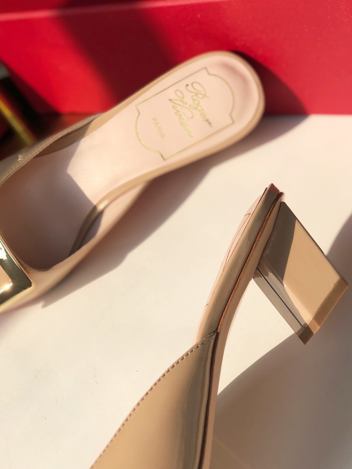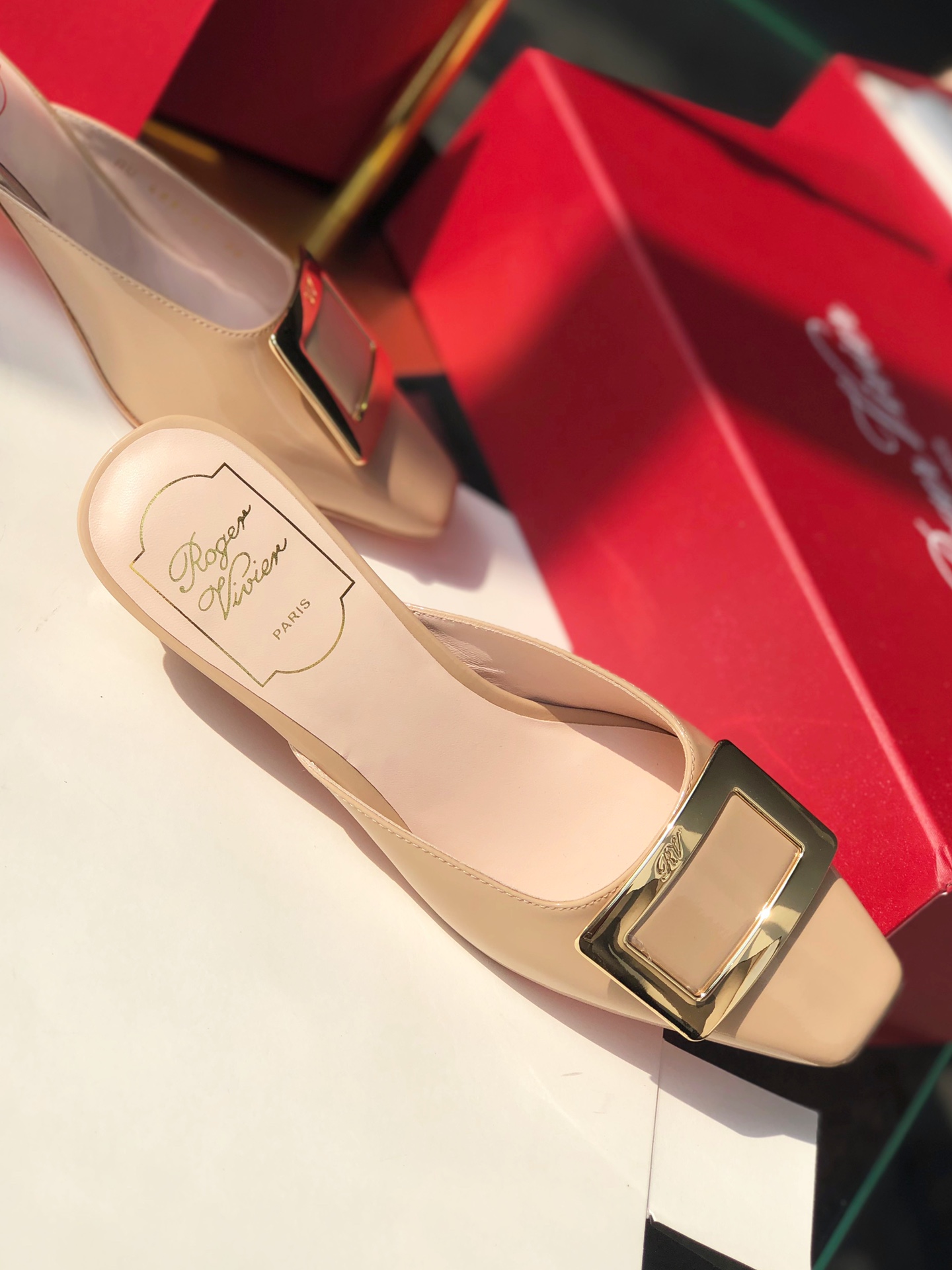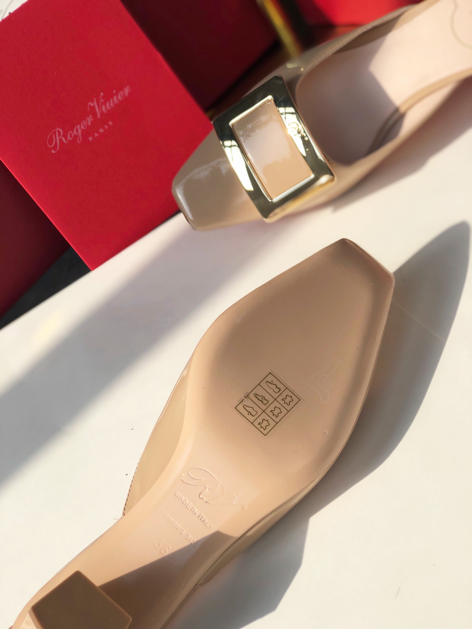 这款鞋子是AAAAA 1:1 质量 (非常棒). 使用了和原版一模一样的材料. 商标部分也保持了和罗杰维维耶/Roger Vivier一样. 图片拍摄是实物鞋子拍摄, 您所收到的实物保证和我们图片一模一样.