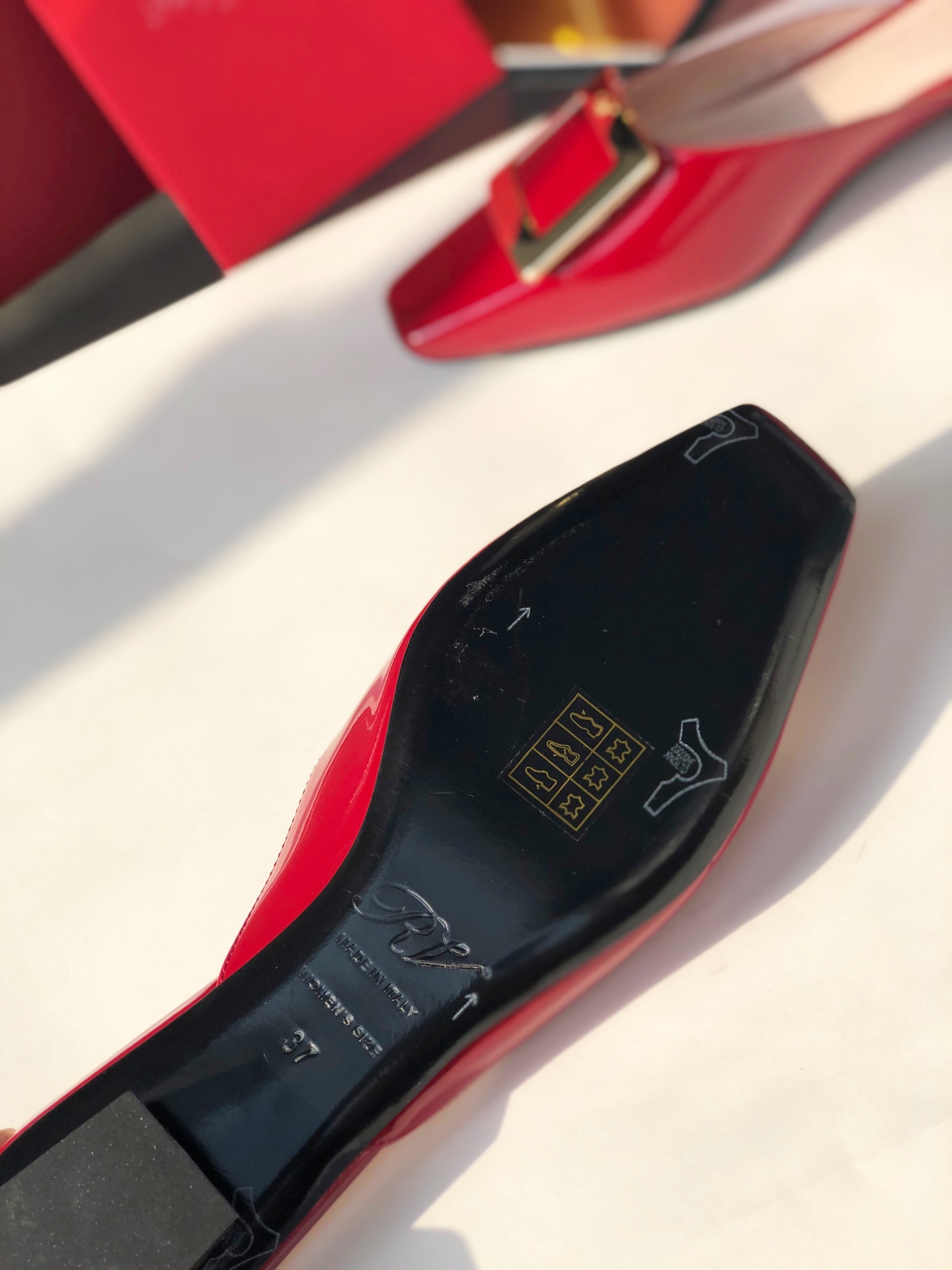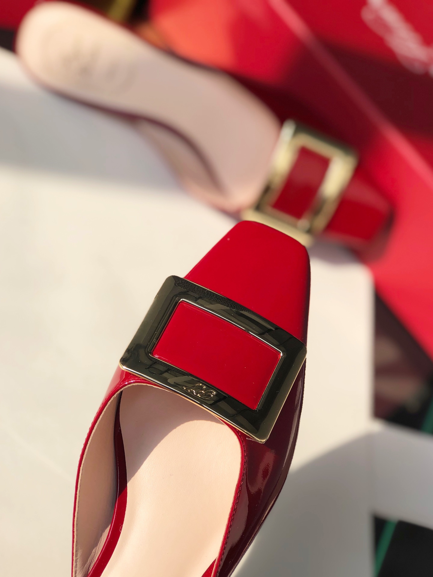 这款鞋子是AAAAA 1:1 质量 (非常棒). 使用了和原版一模一样的材料. 商标部分也保持了和罗杰维维耶/Roger Vivier一样. 图片拍摄是实物鞋子拍摄, 您所收到的实物保证和我们图片一模一样.