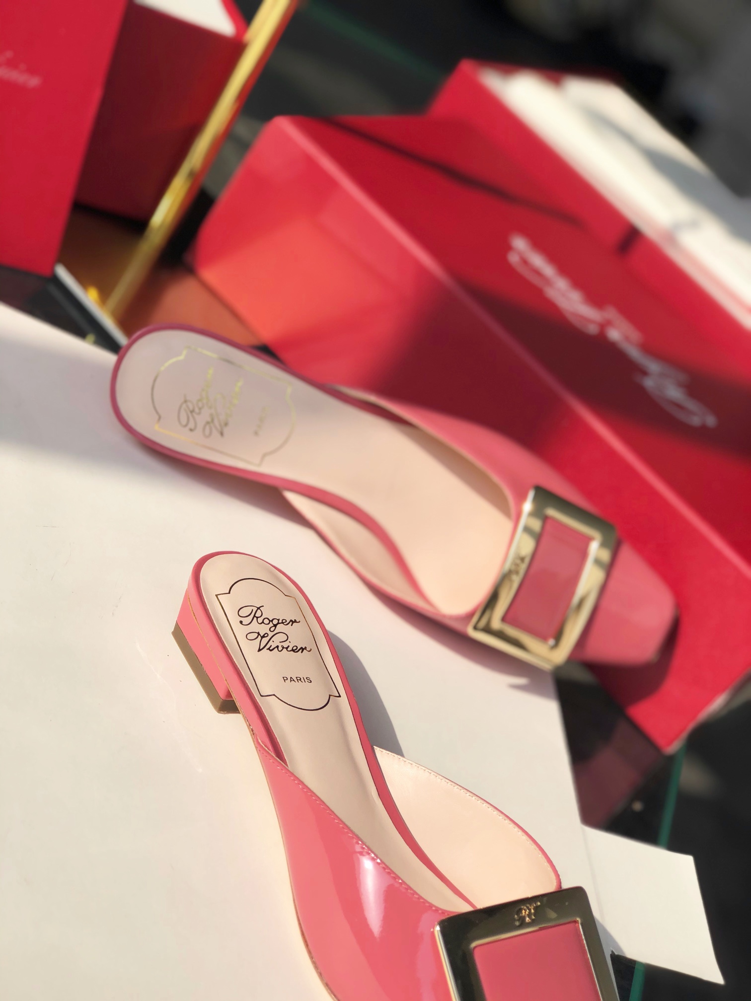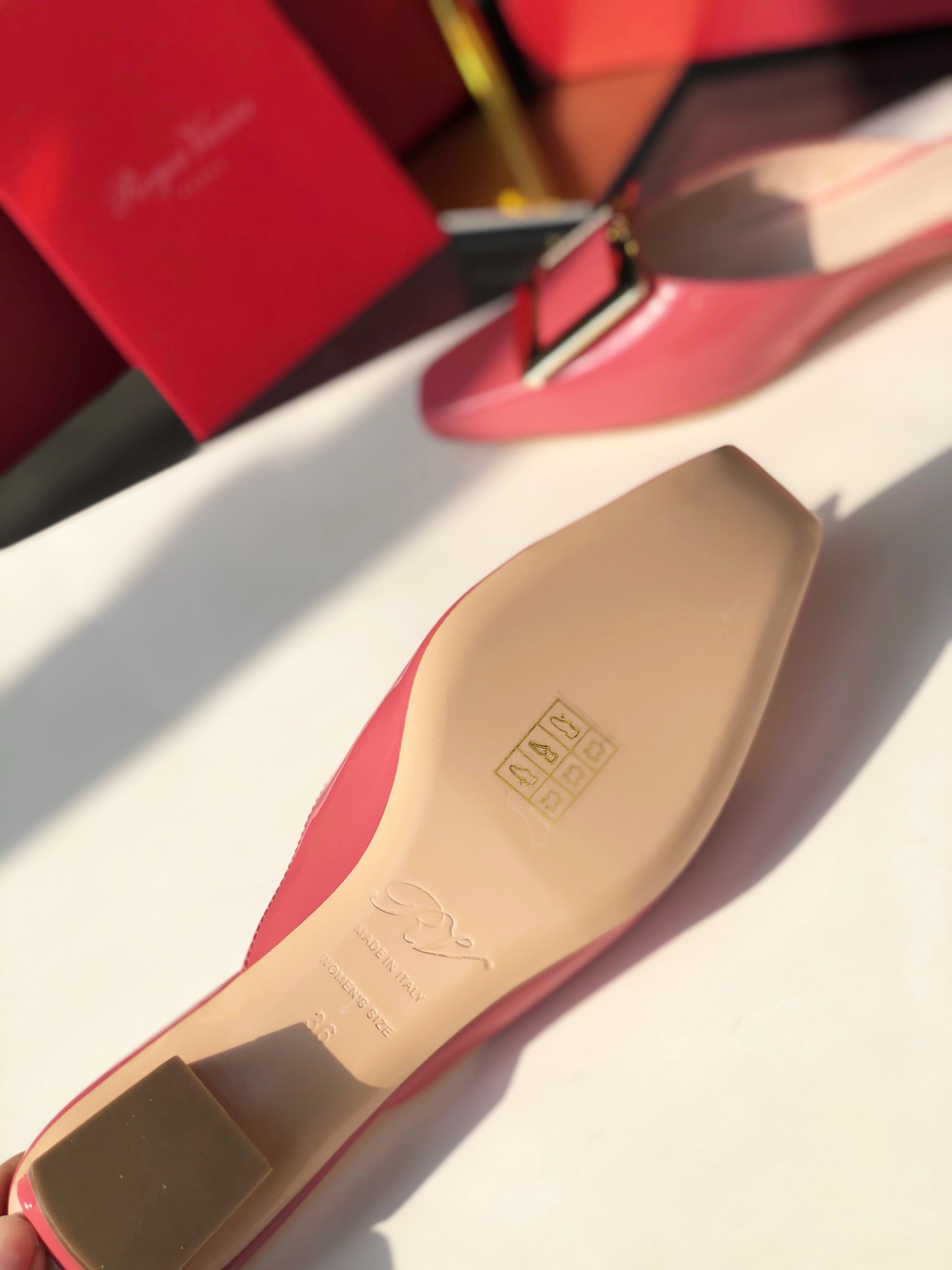 这款鞋子是AAAAA 1:1 质量 (非常棒). 使用了和原版一模一样的材料. 商标部分也保持了和罗杰维维耶/Roger Vivier一样. 图片拍摄是实物鞋子拍摄, 您所收到的实物保证和我们图片一模一样.