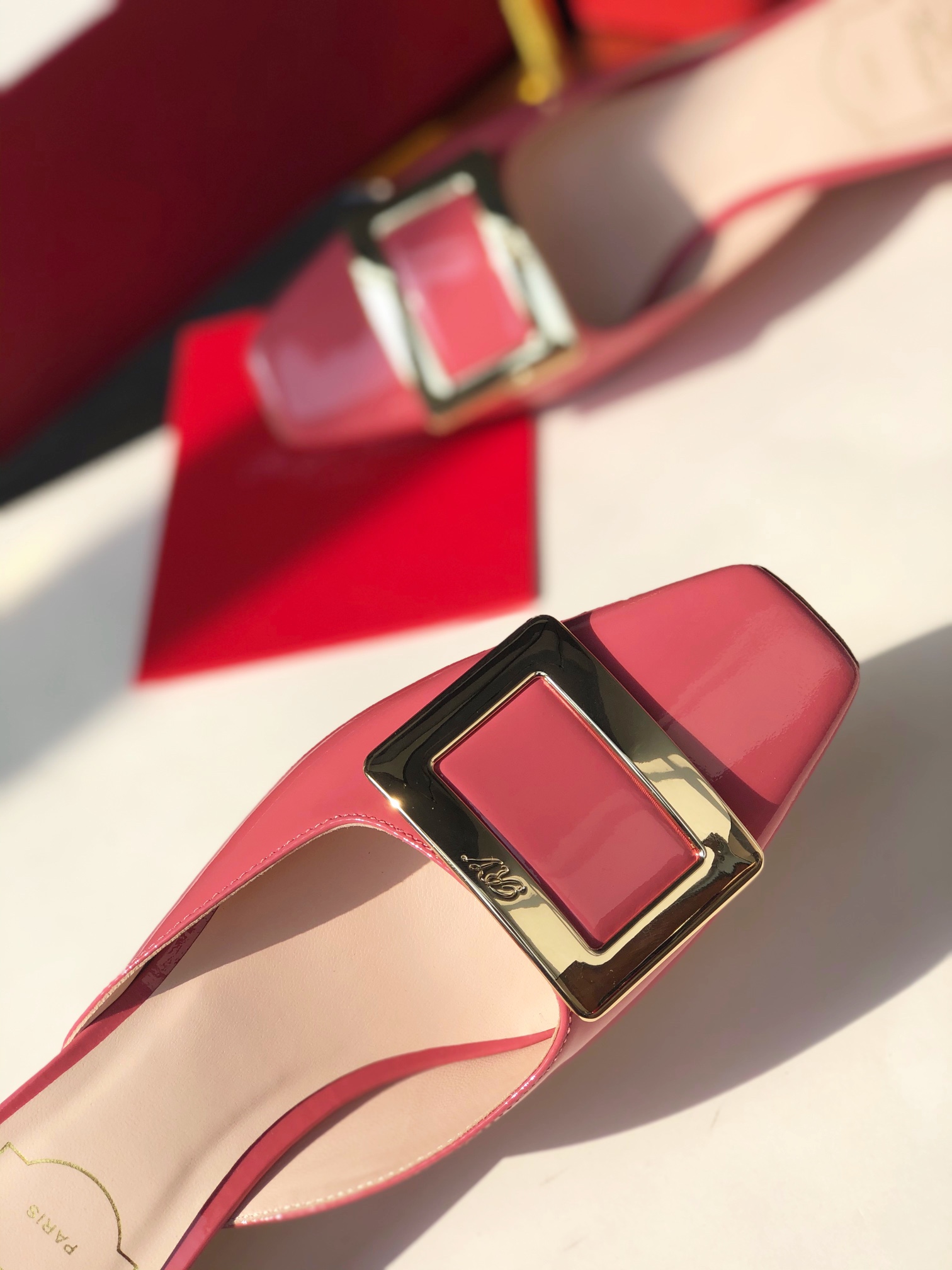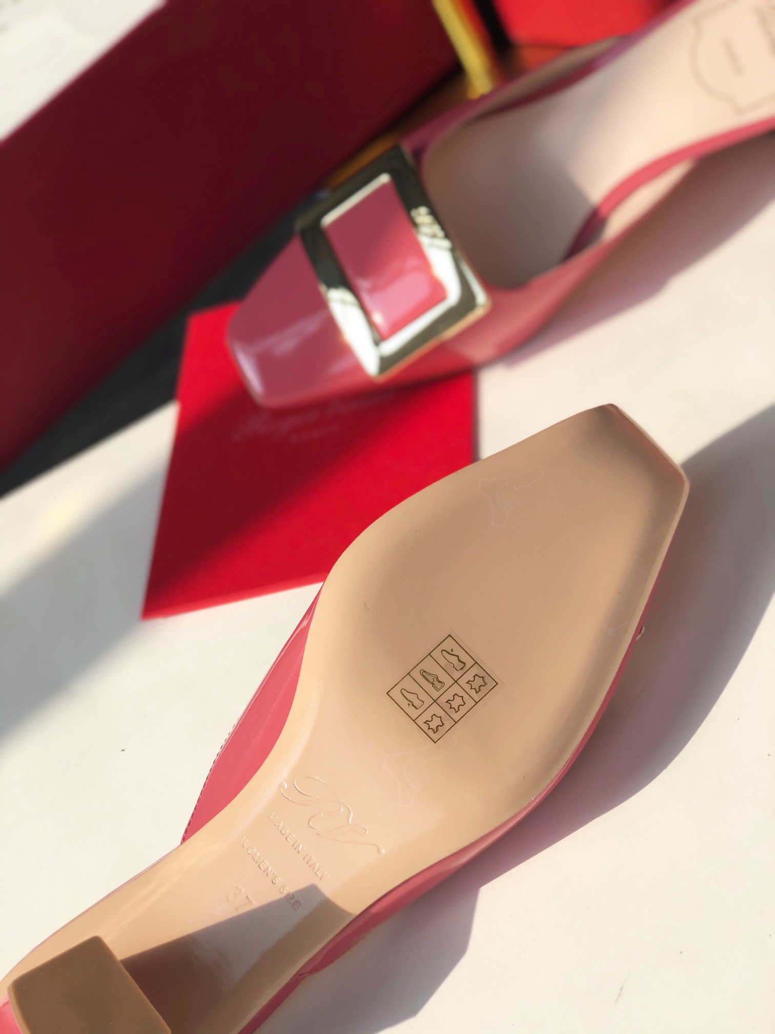这款鞋子是AAAAA 1:1 质量 (非常棒). 使用了和原版一模一样的材料. 商标部分也保持了和罗杰维维耶/Roger Vivier一样. 图片拍摄是实物鞋子拍摄, 您所收到的实物保证和我们图片一模一样.