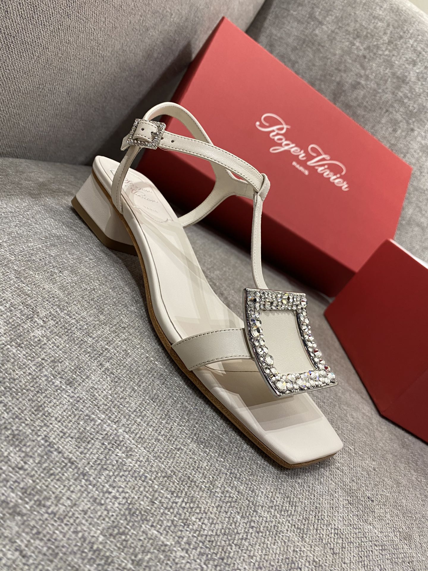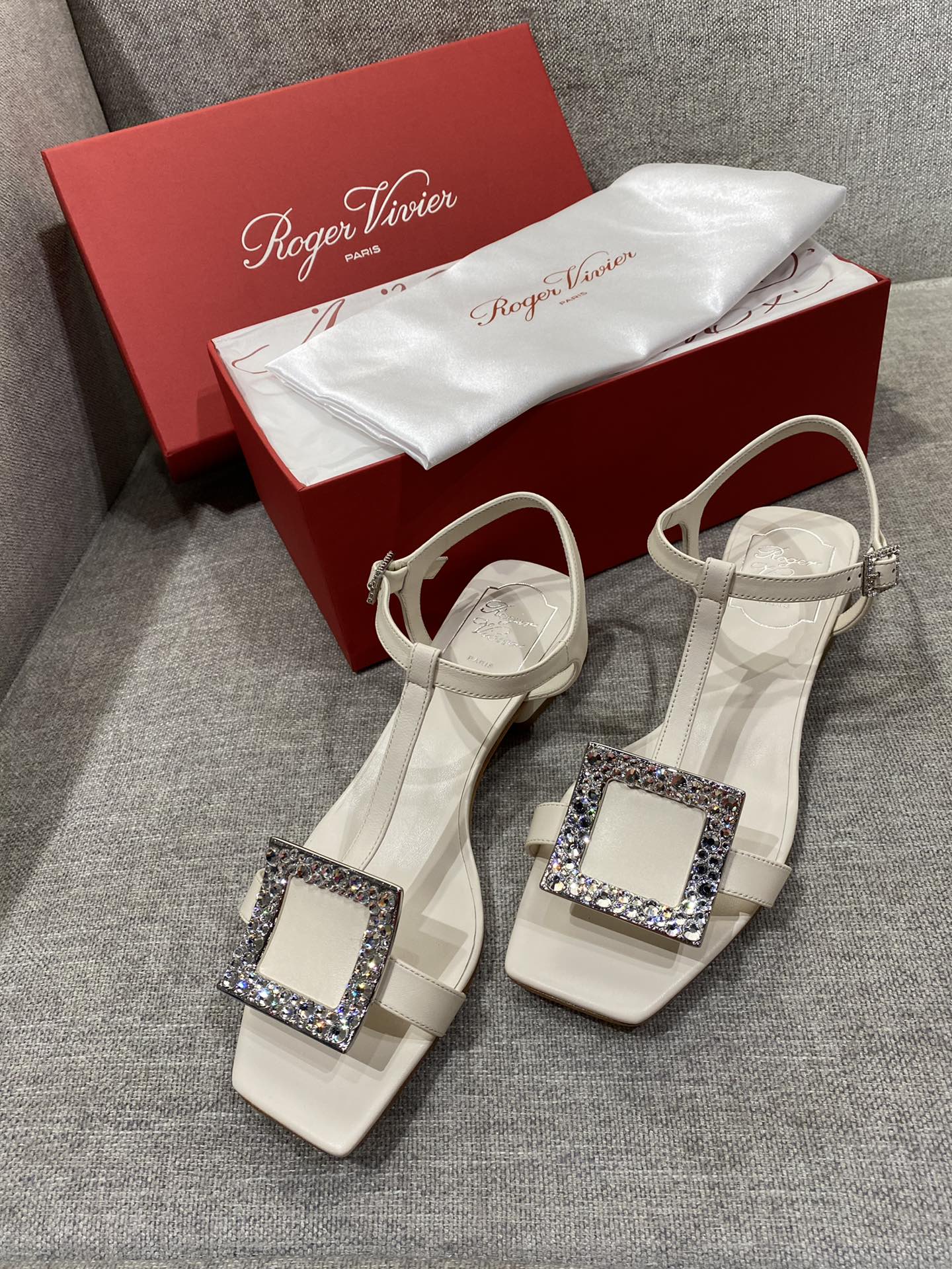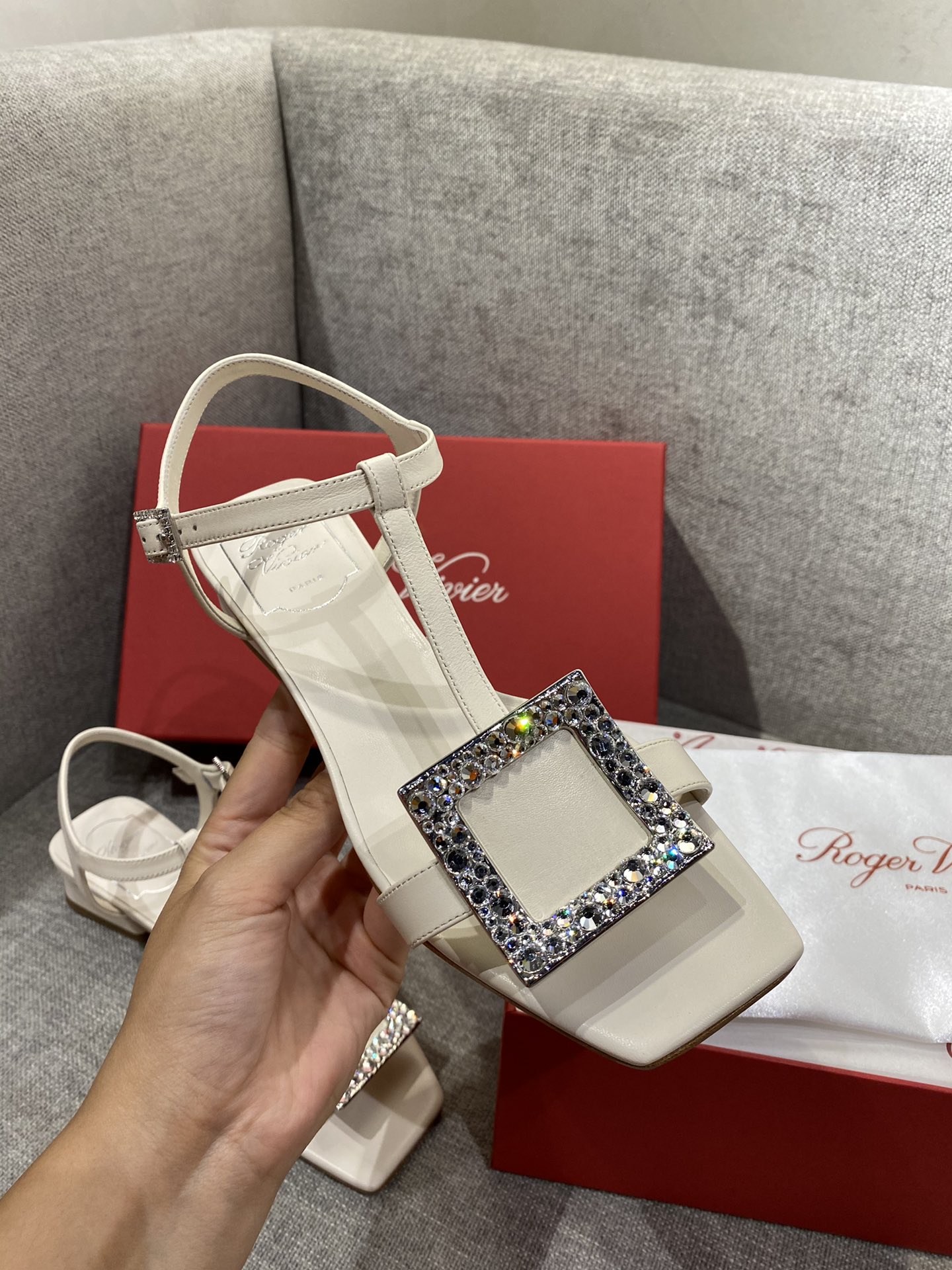 这款鞋子是AAAAA 1:1 质量 (非常棒). 使用了和原版一模一样的材料. 商标部分也保持了和罗杰维维耶/Roger Vivier一样. 图片拍摄是实物鞋子拍摄, 您所收到的实物保证和我们图片一模一样.
